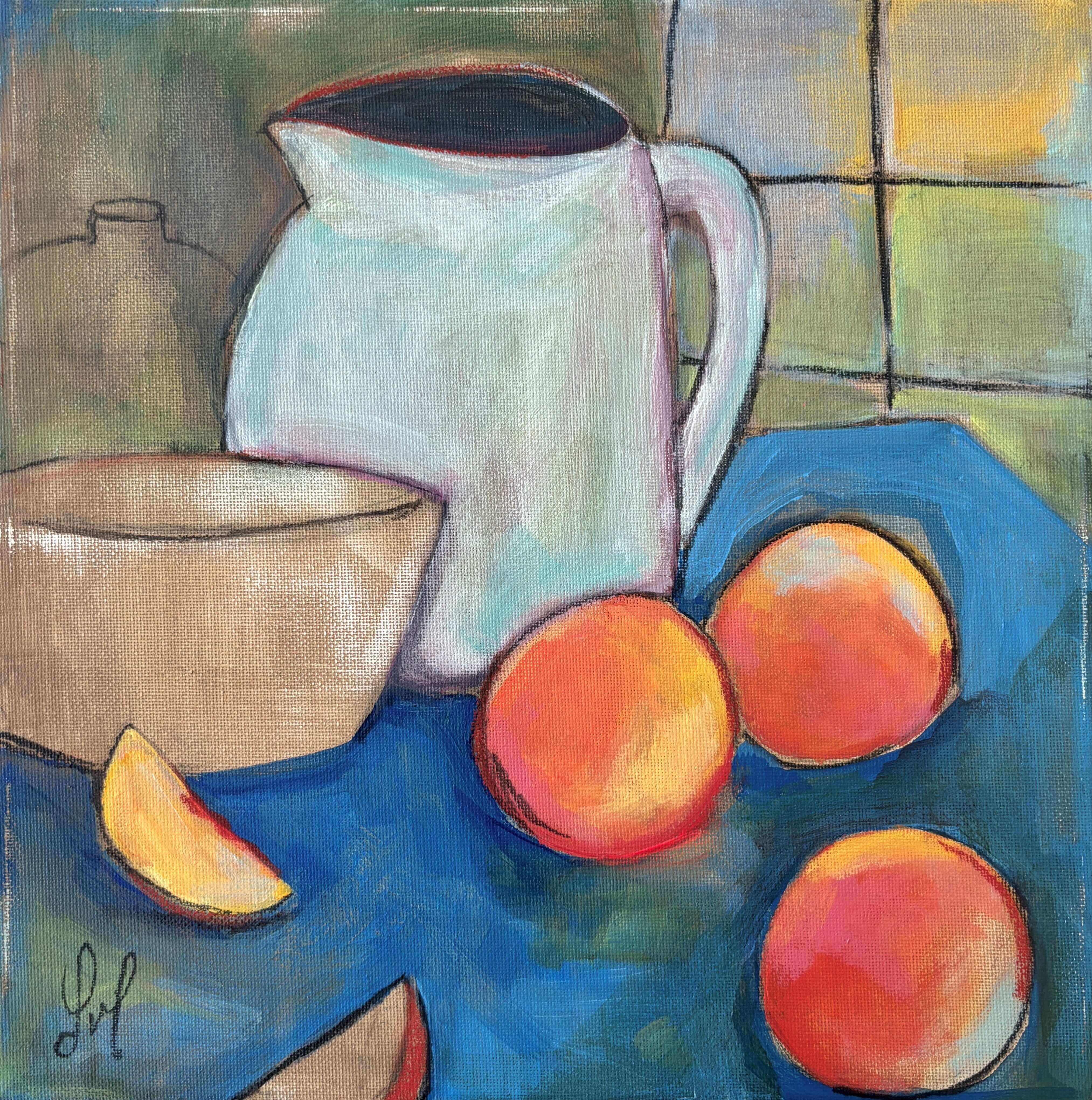 Les couleurs vives de cette pièce mettent en évidence un jeu dynamique de teintes orange et vertes, évoquant la fraîcheur et la vitalité. Il capture...
