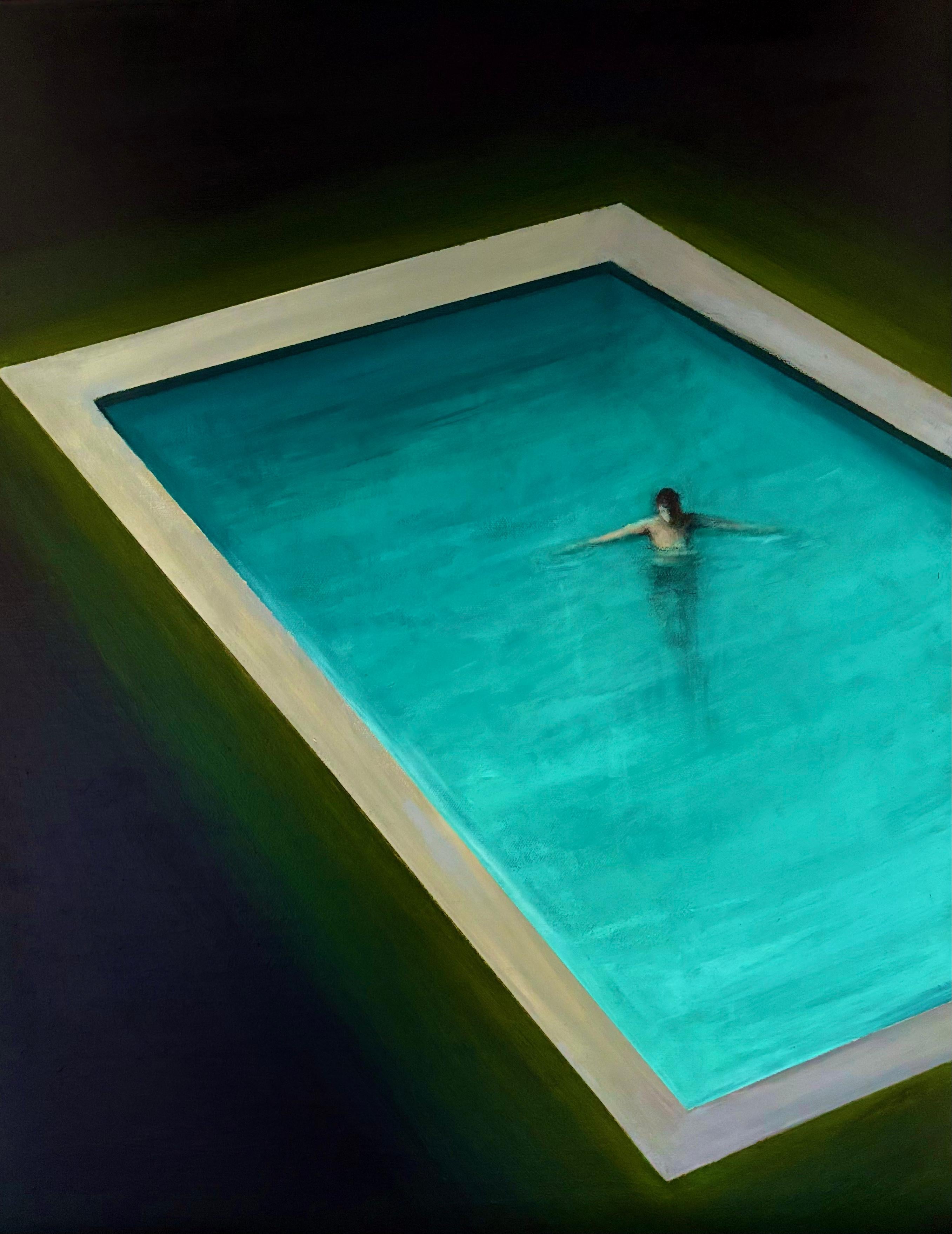 "Eternal Pulse" - Peinture à l'huile d'une vague de l'océan dans la palette raffinée de Vert Bosphore