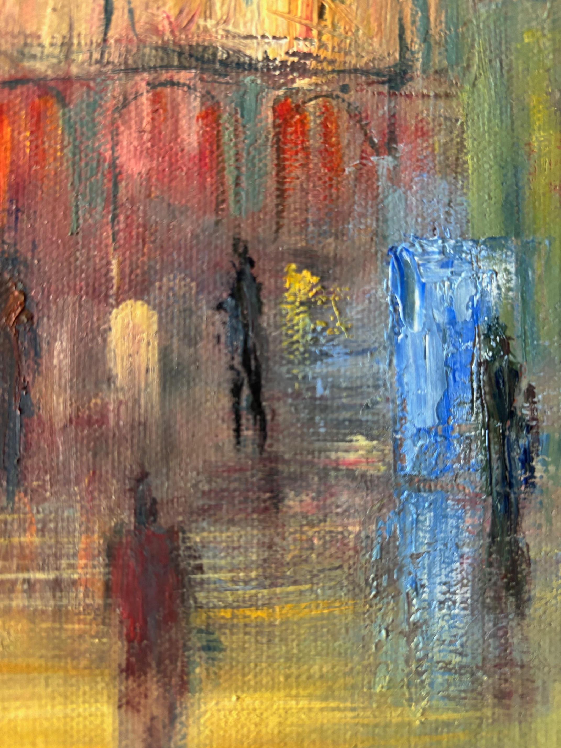Catherine Picard-Gibbs"Union Station Rush", Contemporain, Bleu, Vert, Rouge, Orange, Peinture à l'huile2022