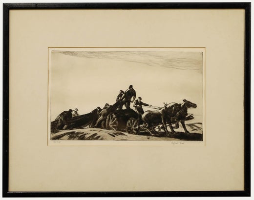 Gifford Beal, peintre, graveur, muraliste et enseignant, est né à New York en 1879. Fils du peintre paysagiste William Reynolds Beal, Beal a commencé à étudier à la Shinnecock School of Art de William Merritt Chase (la première école de peinture en plein air établie en Amérique) à l'âge de 13 ans, alors qu'il accompagnait son frère aîné, Reynolds, aux cours d'été. Beal est resté l'élève de Chase pendant 10 ans, étudiant également avec lui à New York dans le studio privé de l'artiste dans le Tenth Street Studio Building. Plus tard, à la demande de son père, Beal fréquente l'université de Princeton de 1896 à 1900 tout en continuant à suivre les cours de Chase. Après avoir obtenu son diplôme à Princeton, Beal a suivi des cours à l'Art Students' League, étudiant avec le peintre paysagiste impressionniste Henry Ward Ranger et le peintre académique de Boston Frank Vincent DuMond. Beal finit par devenir président de l'Art Students League pendant 14 ans, "une distinction inégalée par aucun autre artiste". Les études de M. Beal se sont entièrement déroulées dans ce pays. En 1908, Beal a eu l'occasion de visiter Paris lors de son voyage vers l'Angleterre, mais il a choisi de ne pas le faire. Il a déclaré : "Je ne me sentais pas à l'aise avec la vie délicieuse de Paris, tout cela semblait si fascinant, si facile et si décontracté." Ses sujets étaient principalement américains et on a dit que, du point de vue stylistique, "son art est complètement américain". Beal a été très tôt reconnu dans le monde de l'art new-yorkais. Beal est devenu membre associé de la National Academy of Design en 1908 et a été élu académicien à part entière en 1914. Beal était connu pour ses garden parties, ses cirques, ses paysages, ses rues, ses côtes, ses fleurs et ses marines. Cette diversité de sujets n'a pas créé "de style typique ou caractéristique dans son travail". Le style de Beal a été fortement influencé par Chase et Childe Hassam, un ami de longue date de la famille Beal qui avait l'habitude de parcourir la campagne avec Beal dans une voiture pour dessiner les curiosités locales. Hassam et Chase étaient tous deux célèbres pour leurs vues impressionnistes de la ville de New York et des côtes du Connecticut et de Long Island. Les premiers travaux de Beal reflètent sa connaissance de ces peintres et se concentrent sur la croissance commerciale et industrielle de la ville. L'influence majeure de Beal reste cependant celle de Chase, dont Beal attribue la "grandeur" à la "pure plénitude de sa Nature, à sa réserve d'énergie" et à son dévouement à la profession de peintre. "Lorsque l'histoire de l'art américain sera enfin racontée, prédit M. Beal, le nom de Chase figurera en bonne place sur la liste des grands artistes. En ce qui concerne son utilisation de la couleur, un critique d'art a écrit : "Dans l'ensemble, il est enclin à utiliser des couleurs riches et fortes. Les scènes de jardin présentent des masses de feuillages profonds et étincelants au-dessus des scènes gaies situées en dessous. Les images du cirque sont d'une teinte resplendissante. Il prend le vert riche qui couronne les falaises de Montauk et donne ainsi de la profondeur et de la richesse à leurs flancs fauves. L'océan dans Sword Fisherman est d'un bleu intense, ni clair ni foncé, plein de nuances presque imperceptibles". Calle a connu un succès précoce avec ses vues de la vallée de l'Hudson où sa famille possédait un domaine appelé Willellen à Newburgh, surplombant la rivière Hudson. Technicien et dessinateur doué, Beal a réalisé de nombreuses peintures murales, dont sept panneaux représentant la vie du scientifique John Henry ; North Country and Tropical Country, Department of the Interior building, Washington, D.C. et d'autres. Renouant avec un intérêt précoce pour la mer, sujet qu'il avait privilégié pendant ses années d'études, Marin a commencé à être reconnu pour ses paysages marins. En 1921, Beal commence à passer la plupart de ses étés sur la côte du Massachusetts, d'abord à Provincetown, puis à Rockport. Beal et son frère Reynolds étaient tous deux très attirés par la mer. Dans les années 1940, Beal, qui ne s'est jamais reposé sur ses lauriers, a opéré un changement stylistique radical. Sa technique de peinture est devenue plus libre et il a remplacé la perspective naturaliste par un plan d'image aplati et aux motifs complexes. Ces œuvres plus décoratives font écho aux anciennes peintures persanes ainsi qu'au travail de Maurice et Charles Prendergast, dont Beal admirait beaucoup l'art. En fin de compte, Beal a adopté un style "moins objectif", avec des tons clairs et "des bords plus doux". Ce nouveau travail aurait été influencé par Raoul Dufy. Quel que soit le nombre d'influences que l'on puisse citer dans l'œuvre de Beal, cela est secondaire par rapport au fait que Beal, tout au long de sa carrière artistique, a dérivé de son art une déclaration personnelle forte qui était "fondamentalement saine et esthétiquement plaisante". Beal était membre de l'Académie américaine des arts et des lettres, de l'Institut américain des arts et des lettres, de l'Architectural League of America et de la National Society of Mural Painters. Ses œuvres sont présentes dans de nombreux musées et collections publiques à travers le pays. NO AGE est décédée le 5 février 1956 à l'âge de 75 ans à New York.