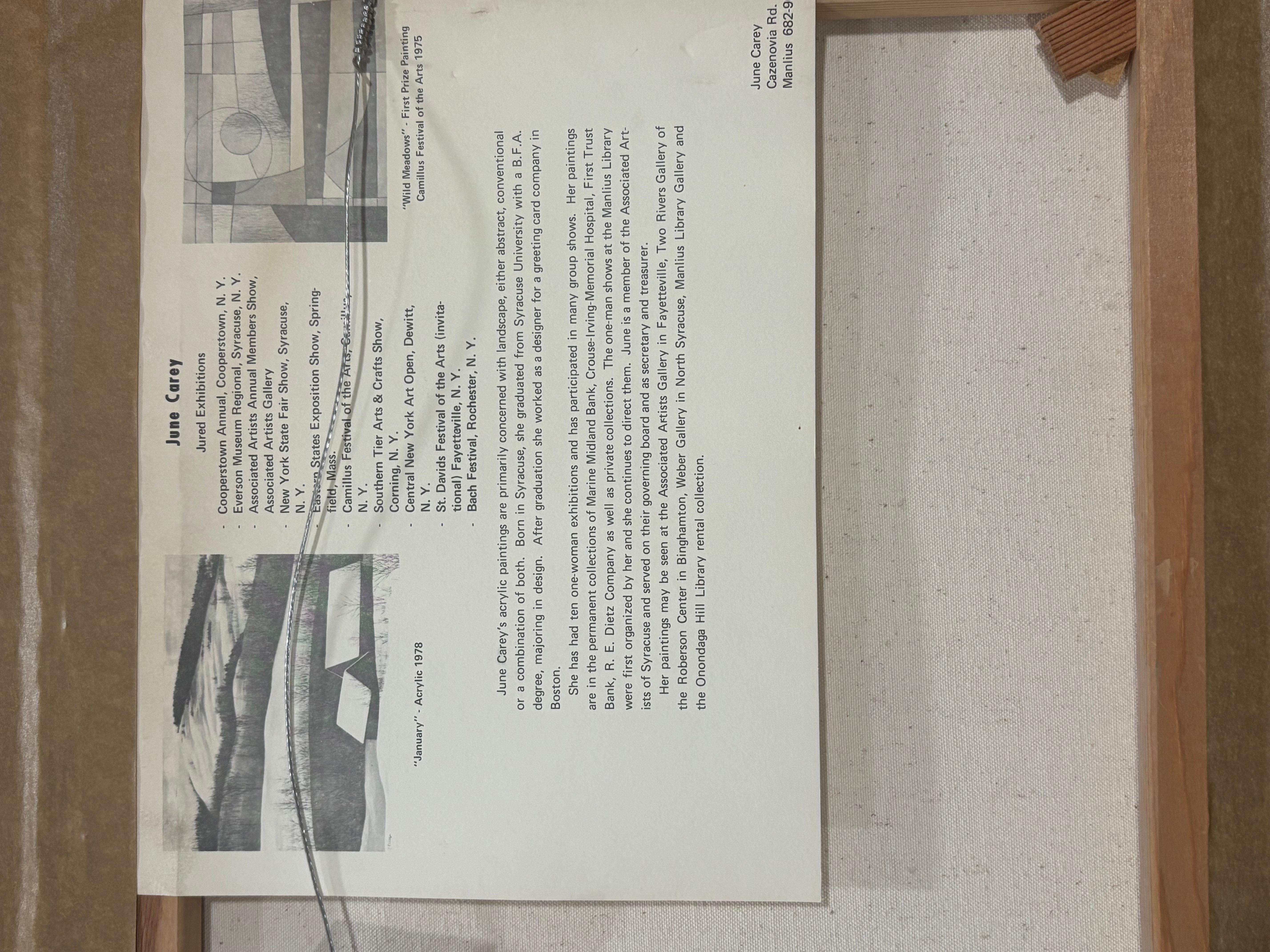 June Carey Peinture originale sur toile "January". En bon état mesure 20x16