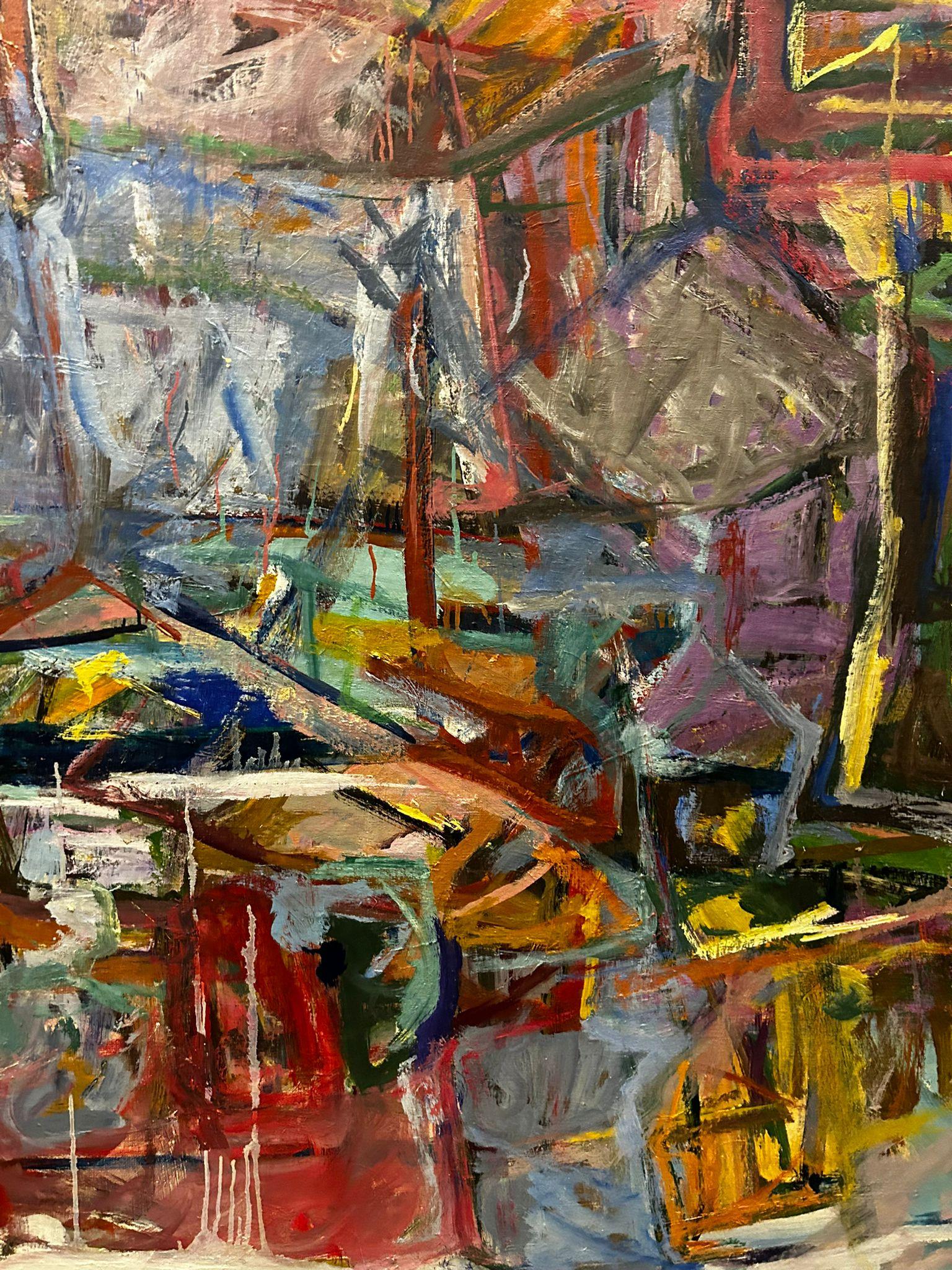 Importante et grande peinture à l'huile américaine ancienne encadrée, expressionniste abstraite