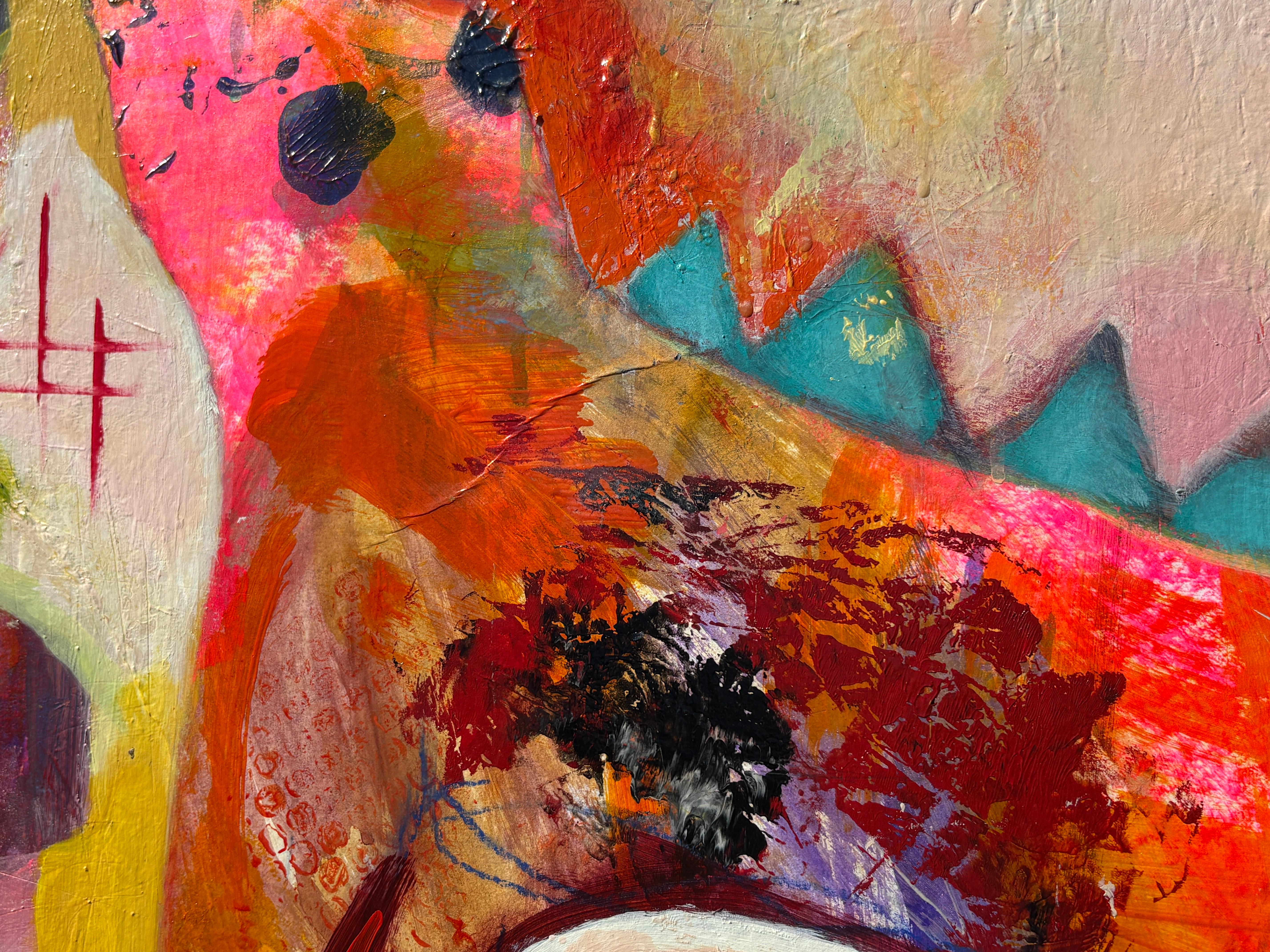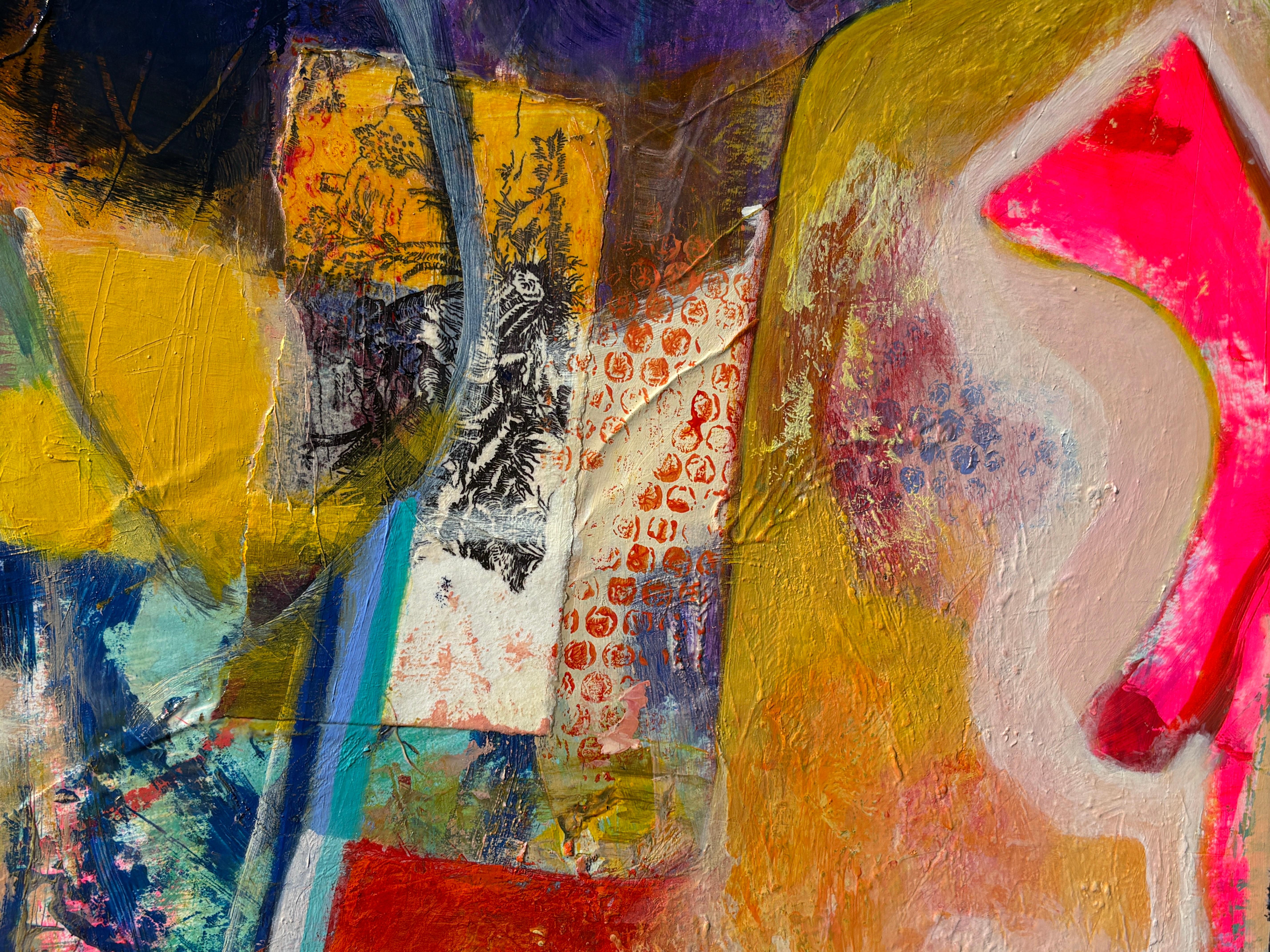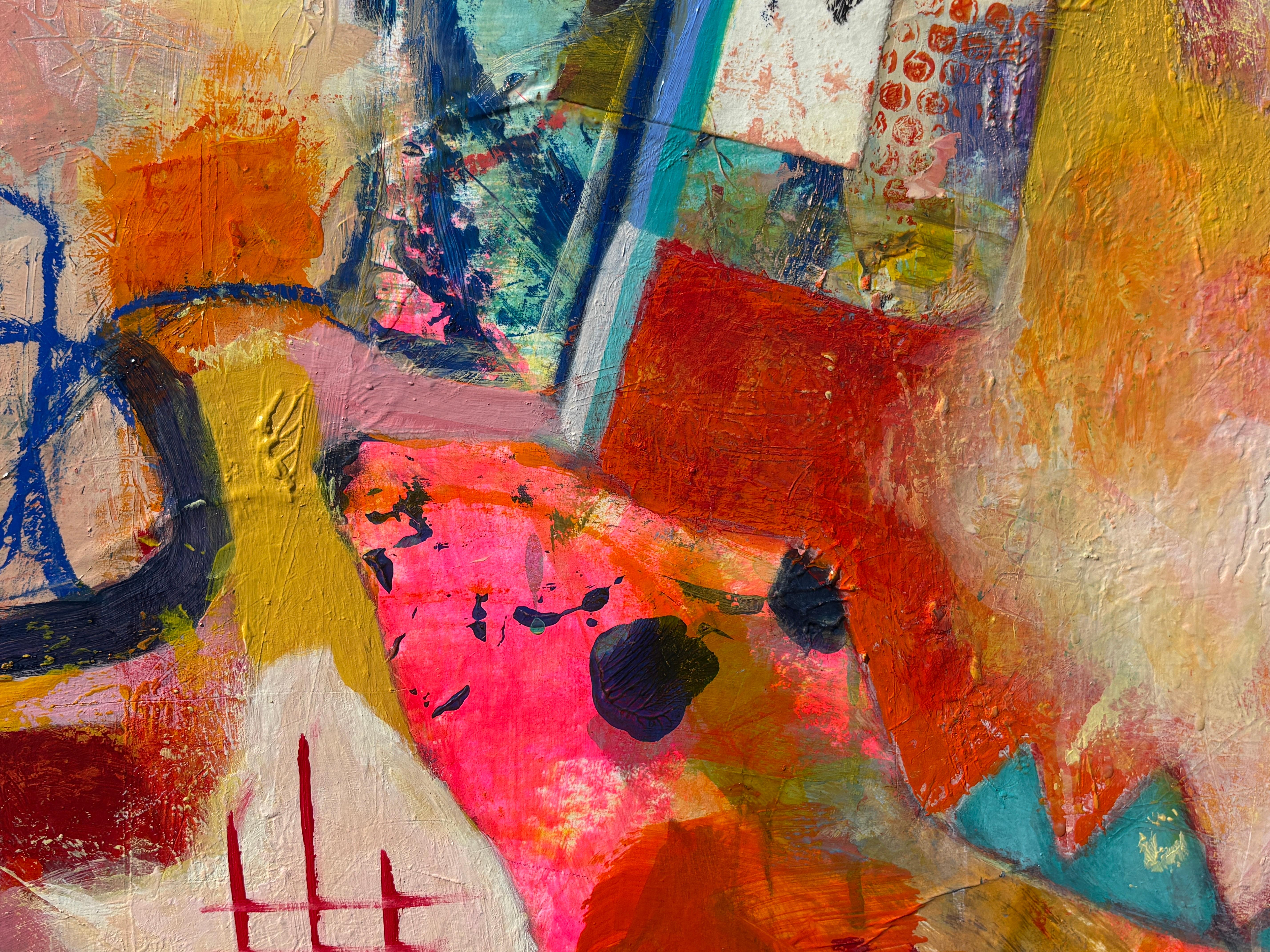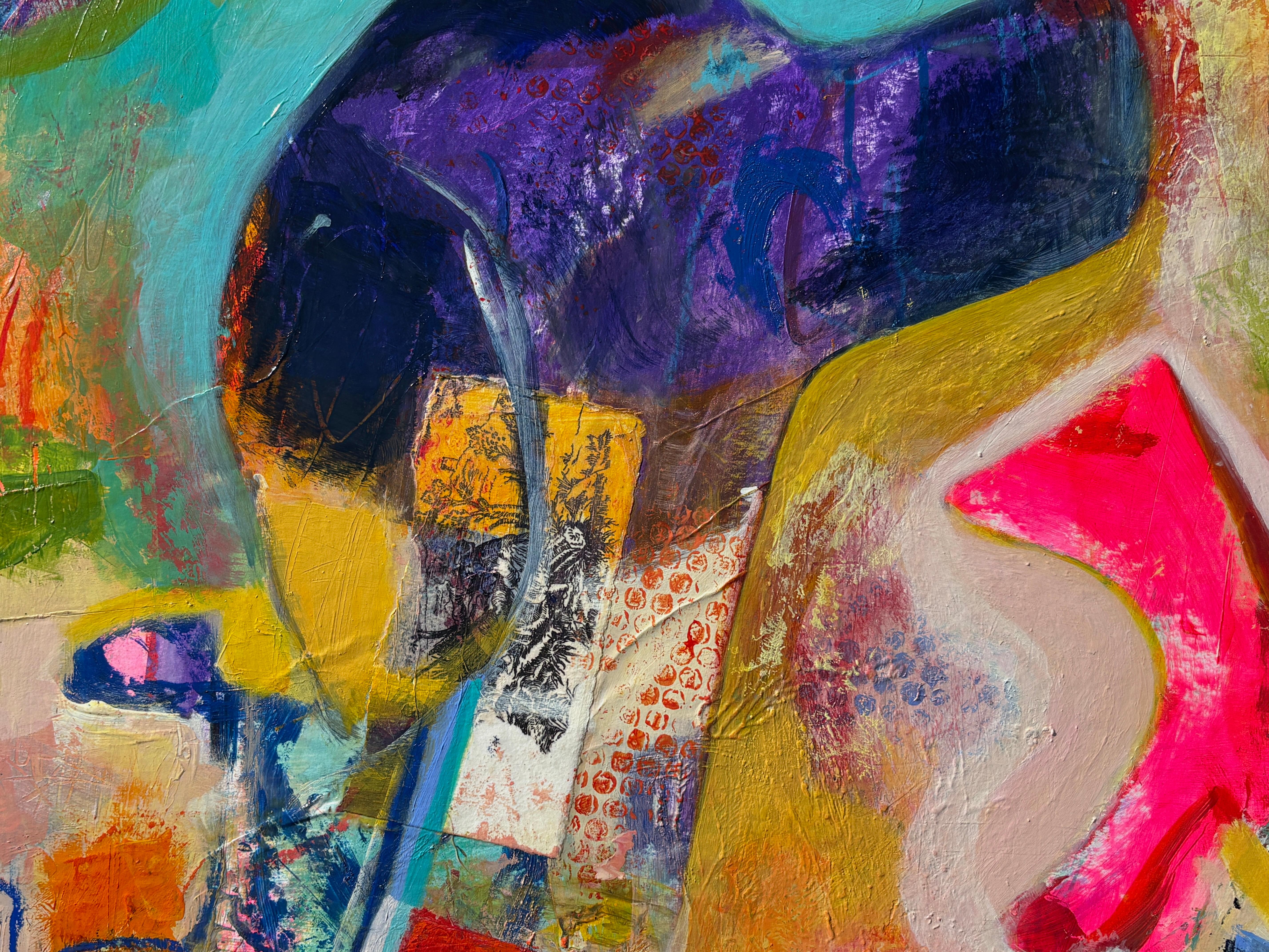colorful contemporary abstract mixed media painting expressionist busy signed
