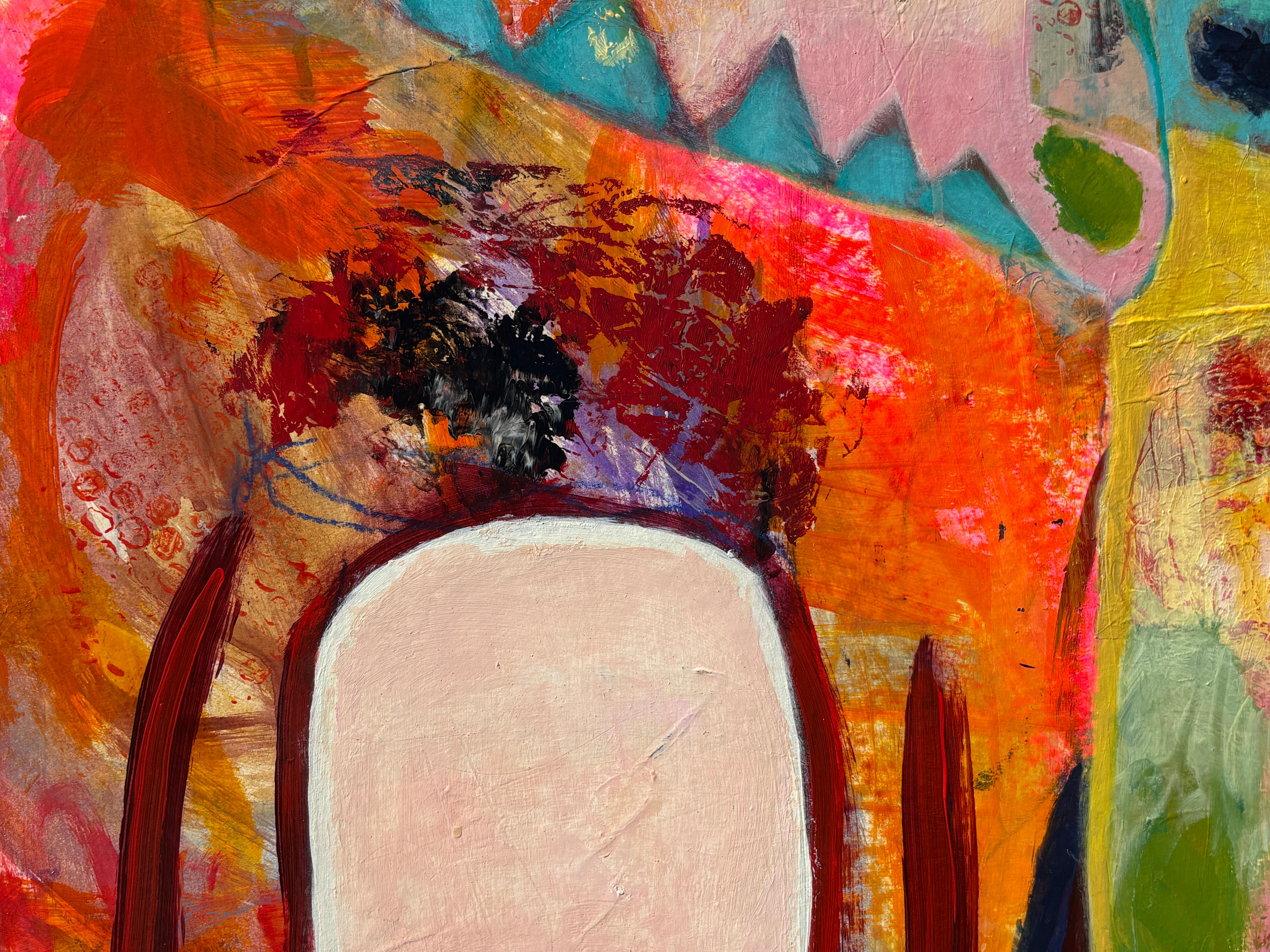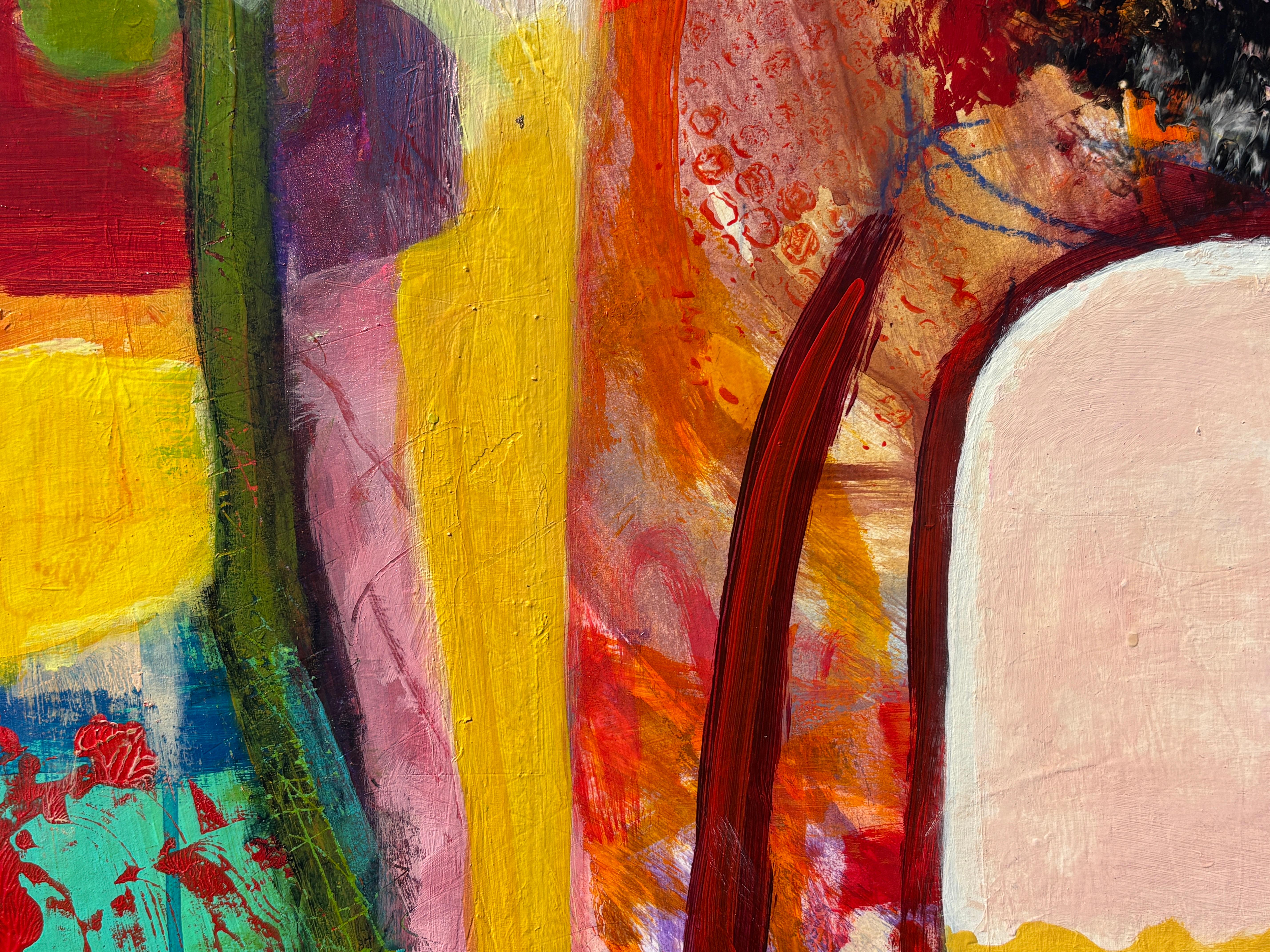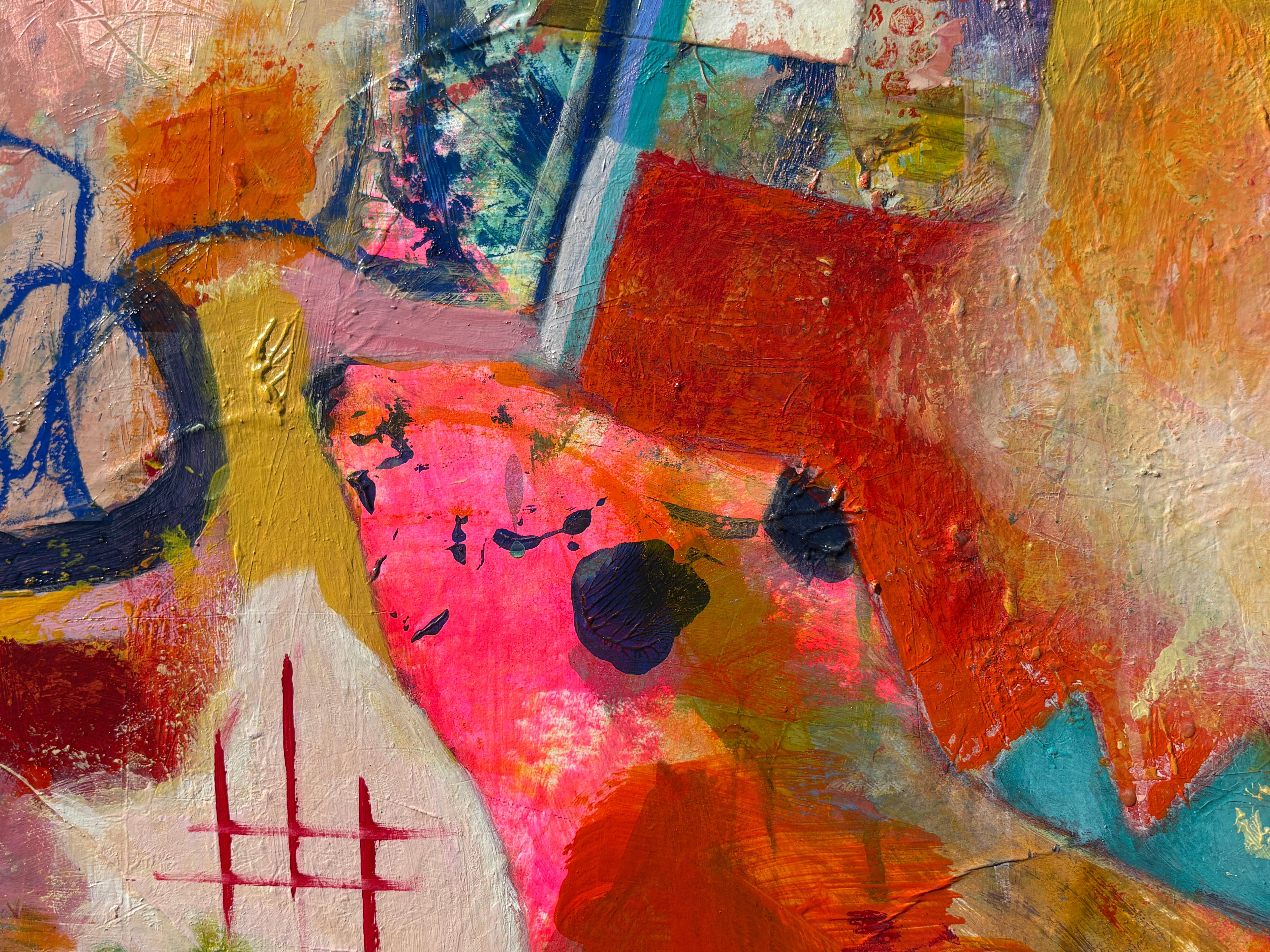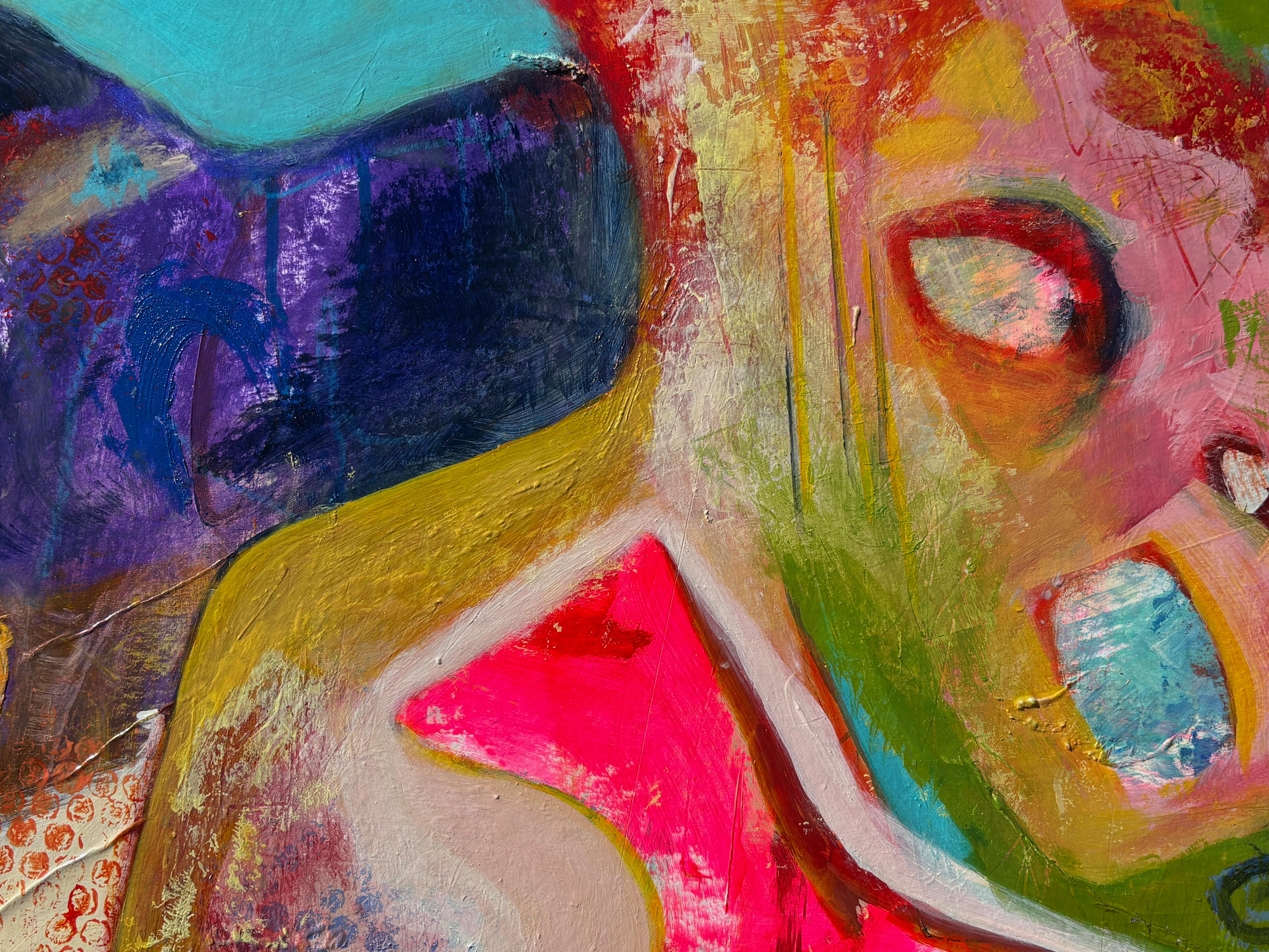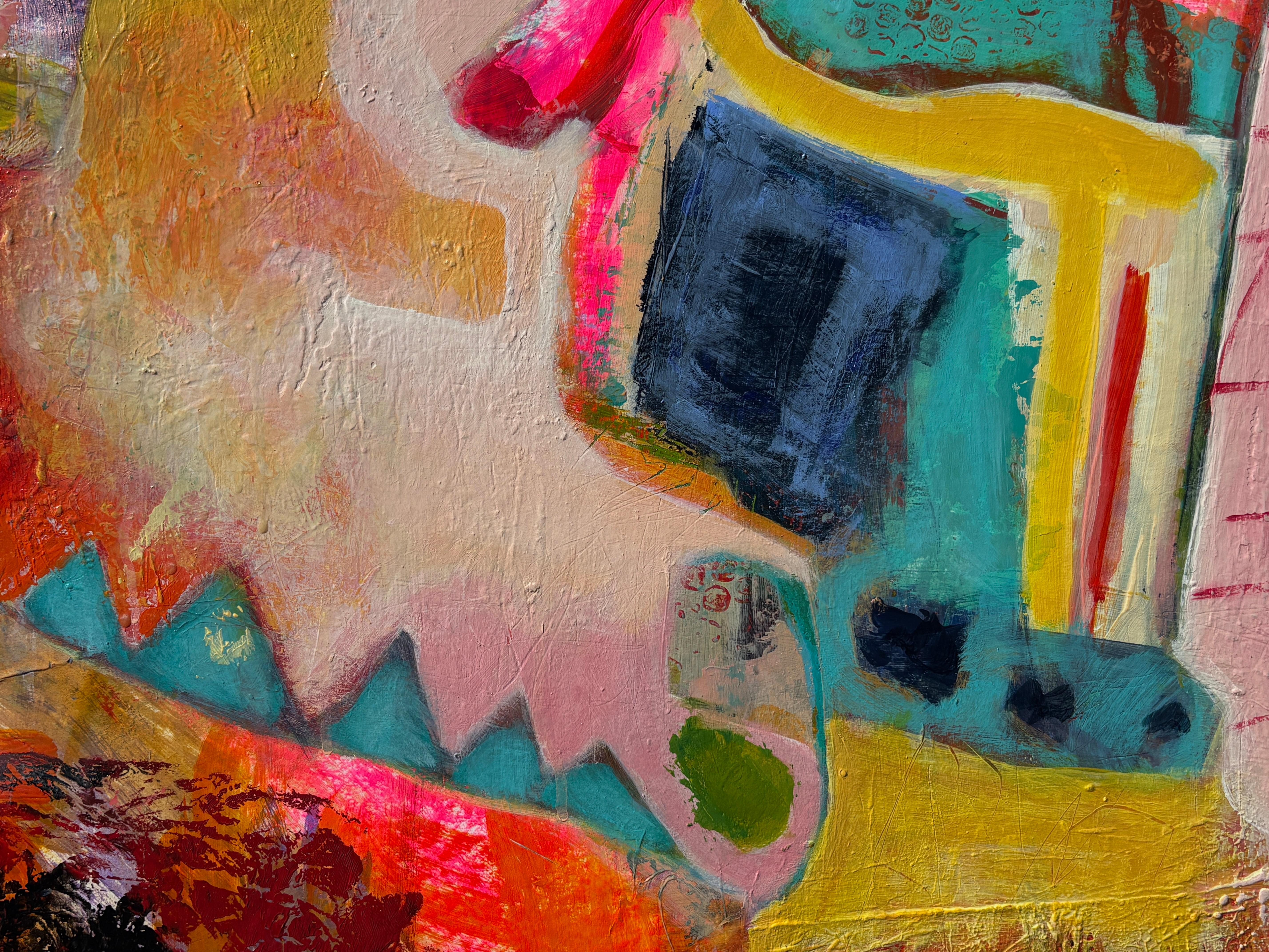 colorful contemporary abstract mixed media painting expressionist busy signed