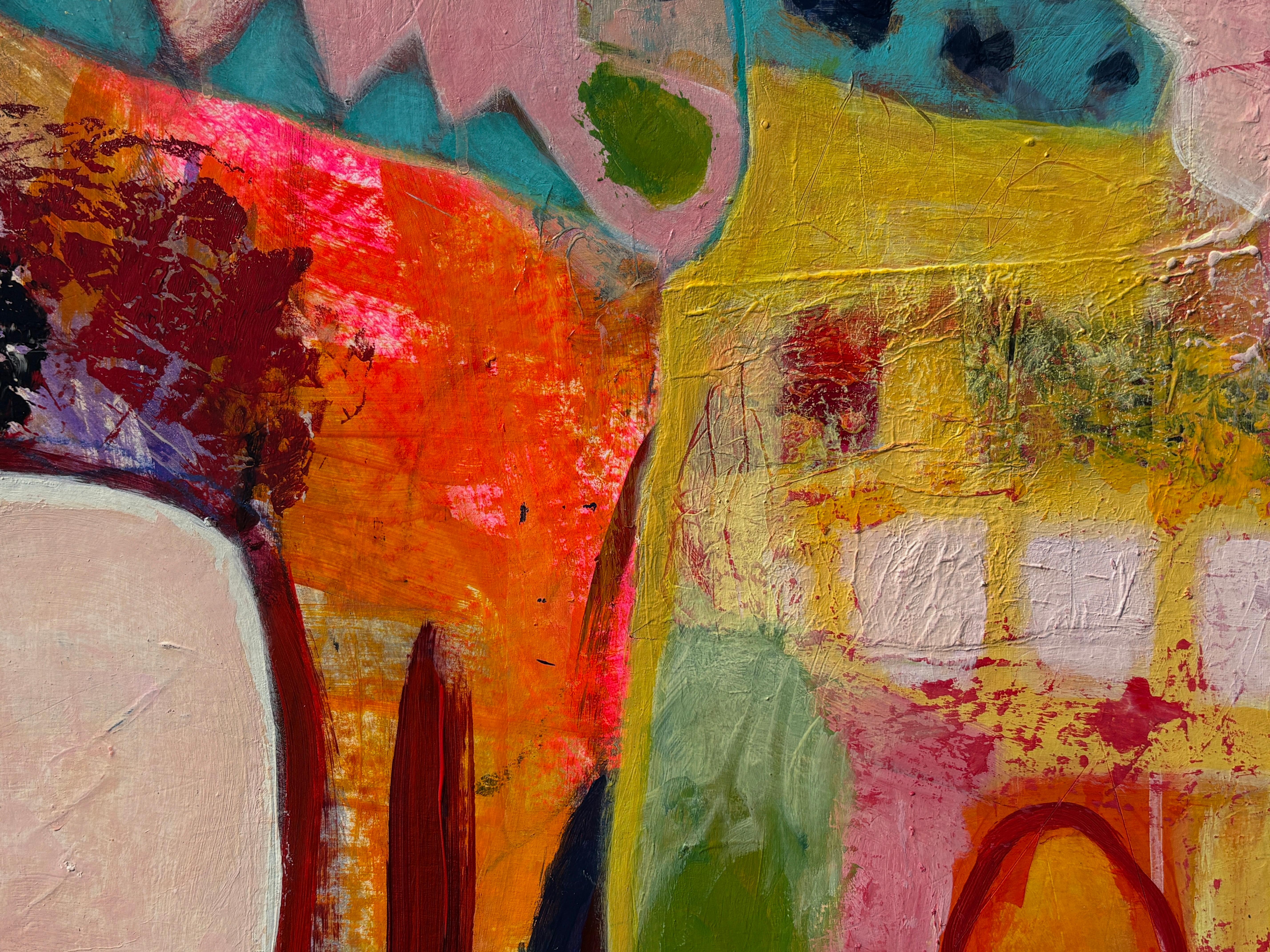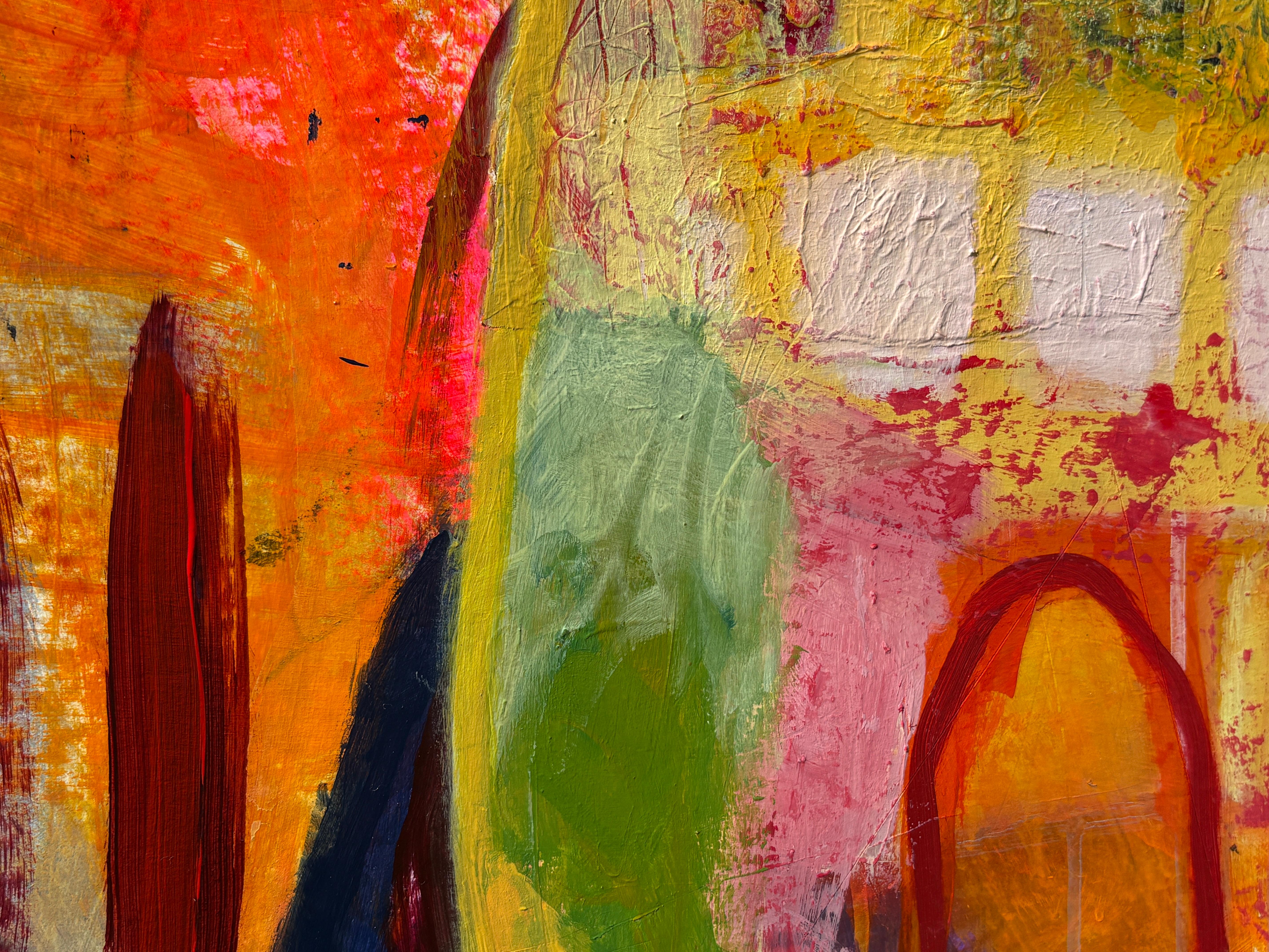 colorful contemporary abstract pastel mixed media expressionist busy signed