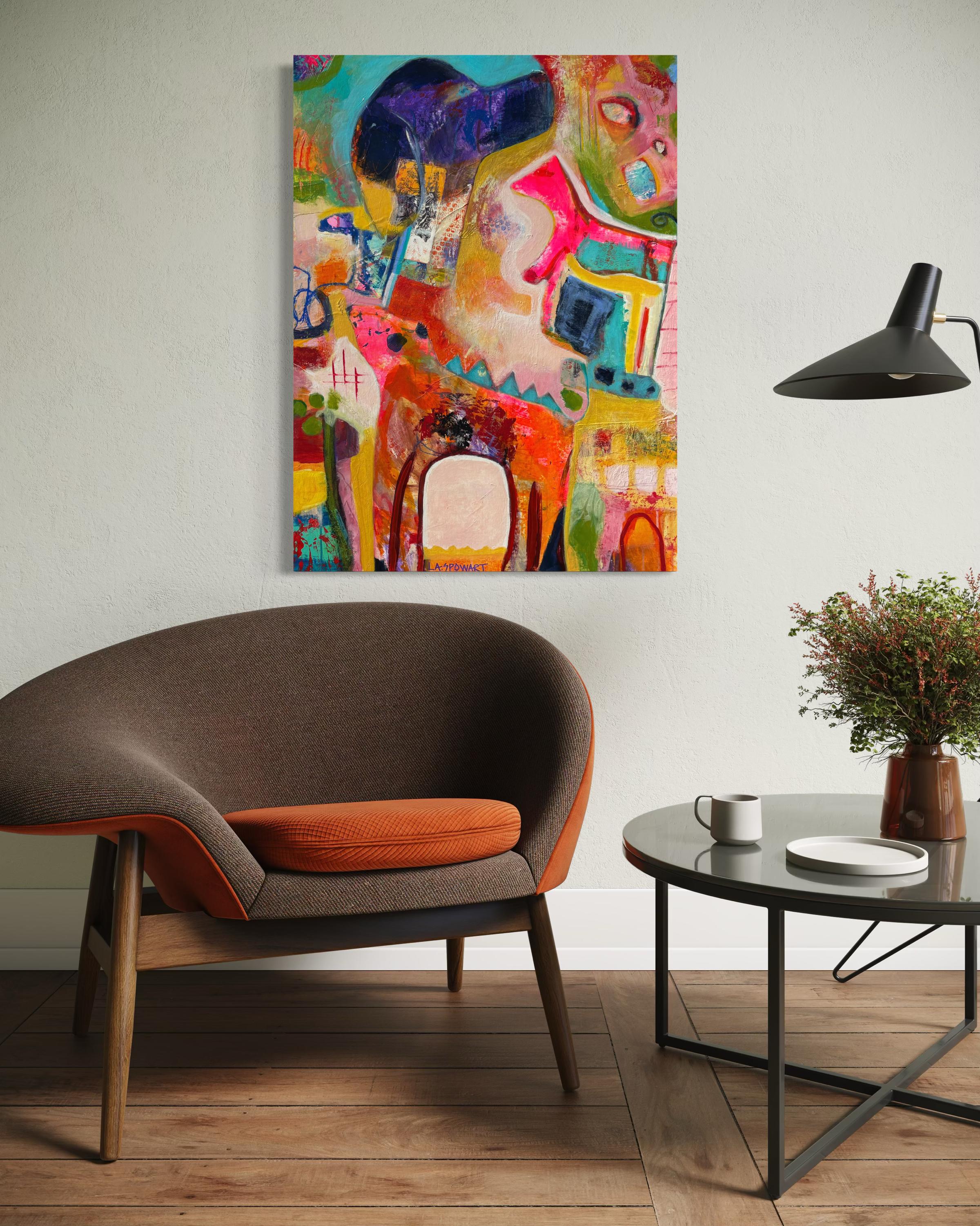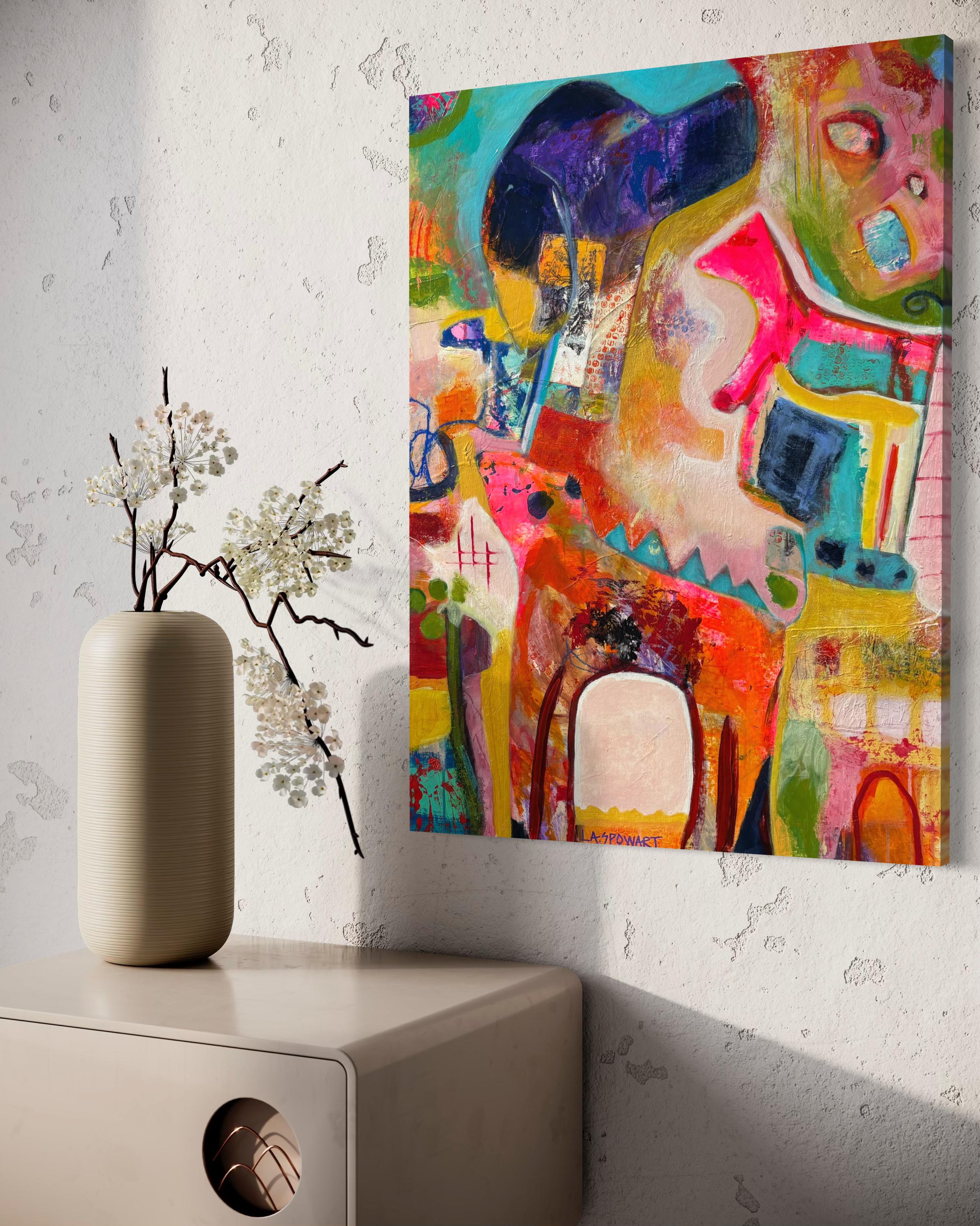 Petite Miss de L. A. Spowart - Petite peinture abstraite néo-figurative brillante