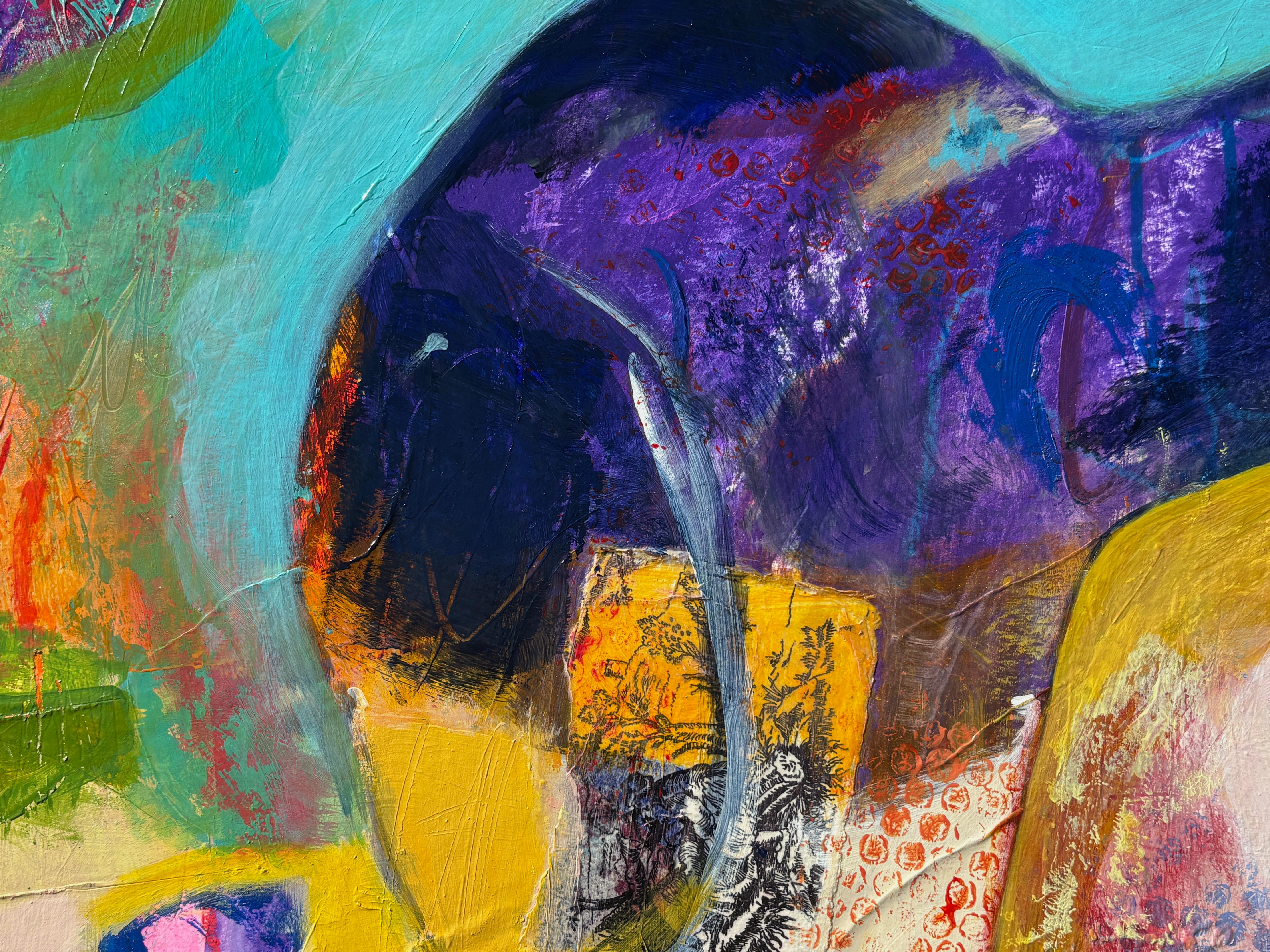 "Never Been To India" par Lesley Spowart - Peinture animalière contemporaine colorée