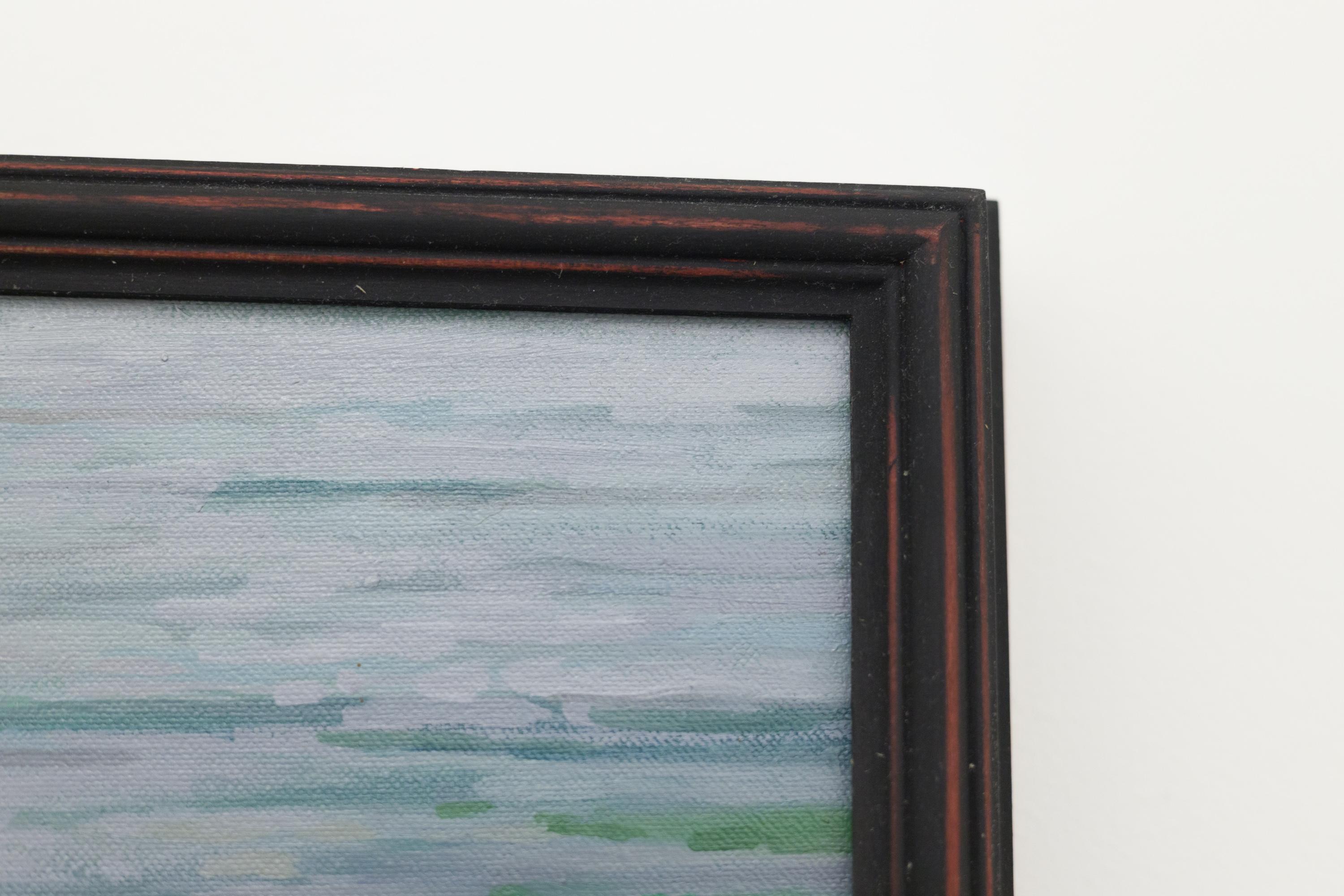 Cette œuvre intitulée "Introductions" est une œuvre originale de Katherine Fraser réalisée à partir d'huile sur toile. Cette pièce mesure 18 "h x 30 "w encadrée, et est livrée avec u...