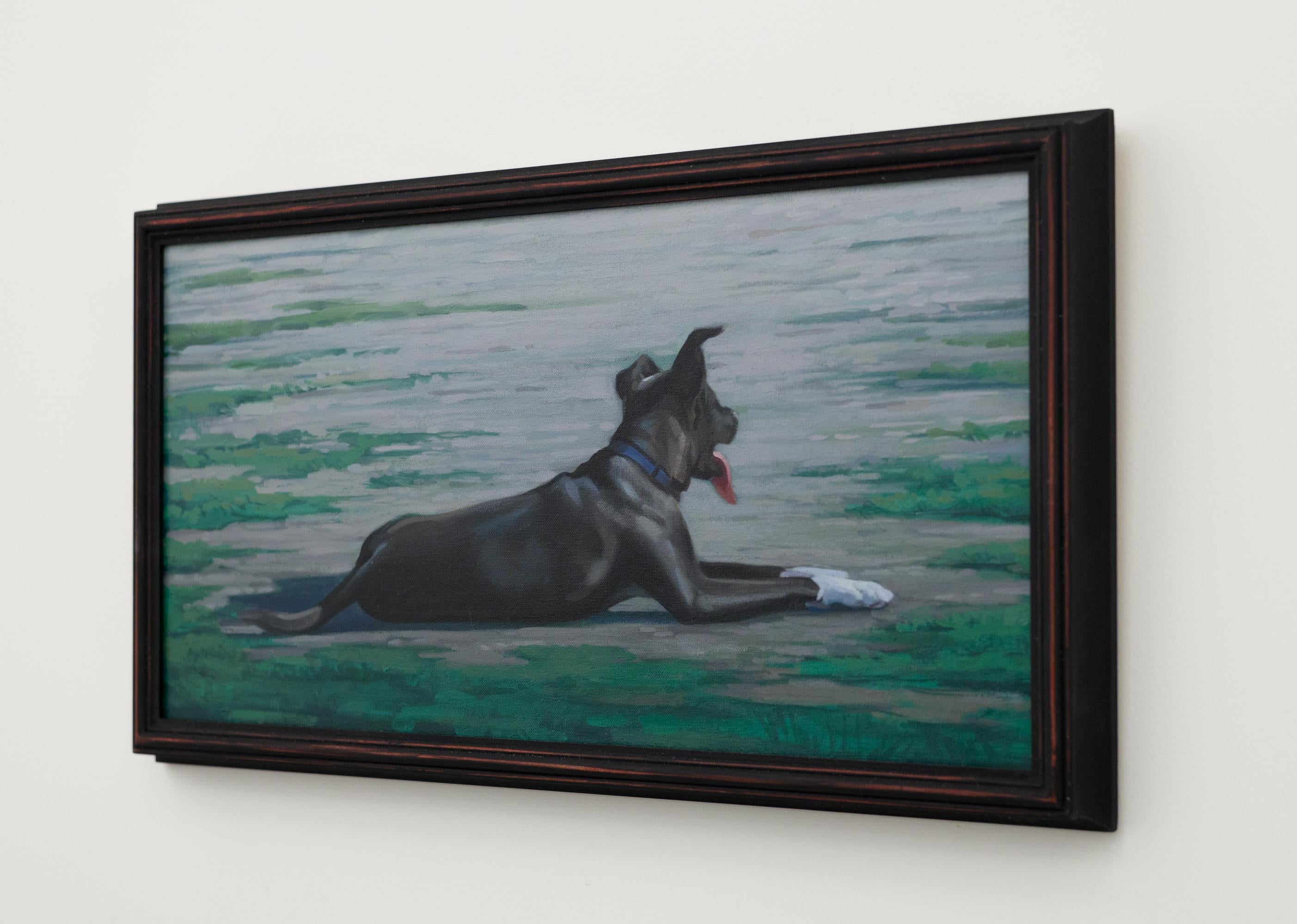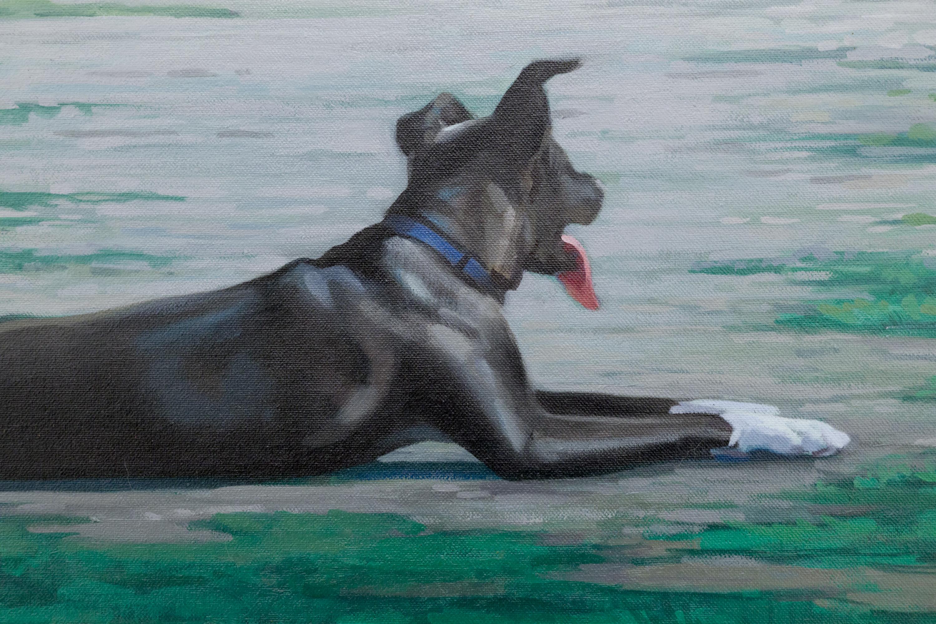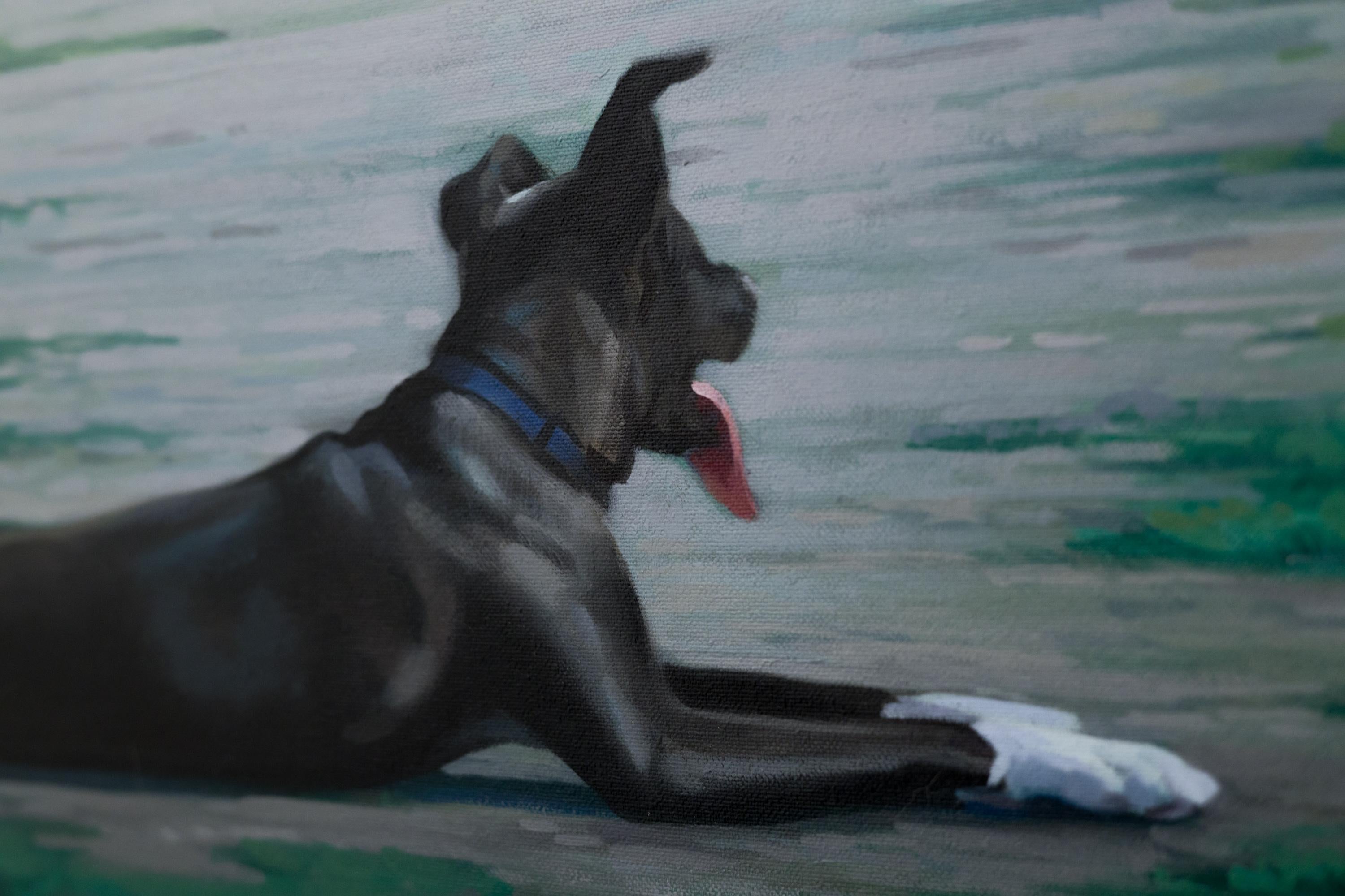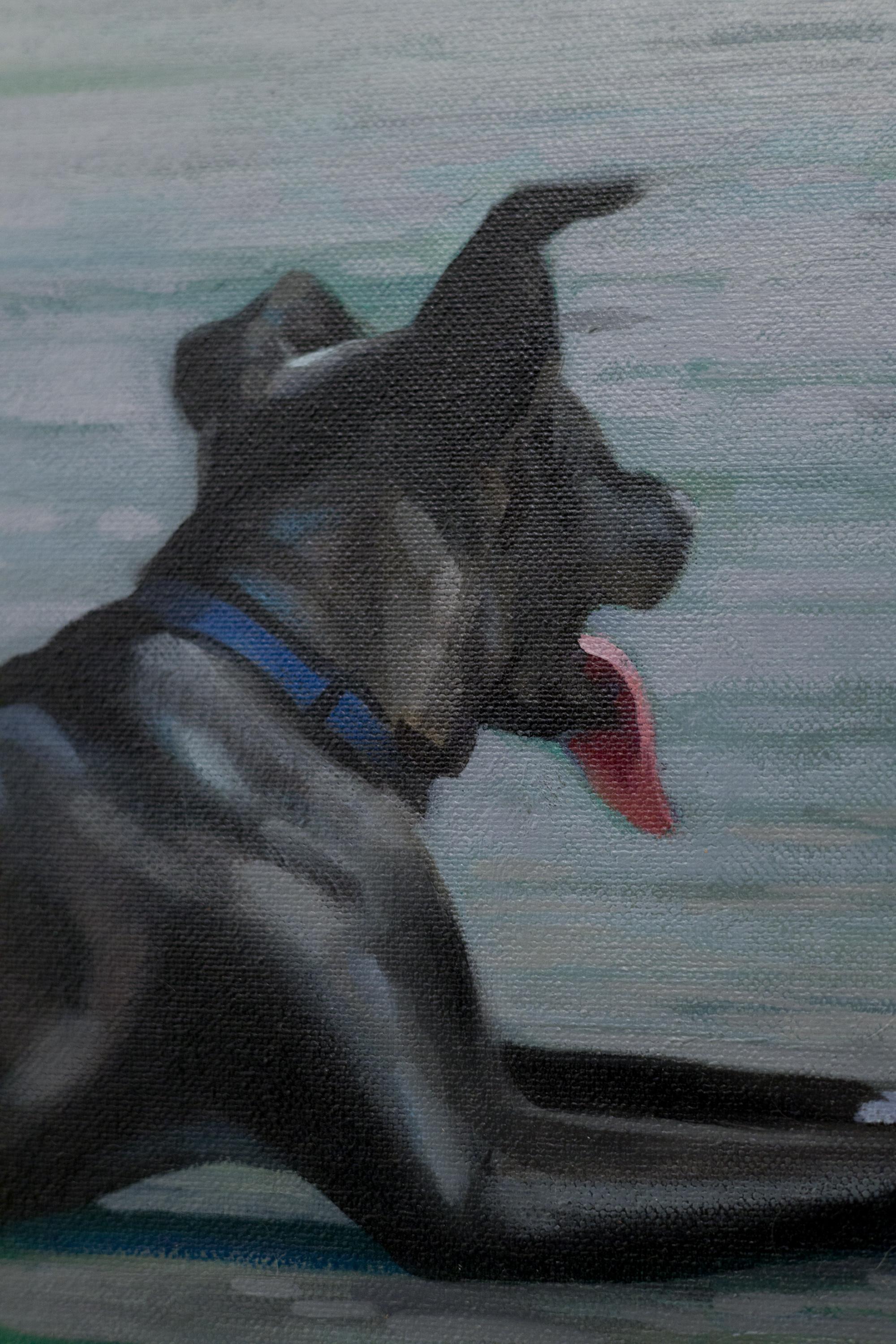 Katherine Fraser"Pant" Portrait contemporain d'un chien noir par Katherine Fraser2018