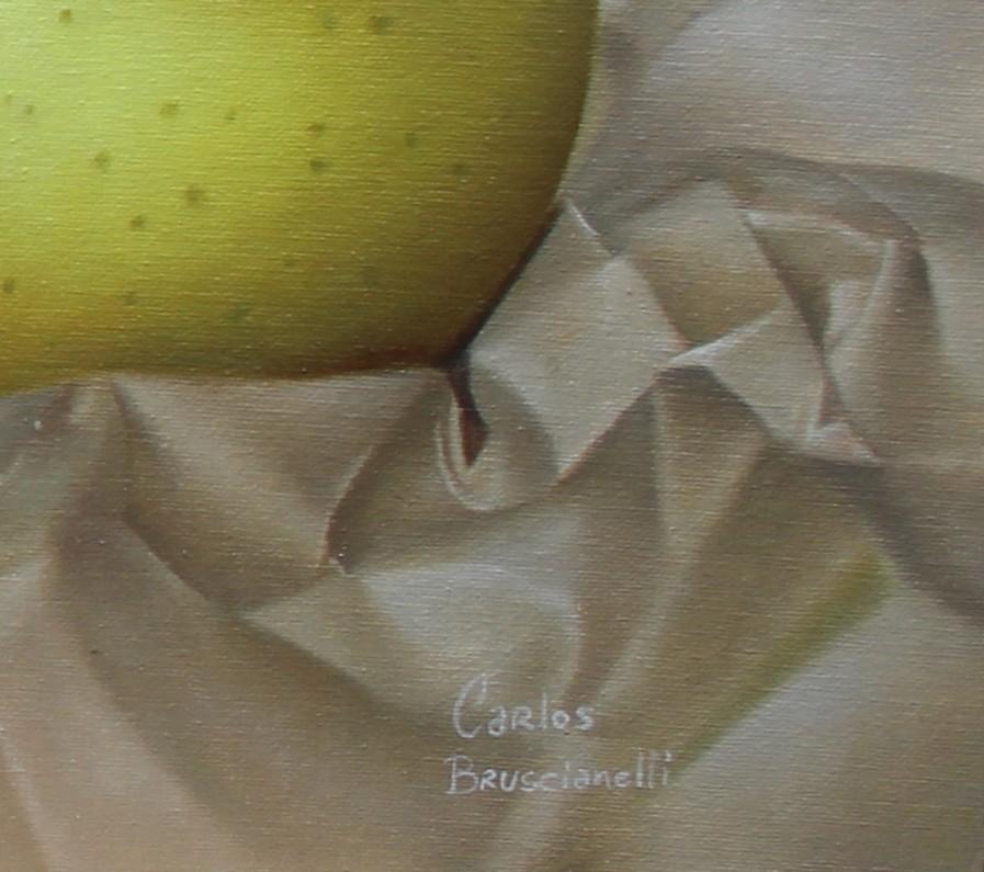 Carlos Bruscianelli"Fruits sur papier" (2025) Nature morte à l'huile sur panneau de toile2025
