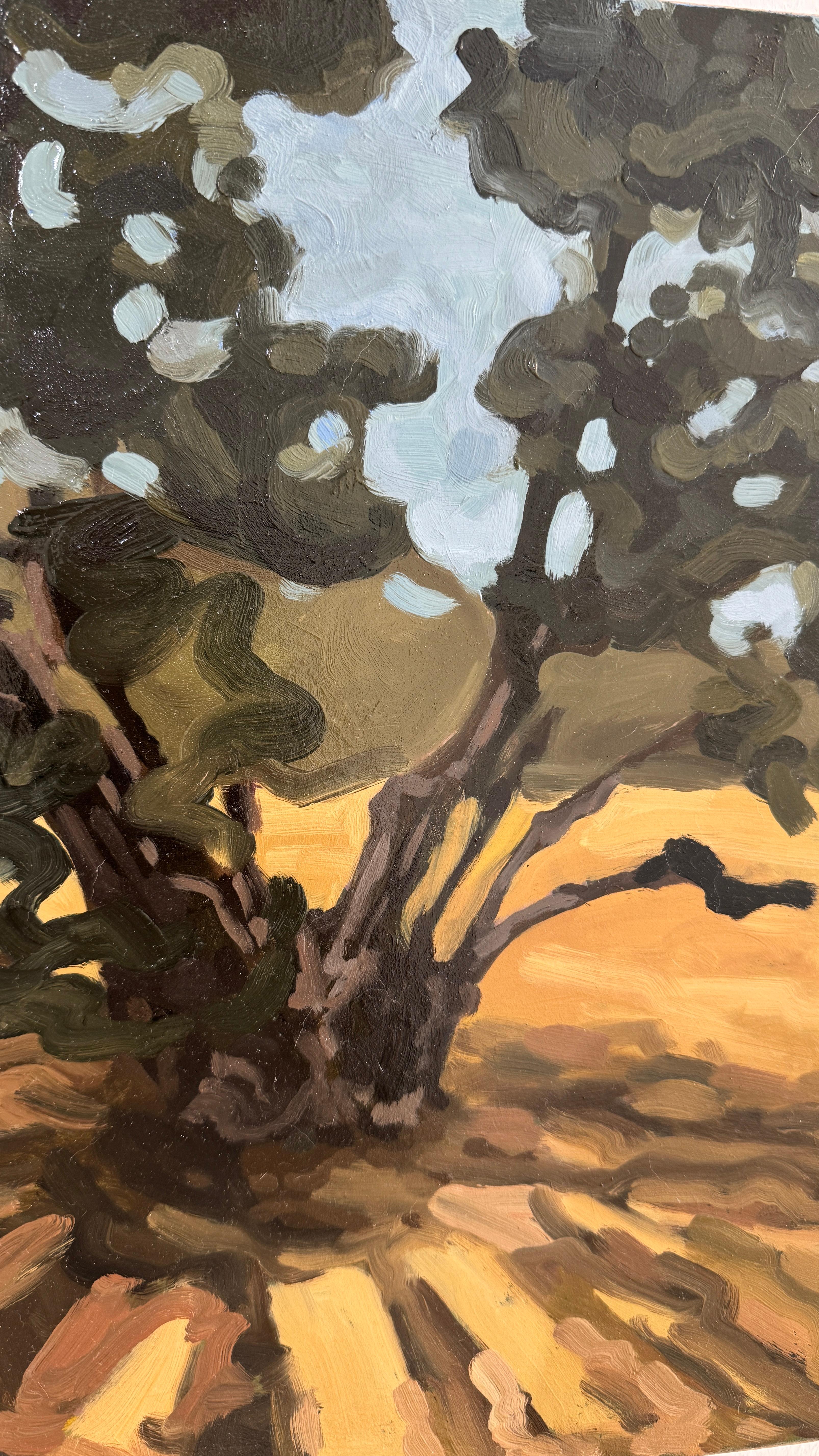 À travers mes peintures, je veux montrer leur force et leur fragilité, leur silence et leur profondeur. Parfois avec des distorsions, j'essaie de capturer la présence de ces arbres comme s'ils étaient des portraits de la vie elle-même."