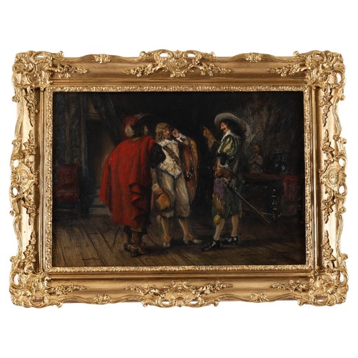 Peinture à l'huile de genre historique du XIXe siècle représentant une séduction