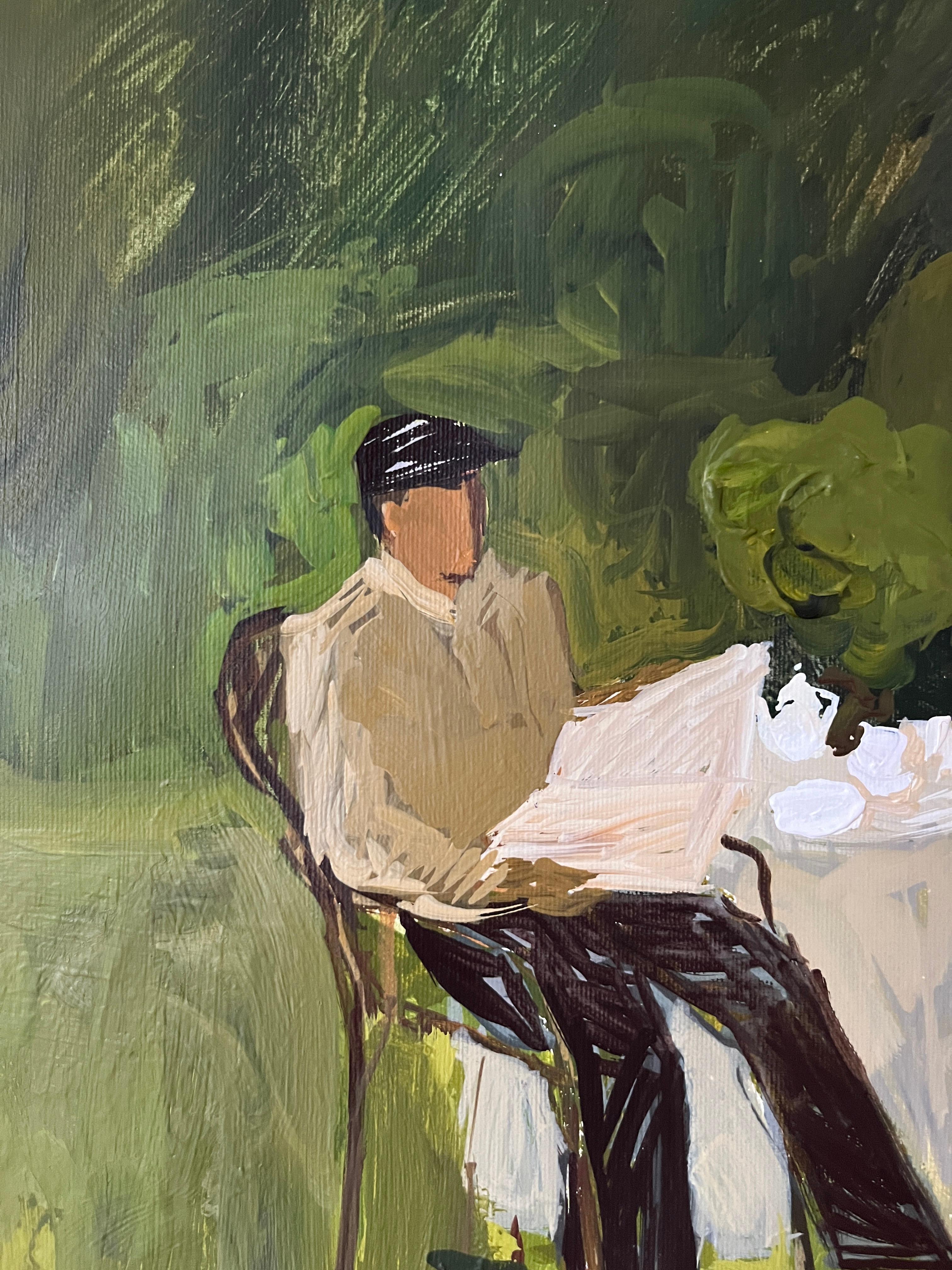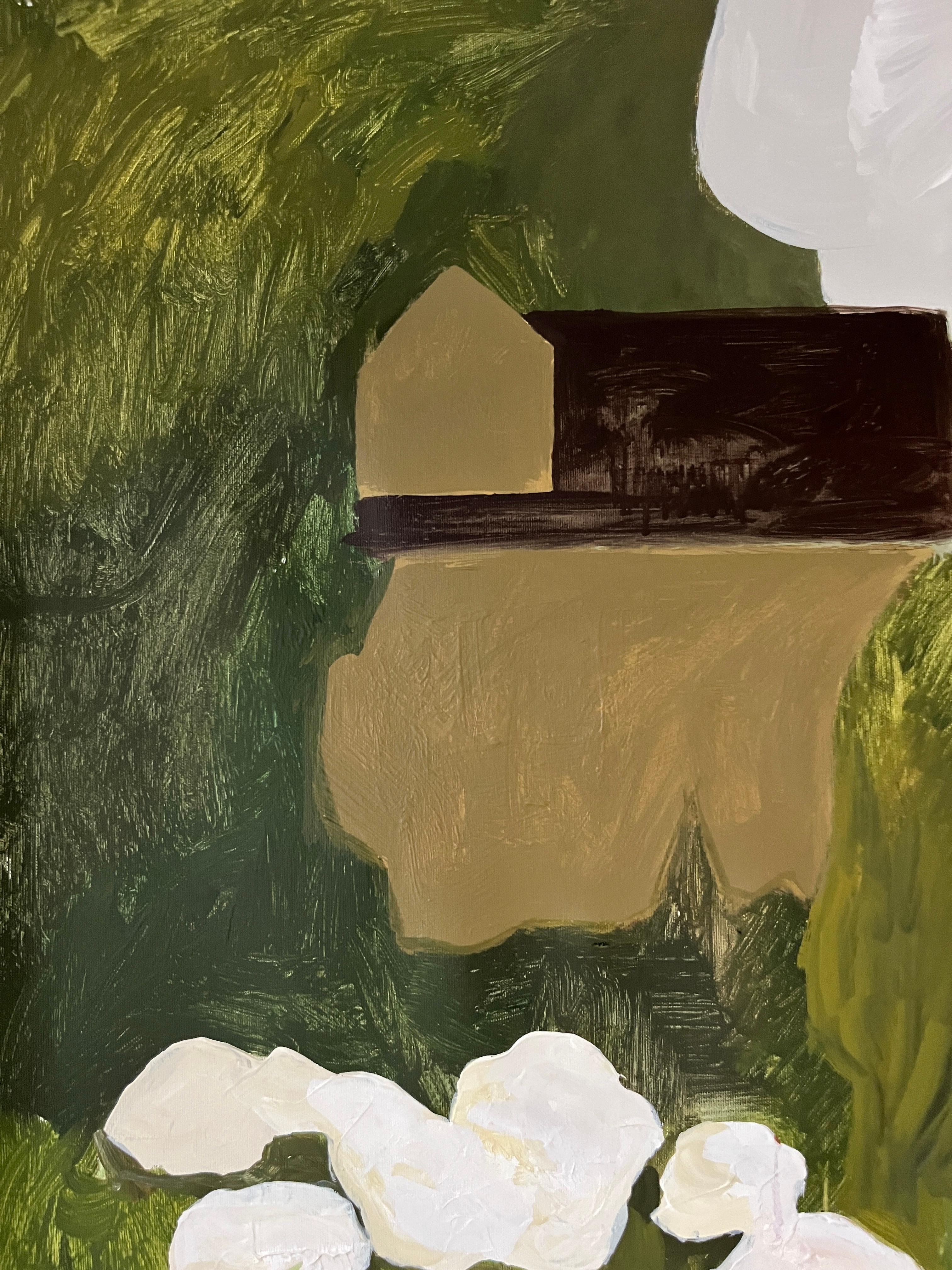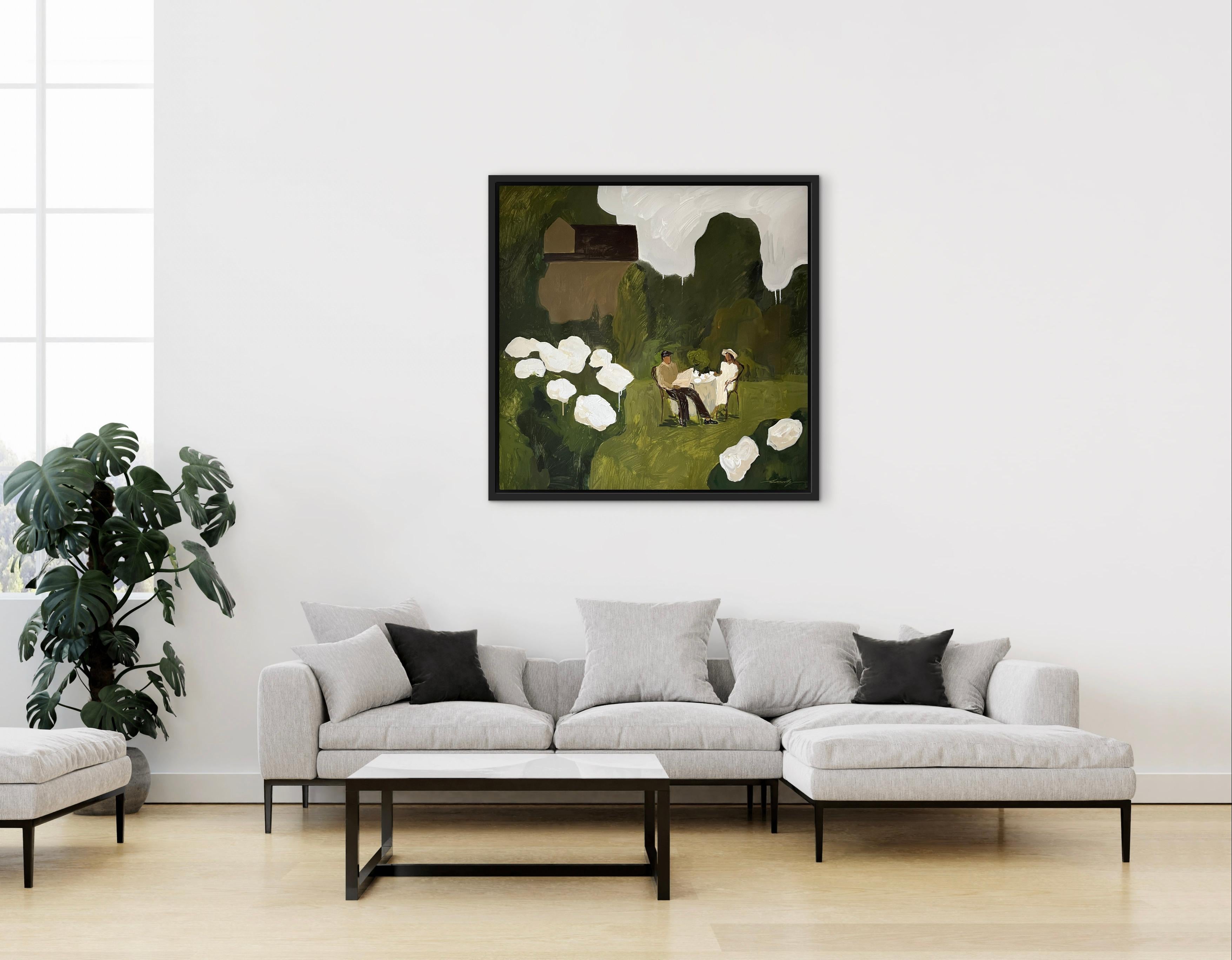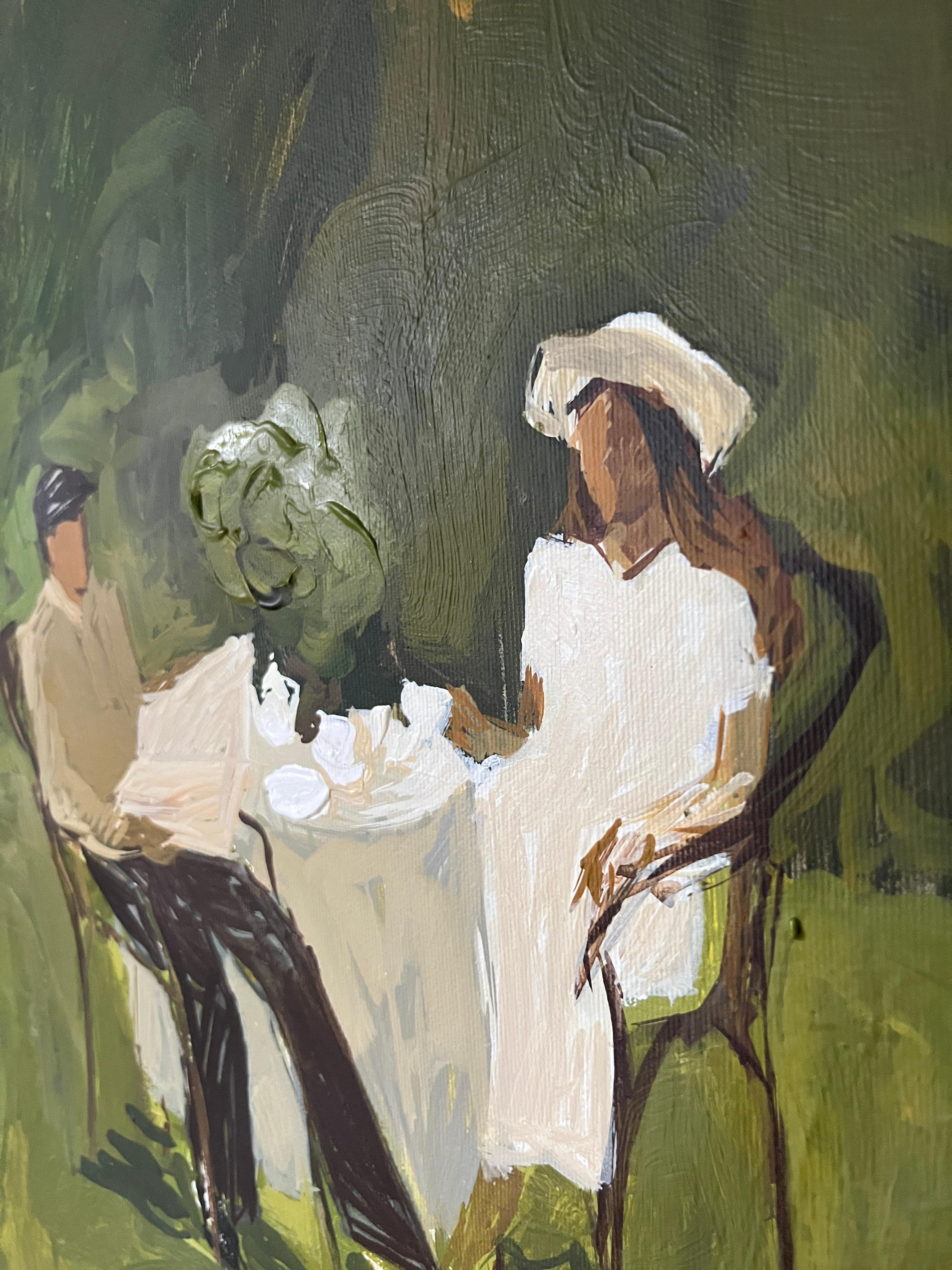 La douce palette de verts et de blancs crée une atmosphère de calme et de pureté, tandis que les coups de pinceau expressifs apportent chaleur et vie à la scène. Cette peinture est une ode à la tranquillité - un rappel de la beauté qui réside souvent dans le silence, la simplicité et le temps ralenti.