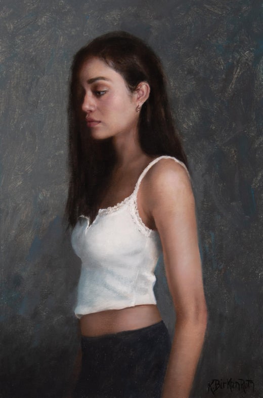 Kelly Birkenruth (née en 1972) crée des peintures réalistes contemporaines méticuleusement réalisées qui honorent les techniques des maîtres anciens tout en s'adressant aux spectateurs d'aujourd'hui. Son approche artistique s'est développée après ses études à la Pennsylvania State University et pendant les années où elle a été mannequin de mode international, lorsqu'elle s'est plongée dans l'étude des peintures classiques dans les musées européens et japonais. Birkenruth a ensuite formalisé sa formation artistique à l'Otis College of Art et dans le cadre d'études spécialisées avec des maîtres de la figuration. Son portfolio est centré sur des natures mortes et des portraits qui se distinguent par un dessin précis et une manipulation lumineuse de la lumière. Le travail de M. Birkenruth a été reconnu par des expositions au musée MEAM de Barcelone, au musée Rockwell et au musée d'art contemporain de Wausau, ainsi que par des prix décernés par la Portrait Society of America et des sélections de finalistes dans le cadre de concours organisés par l'Art Renewal Center. Elle est représentée par des galeries sélectionnées à travers les États-Unis, dont Abend Gallery.