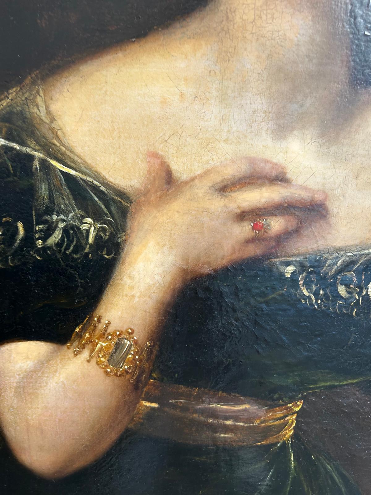 1870 Victorian English Portrait of Country House Lady Large Oil on Canvas (Huile sur toile)