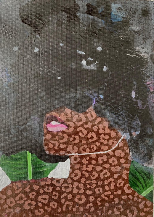 Cette peinture acrylique, intitulée "Nest IV", est une création originale d'Ifeoluwa Alade, une artiste basée au Nigeria. La pièce fabriquée à la main représente un modèle féminin ni...