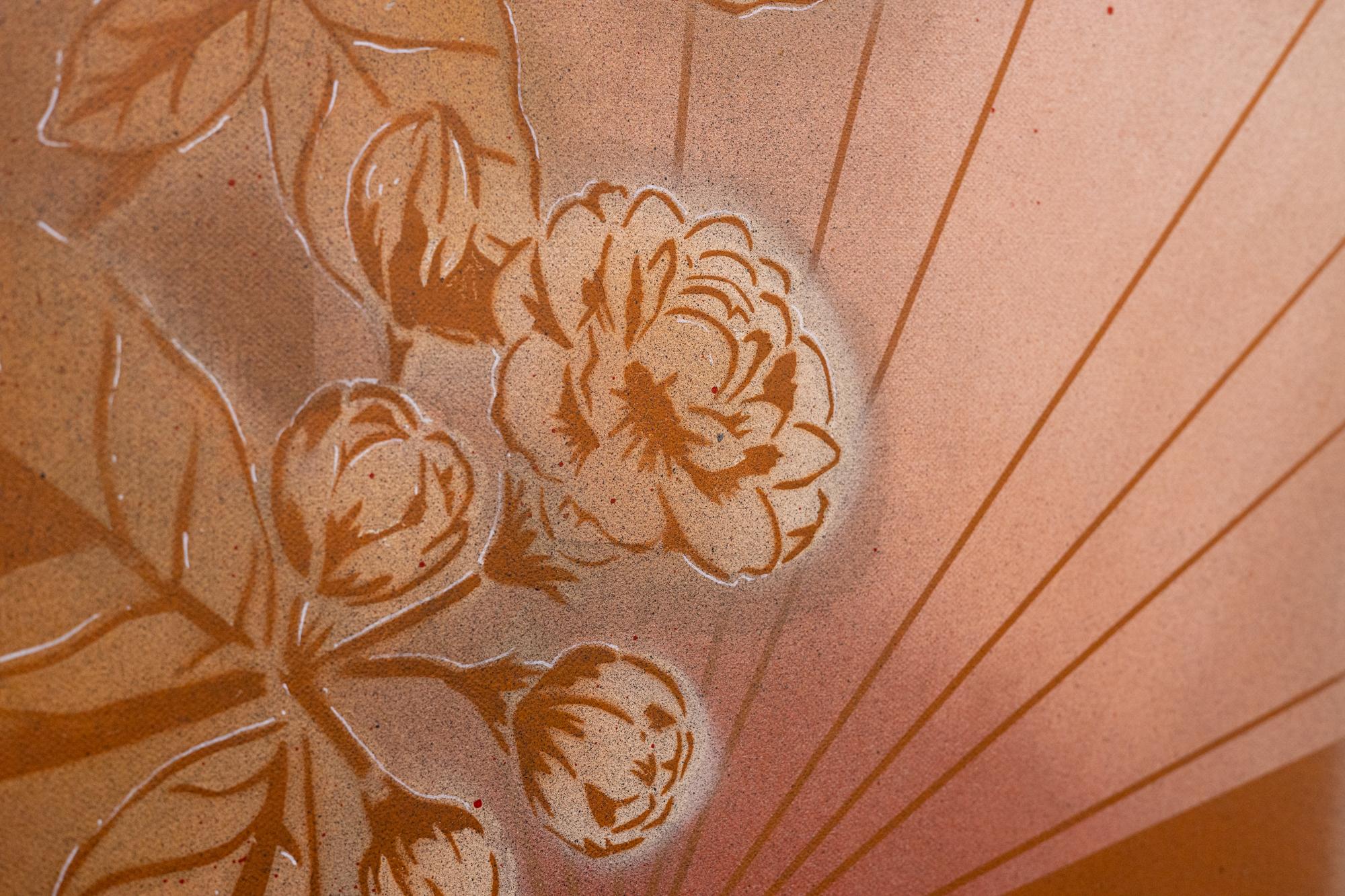 Cette peinture figurative intitulée "Digital Fields (Orange)" est une oeuvre originale de My Dog Sighs réalisée en peinture aérosol et acrylique sur toile. Cette pièce mesure 36 "h x...
