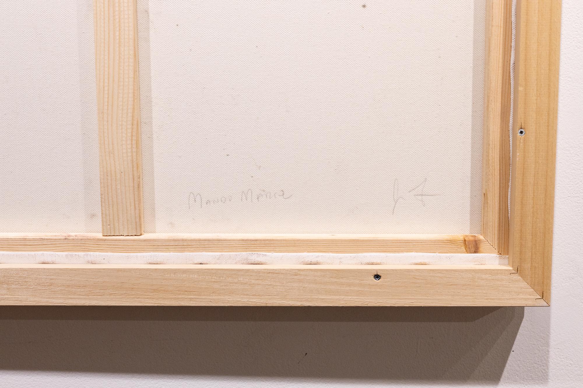 Cette peinture intitulée "Double Intro 26" est une oeuvre originale de Mando Marie réalisée en acrylique, aérosol, et encre sur toile. Il mesure 29 "h x 40.75 "w encadré.