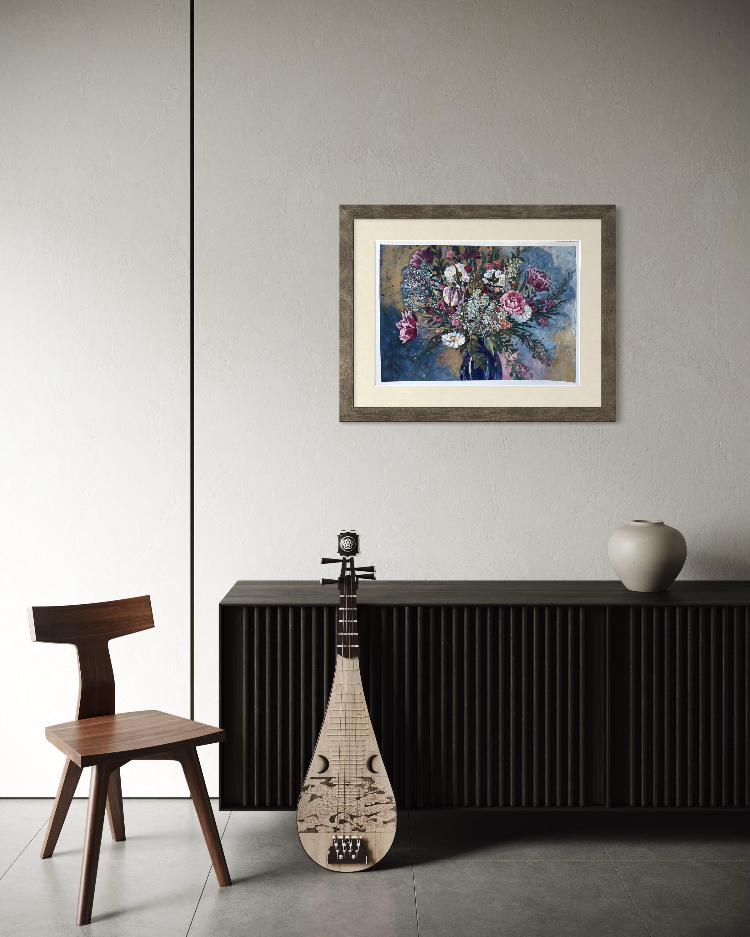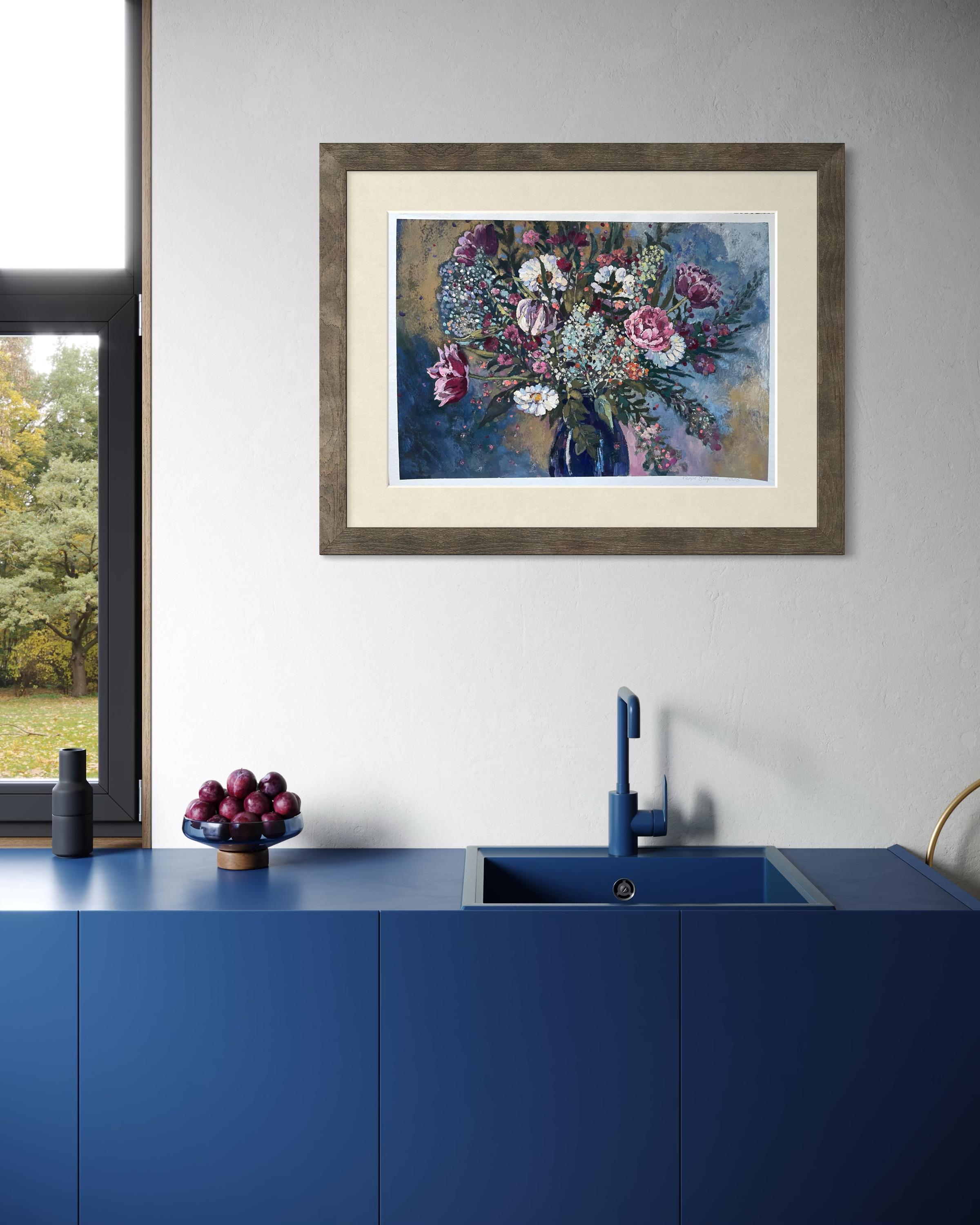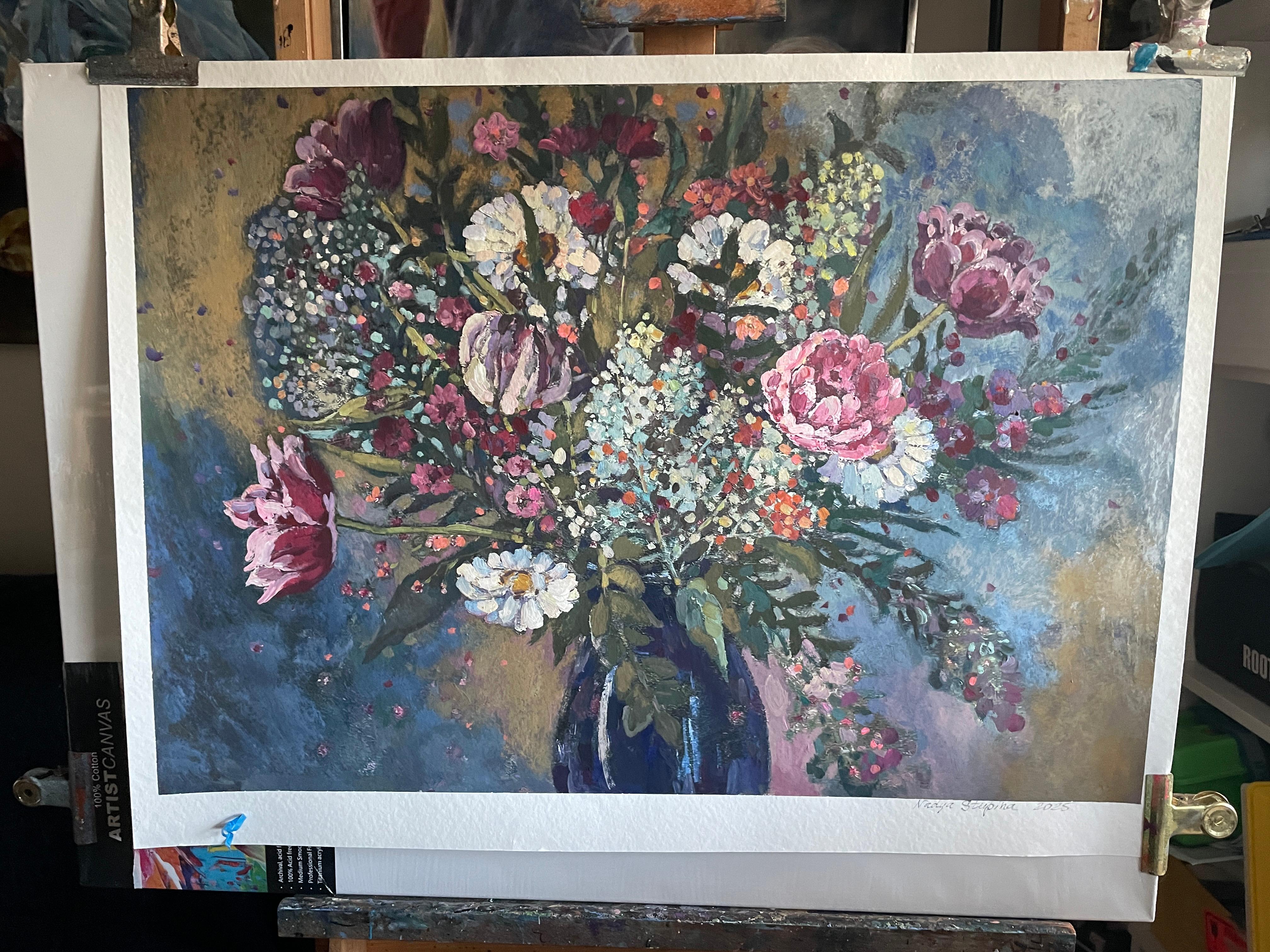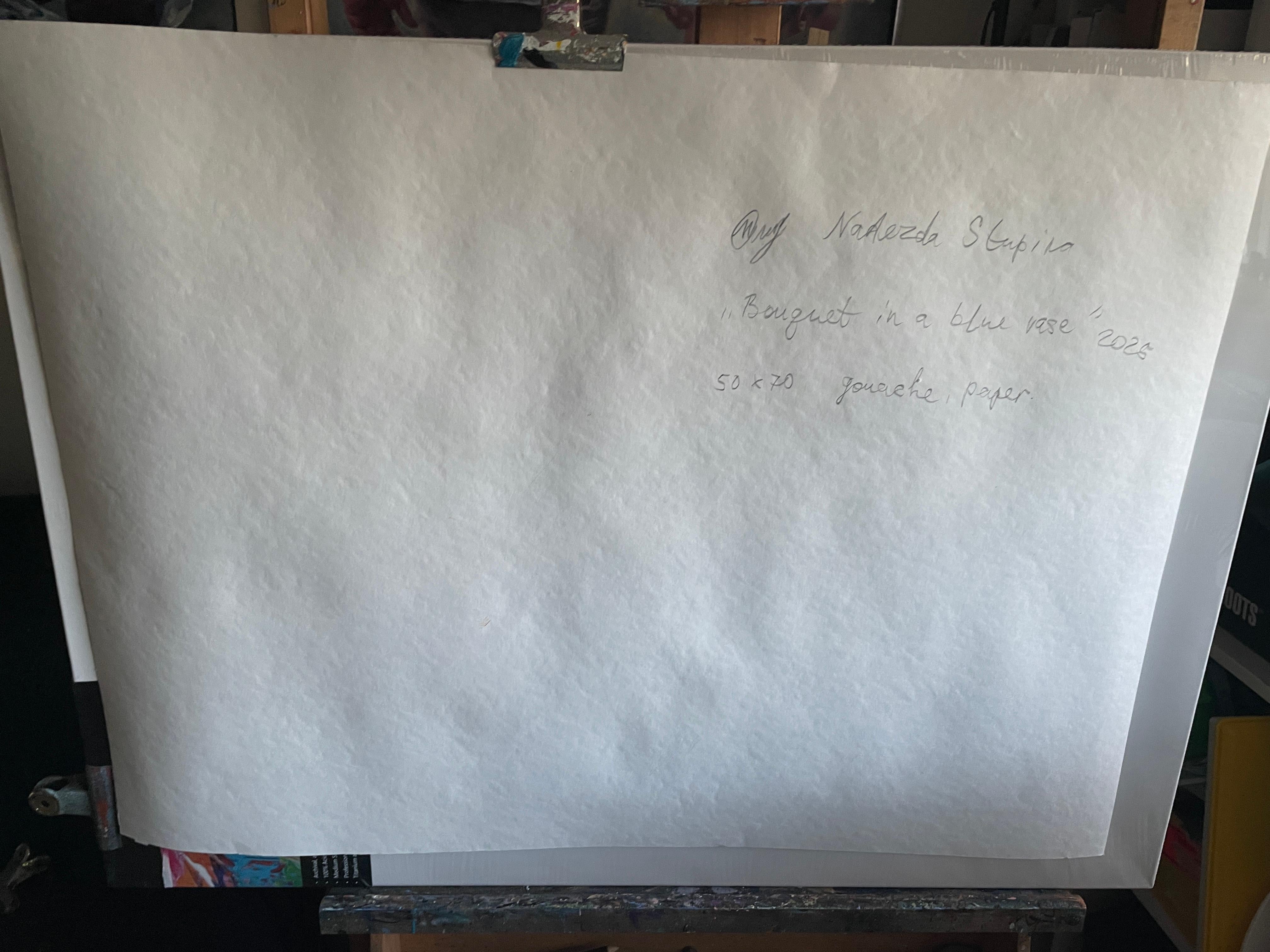 Nadezda Stupina"Bouquet dans un vase bleu " Peinture florale originale. Gouache sur papier.2025