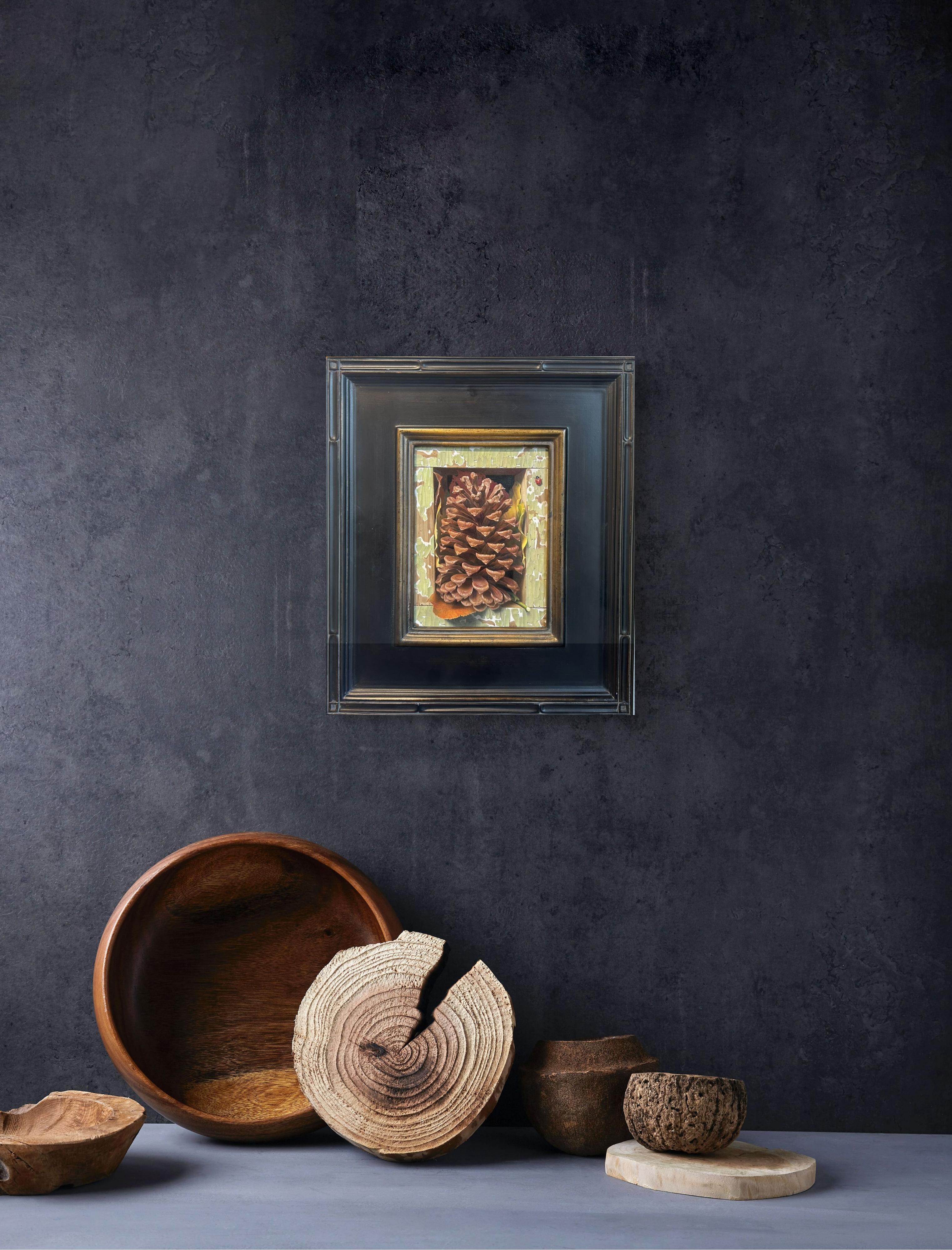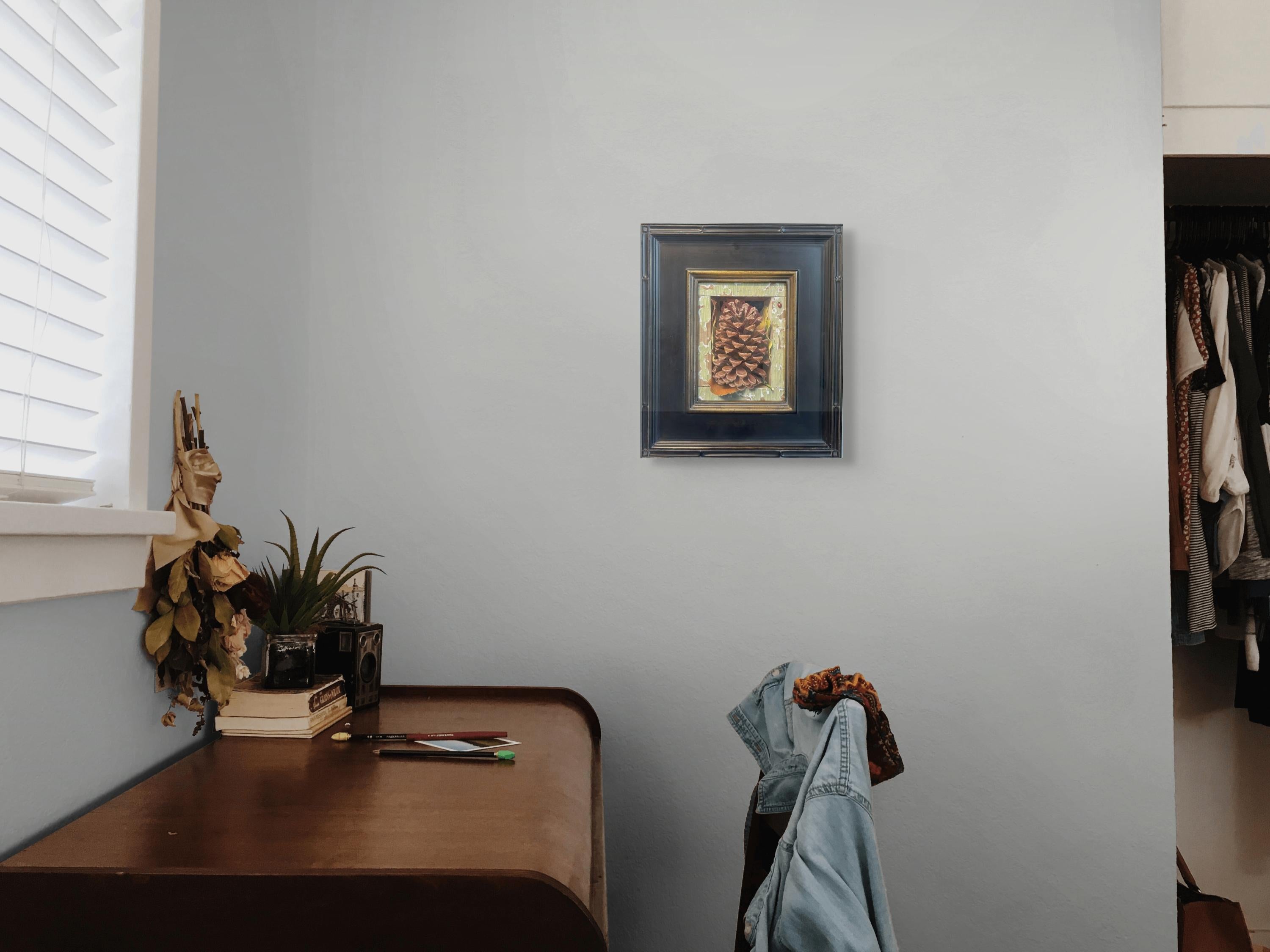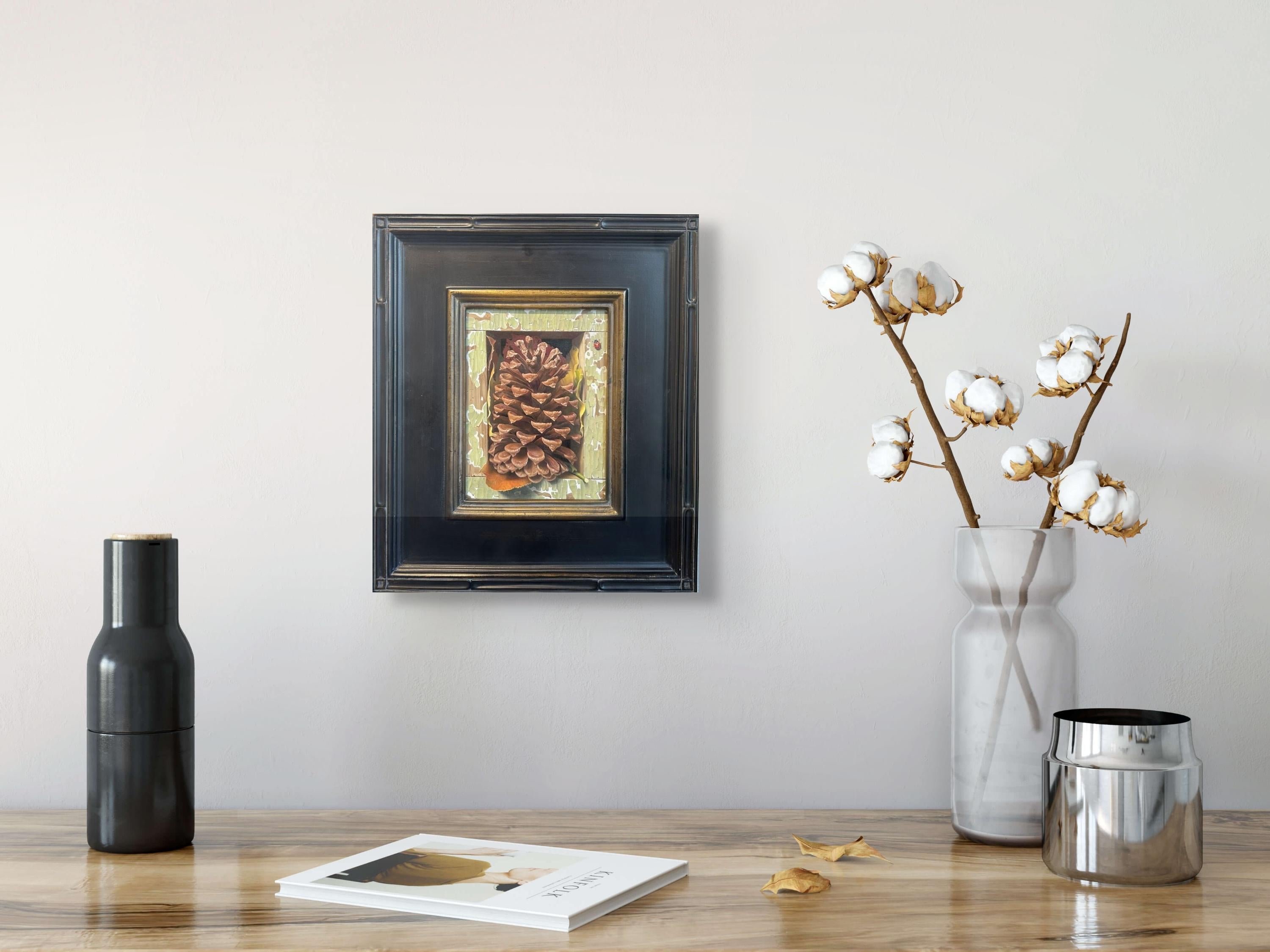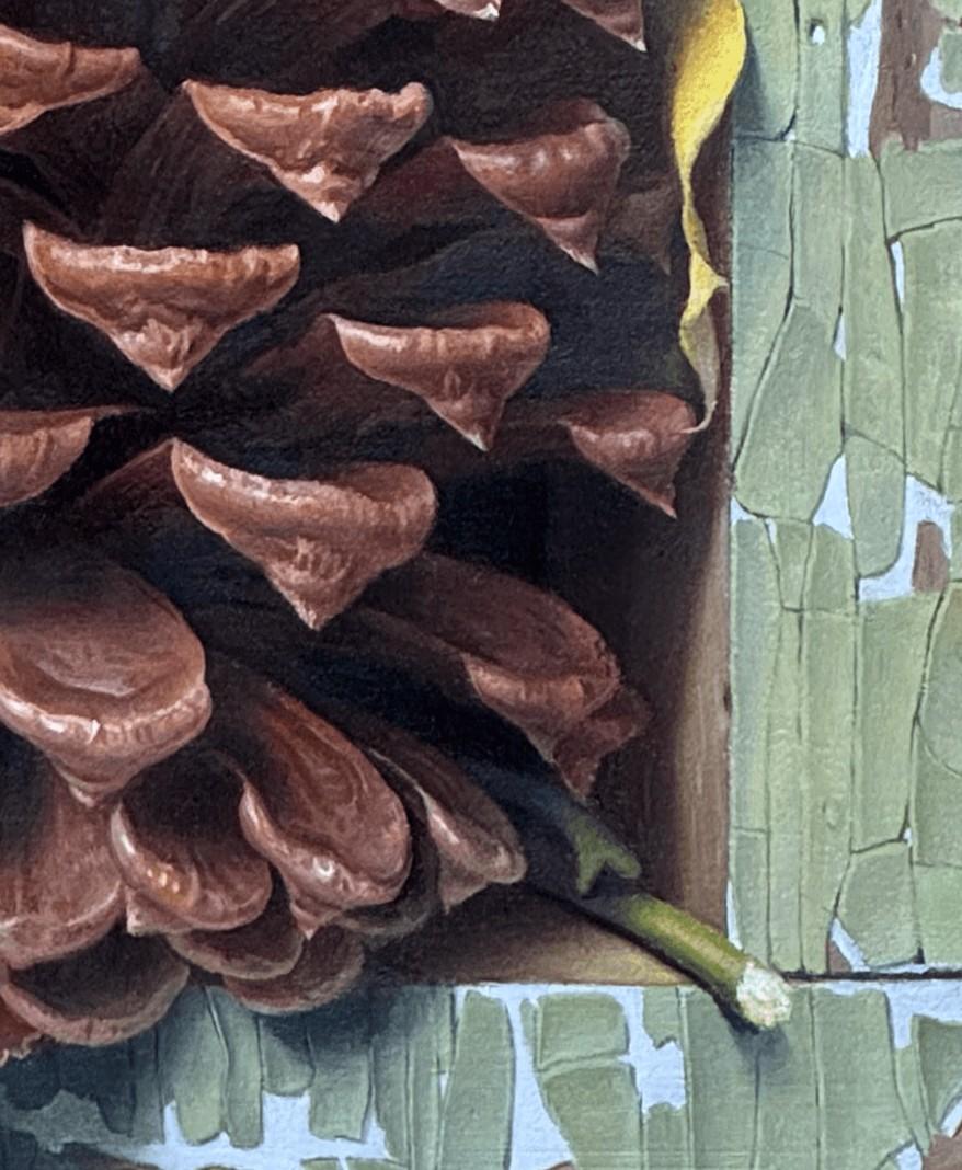 "Autumn Compression" de l'artiste américain Russell Harris est une peinture à l'huile magistrale, réalisée dans un style photoréaliste. Cette œuvre est encadrée au format 13,50 x 12,50 pouces et est prête à être accrochée.