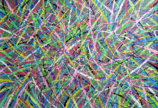 Cette œuvre est un hommage au peintre expressionniste-abstrait américain - Jackson Pollock et a été réalisée avec la technique du "dripping" et du "pouring". Le tableau est réalisé ...