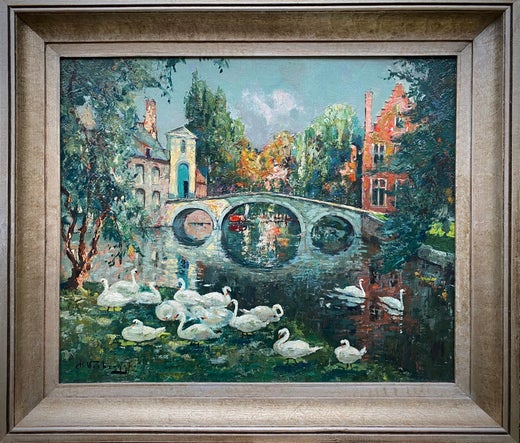 Verbrugghe Charles est né dans l'aristocratie belge le 15 juin 1877 à Bruges. Il était un peintre impressionniste de vues de villes, de paysages, de vues de la mer et de plages, de natures mortes, de fleurs et de portraits. Il est connu pour ses peintures de couvents et ses vues de Bruges et de Paris. En 1907, il se rend à Paris pour étudier auprès du maître Flori Van Acker (1858 - 1940). C'est là qu'il se lie d'amitié avec l'artiste Maurice Utrillo ( 1883 - 1955) et Kees Van Dongen (1877 - 1968). Pendant cette période, il vit à Montmartre, près de la place du Tertre, et peint les coins pittoresques de Paris. Au Lapin Agile, lieu de rencontre des artistes célèbres, il a souvent été en contact avec Dega, Renoir et Monet. Chaque année, il se rendait à Bruges, une ville qu'il connaissait par cœur. Pendant son séjour, il s'est installé à l'"Hôtel Memling" ou à la "Pension Notre-Dame". À Calle, on l'appelait "De Brugse Parisien". En 1968, une rétrospective a été organisée à Bruges, dans la "Galerie Brugeoise", avec une centaine de ses œuvres. Brilliante utilise des couleurs brillantes dans ses peintures et baigne ses sujets dans une lumière vibrante. Il a été fortement influencé par l'impressionnisme français. En autodidacte, il mènera une carrière remarquable. Au départ, il s'est surtout concentré sur les paysages. Par la suite, il est charmé par l'impressionnisme, tendance à laquelle il restera toujours fidèle, malgré la pression du monde artistique parisien. Il a évolué de teintes plus sombres à des teintes plus vives par la suite. Le peintre est décédé à Paris le 1er octobre 1974 dans la maison de son fils à Gorgeslez-Gonesse près du Bourget. De nombreuses œuvres de Verbrugghe se trouvent à Paris et à Bruges. Aujourd'hui, ses peintures se trouvent dans des collections privées réparties dans le monde entier et au musée de Bruges. Littérature : MICHIELS, 'De Brugse school', Uitgaven West-Vlaamse Gidsenkring vzw, Brugge, 1989, p. 115-116.