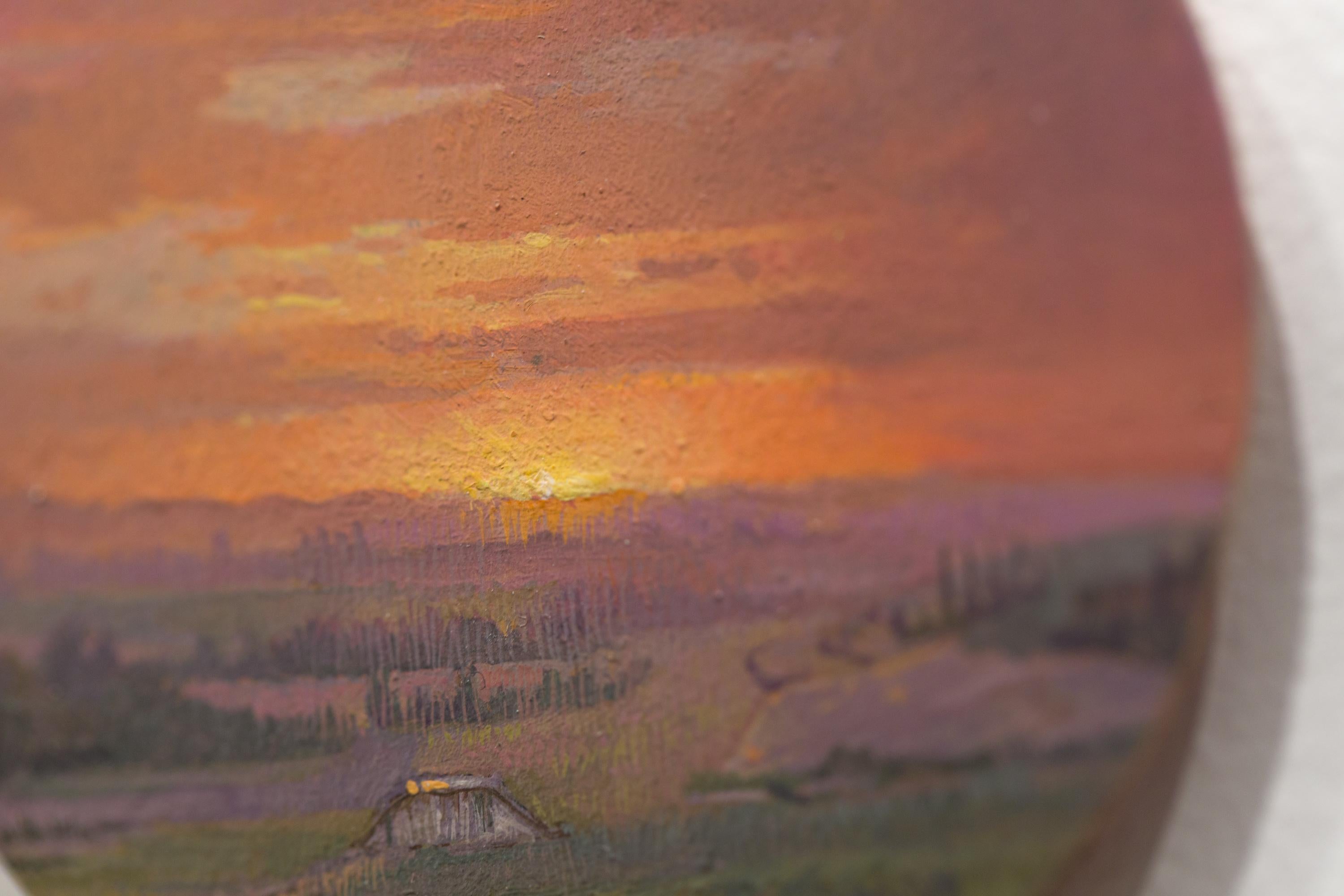 Articles similaires à "Coucher de soleil en Toscane" Peinture à l'huile Tondo d'un paysage en Italie