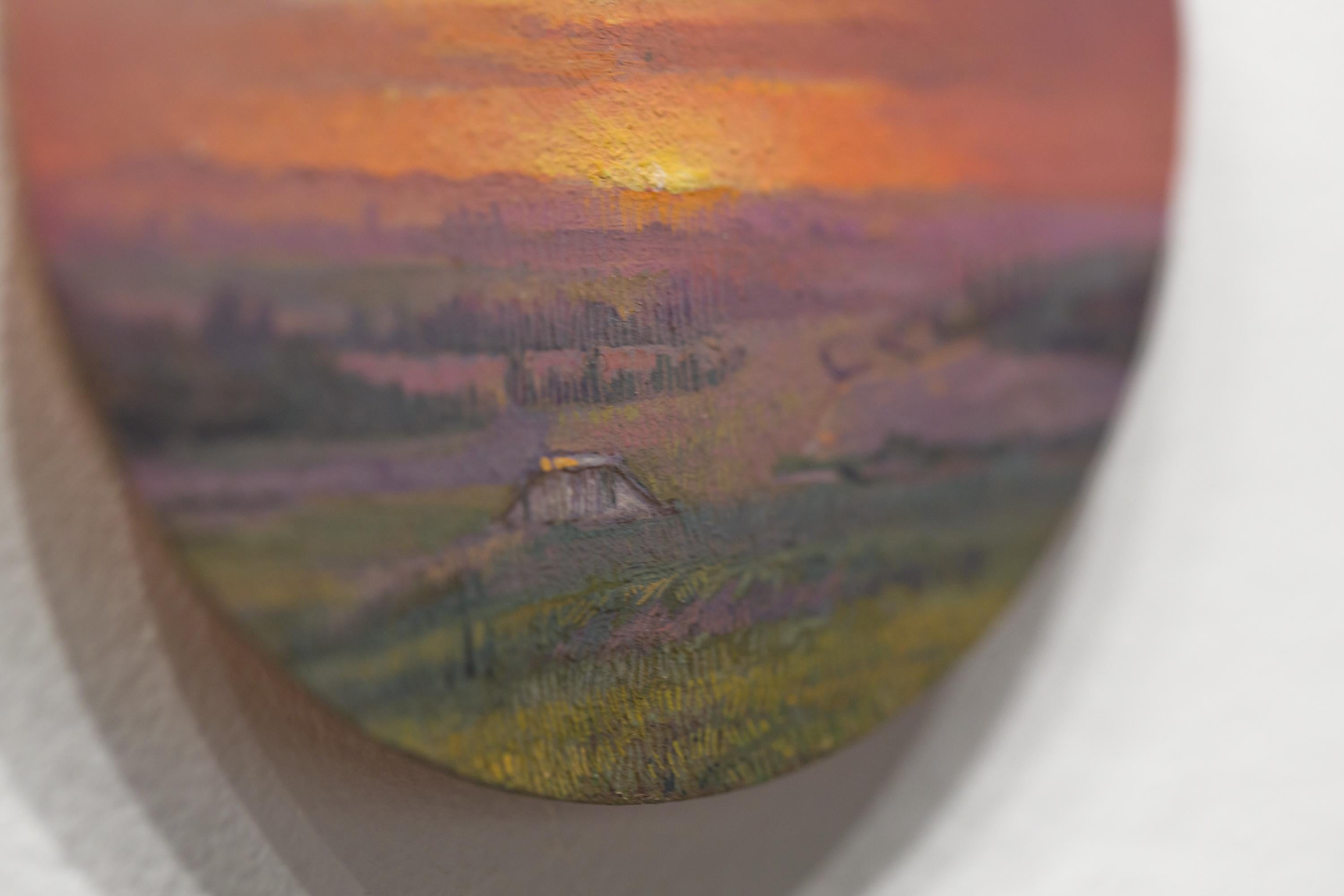 Dina Brodsky"Coucher de soleil en Toscane" Peinture à l'huile Tondo d'un paysage en Italie2025