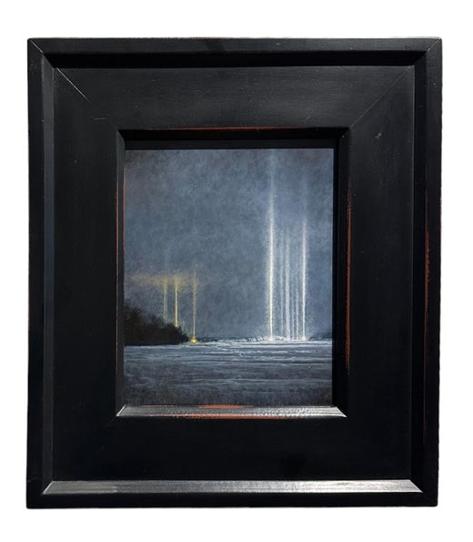 À travers le regard de Jeff Aeling, le paysage devient un monde façonné autant par l'air que par la terre. Dans des œuvres telles que North of Las Vegas, NM et Pond Near St. Cloud, MN, il met en balance la structure tranquille des plaines et des zones humides avec des ciels en perpétuel mouvement. Sa maîtrise de l'atmosphère est incontestable dans Light Pillars (2023) et Light Pillar (2023), où des événements optiques rares transforment la nuit en architecture. Même des scènes intimes comme Crabapple, Dogwoods et Red Bud trouvent leur puissance émotionnelle sous des cieux qui confèrent à la terre son caractère changeant.