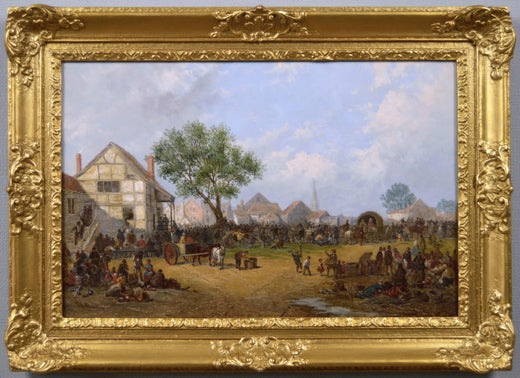 Peinture à l'huile d'un paysage du 19e siècle représentant une fête de village