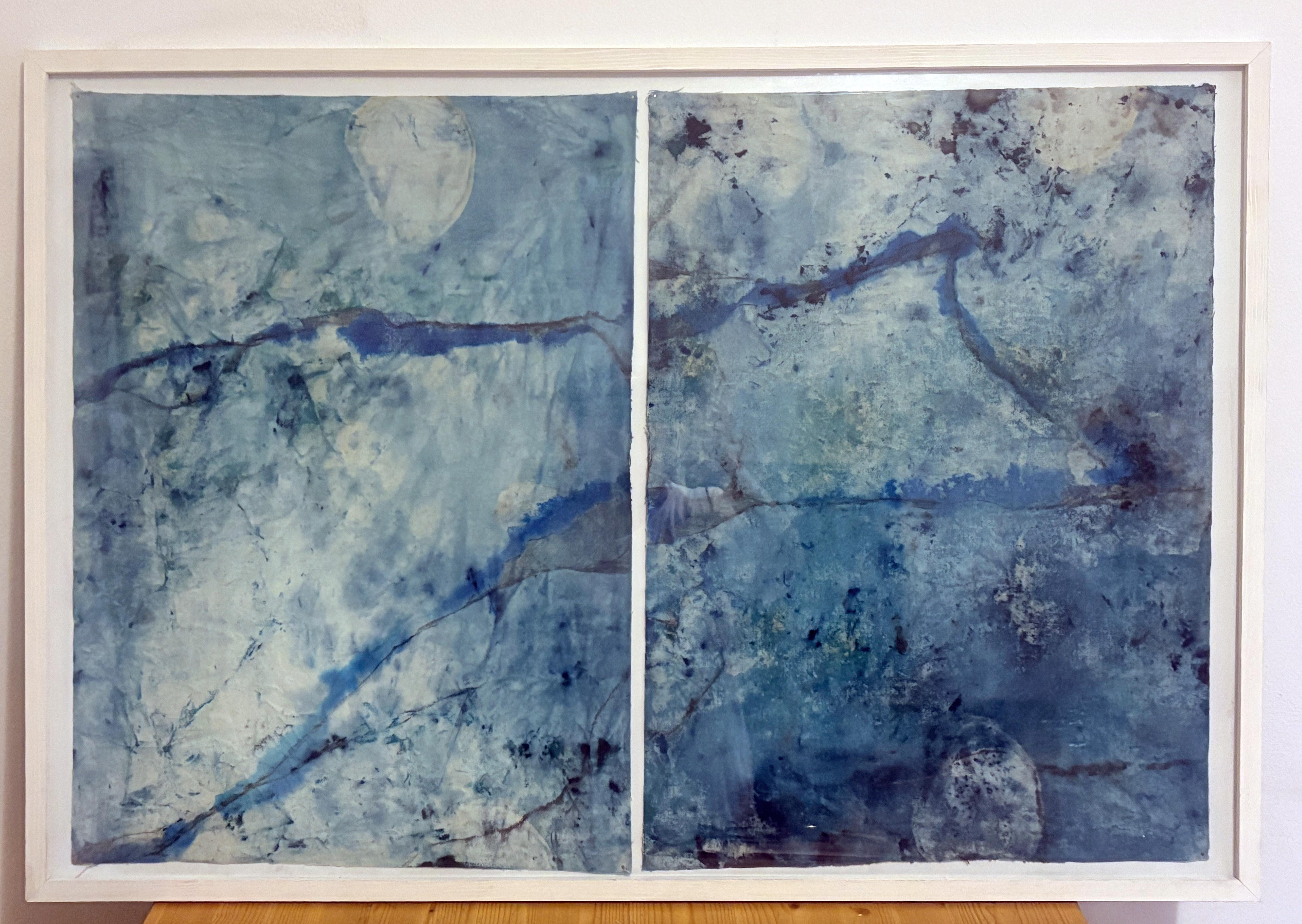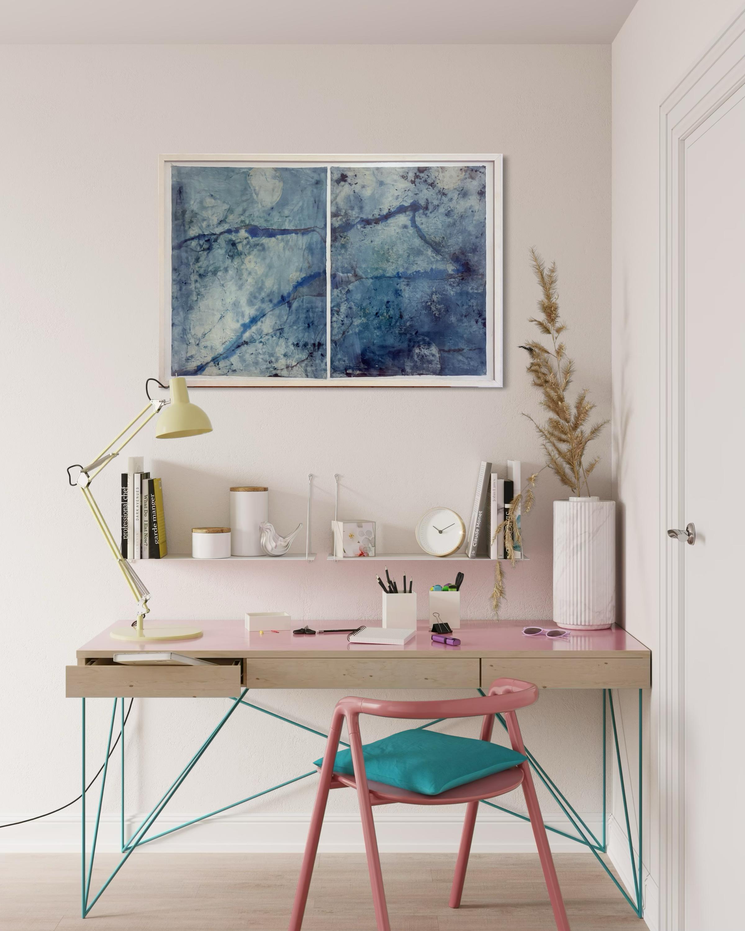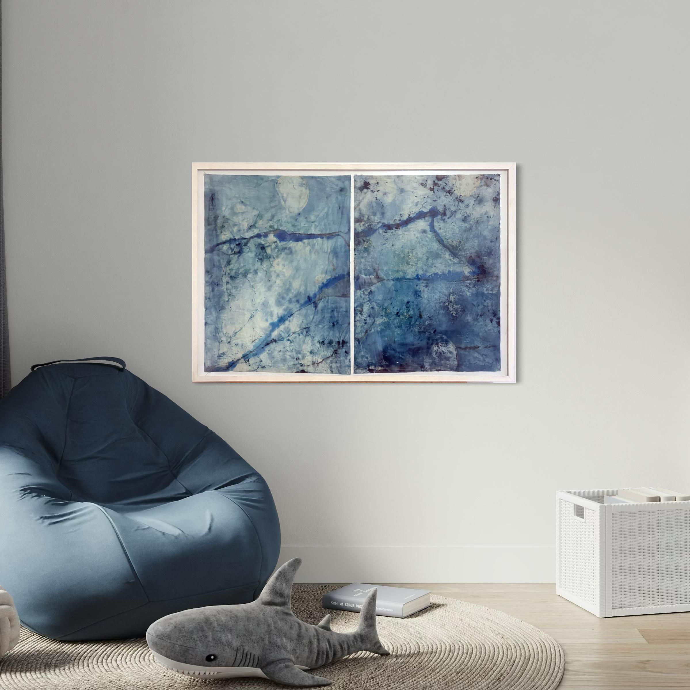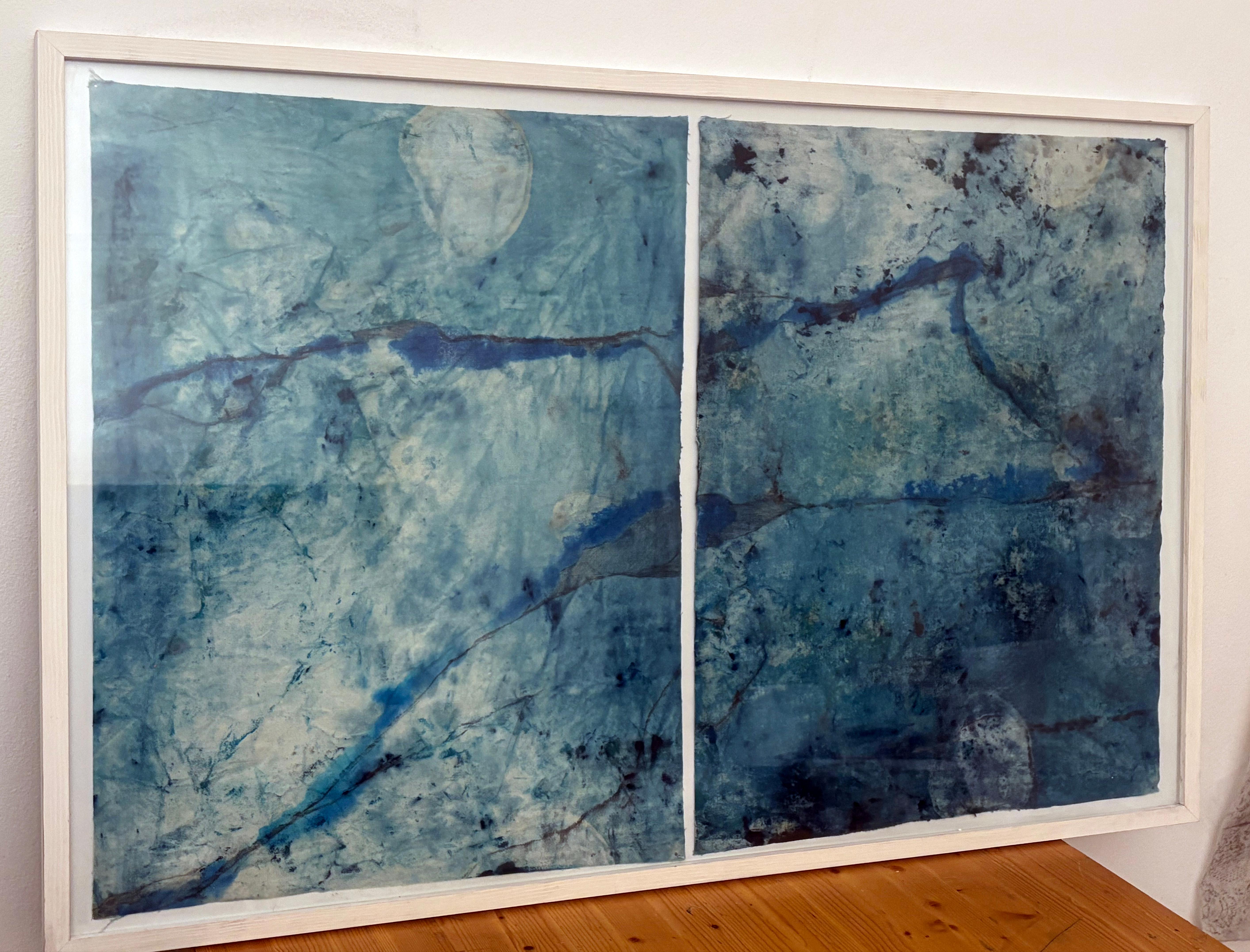 Marilina Marchica"Paysage bleu " peinture abstraite réalisée en Italie - Encadré prêt à être accroché2020
