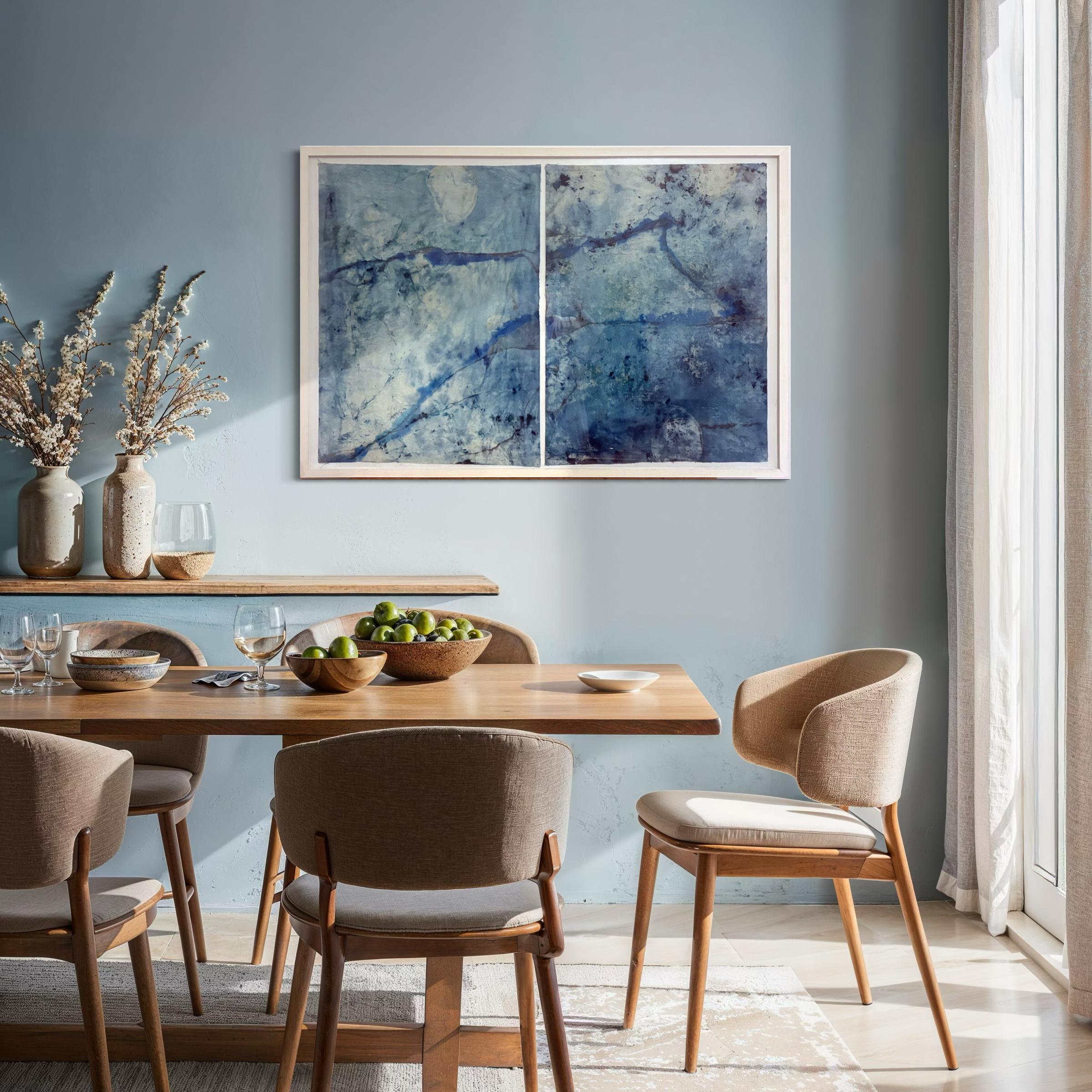 Bay - Peinture de paysage abstrait bleue encadrée