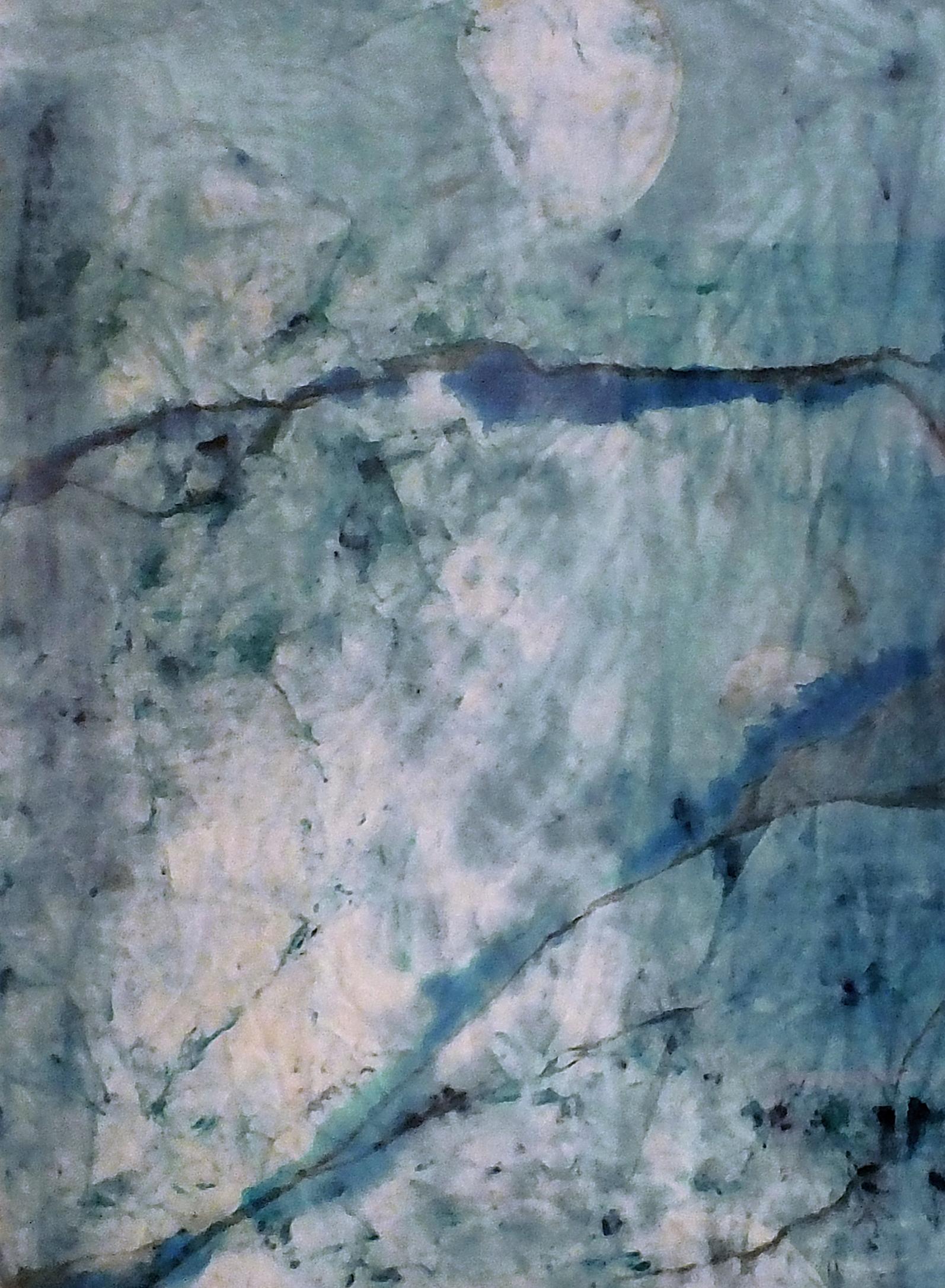 Paysage bleu 2, peinture, huile sur papier