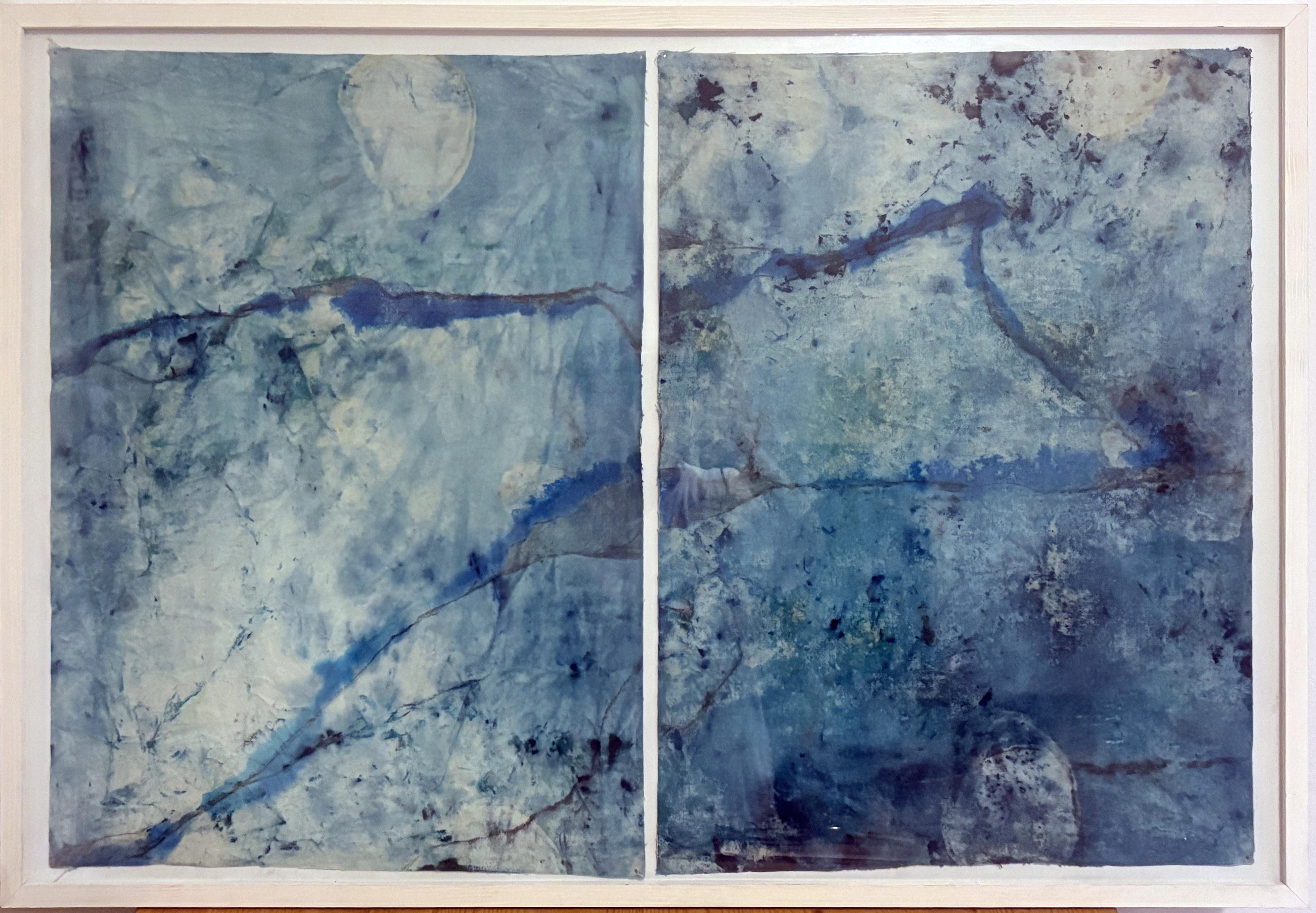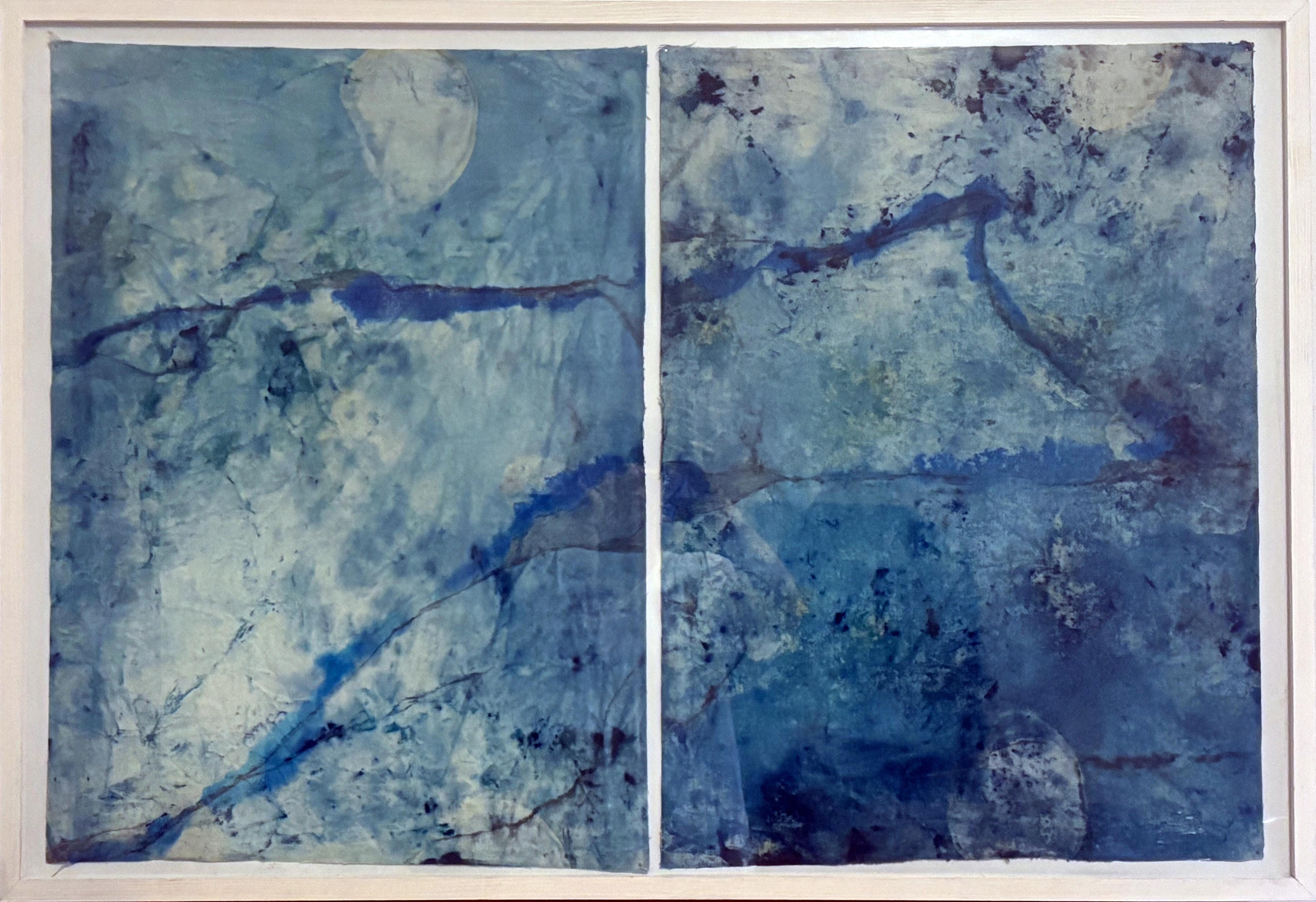 Sojourn II - Huile sur toile - Peinture de paysage bleu abstrait