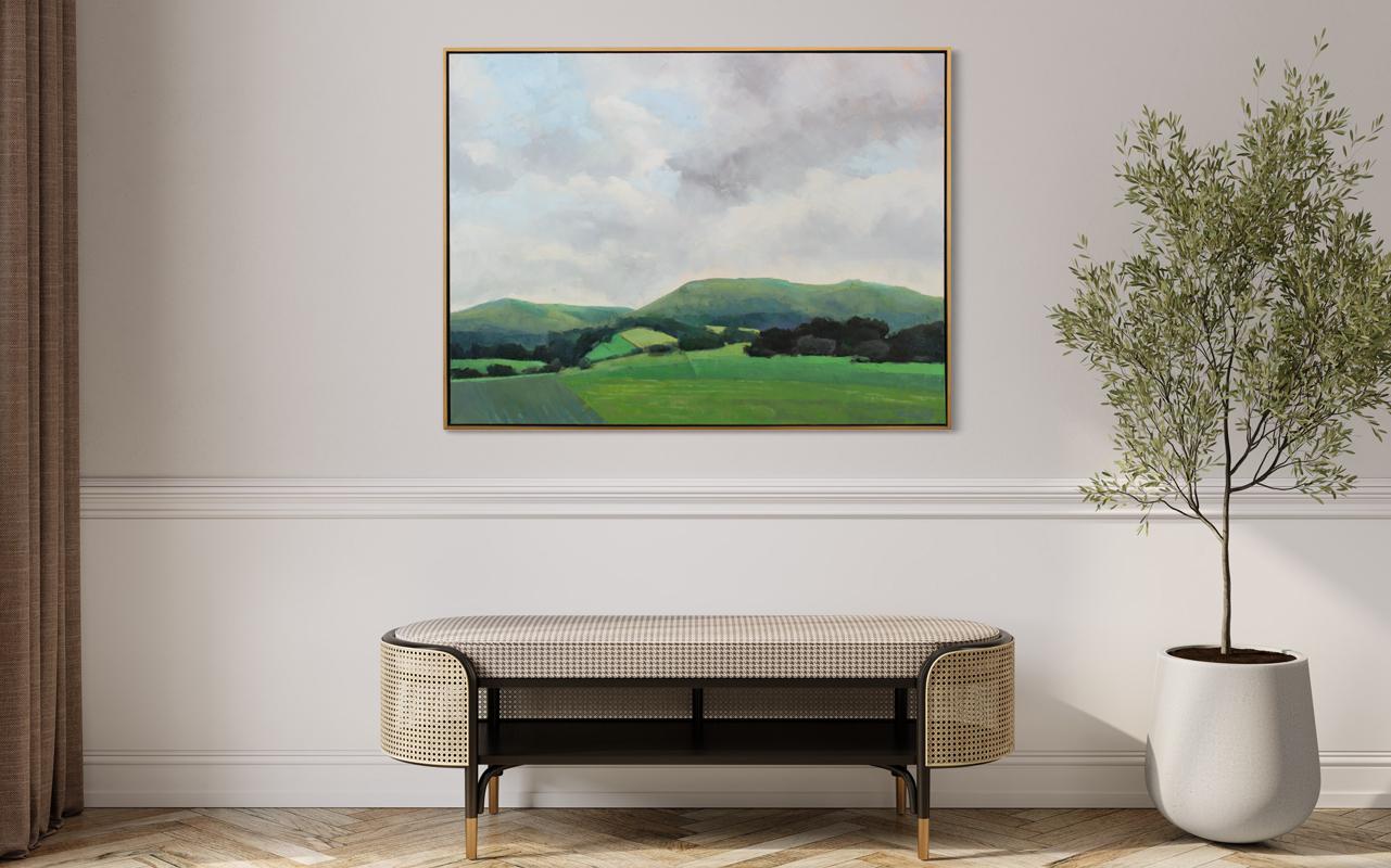 Over Peaks and Valleys, paysage impressionniste, tons pastel, acrylique sur toile