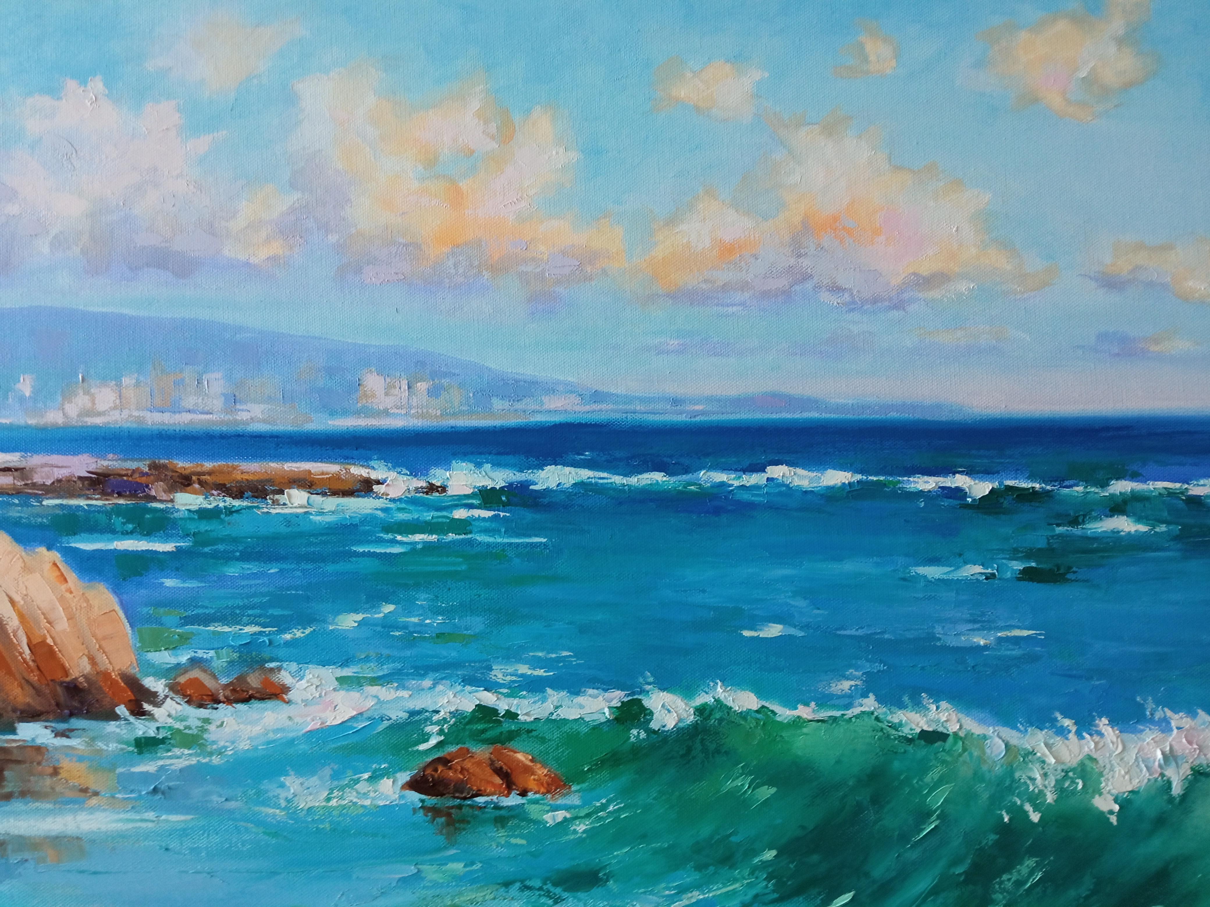 Peinture à l'huile originale de l'artiste ukrainien Evgeny Chernyakovsky    "Mer"  70.0 X 90.0 CM / 27.5 X 35.4 IN  Huile sur toile de HAUTE QUALITÉ  Signé au recto et au verso  Daté...