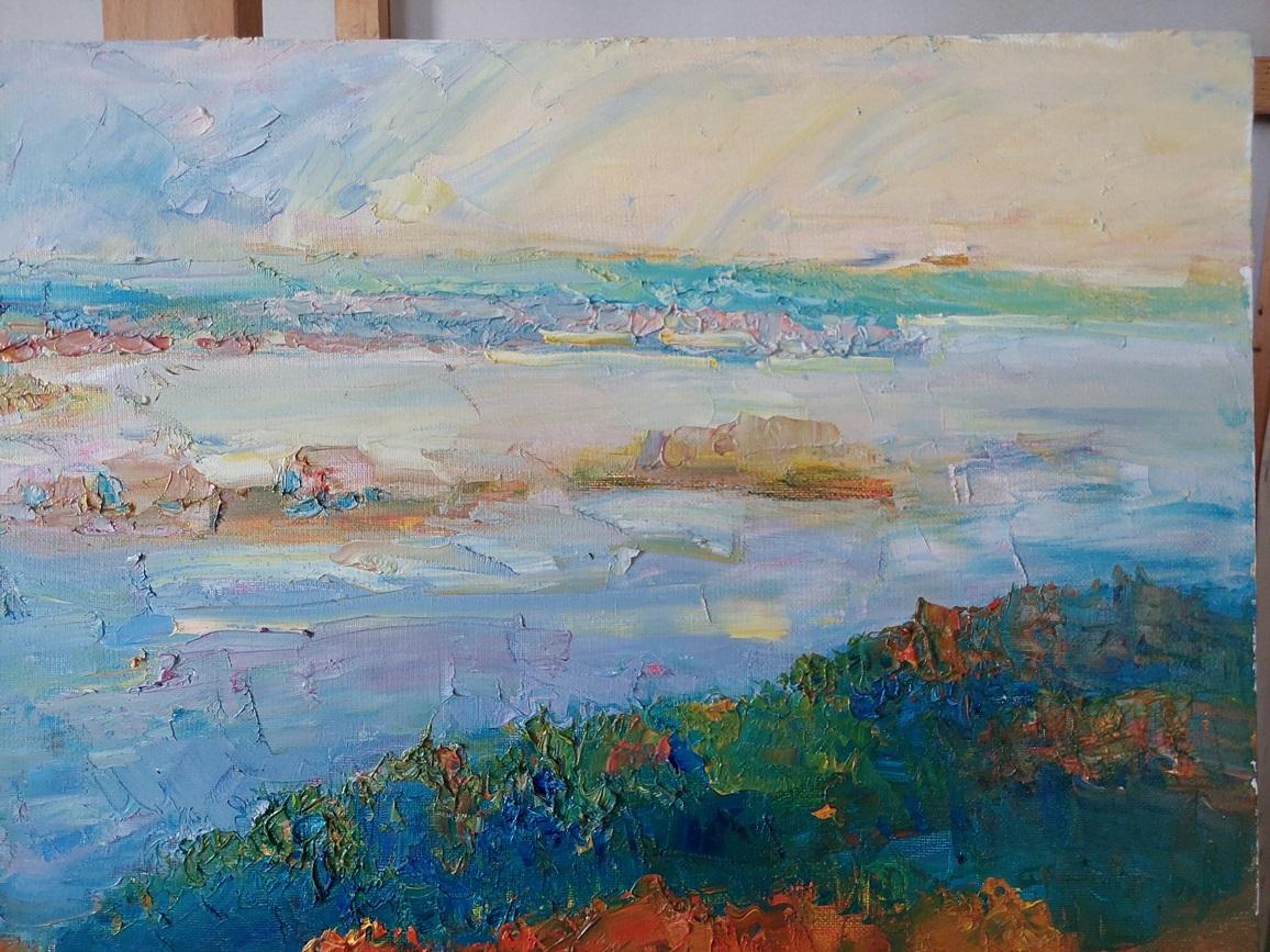 Paysage en bord de mer. Peinture à l'huile sur bois, 52X65 cm