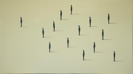 Chaque figure de ses tableaux apparaît comme une présence isolée dans un espace intemporel et indéfini, invitant le spectateur à regarder de plus près, à étudier son visage et ses traits. Suspendus dans de vastes plans imbibés de couleurs, les personnages semblent attendre, soigneusement positionnés par l'artiste sur la toile. Pourtant, ils ressemblent à des jouets fragiles, errant d'un tableau à l'autre, sans début ni fin.