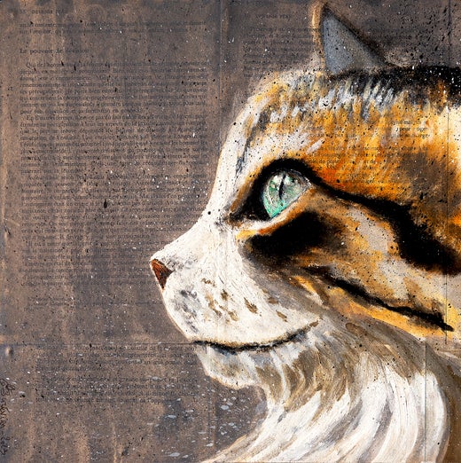 Technique : huile, acrylique, peinture en aérosol, encre sur des pages de livres anciens sur un cadre en bois 40x40cm / 15,7x15,7inch