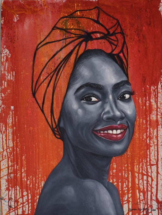 Damola Ayegbayo est une artiste expressionniste qui a fait ses preuves dans l'industrie de l'art et de l'artisanat. Il a obtenu sa licence en éducation à l'université Obafemi Awolowo d'Ile-Ife, au département des beaux-arts et des arts appliqués, où il s'est spécialisé dans la peinture. Ses œuvres transmettent le pouvoir de la beauté des femmes noires africaines, la réalité de la vie et de la morale à travers la couleur et les visages des belles femmes noires. Sa peinture a été exposée au niveau national et en Angleterre, et ses œuvres ont été acquises par de nombreux collectionneurs privés au Canada, en Australie, en Angleterre, à Londres, en Norvège, à Washington, à Lago et dans d'autres pays. En outre, son art a été présenté dans des publications nationales et internationales. L'idée de Damola d'utiliser une femme noire couverte de visages colorés illustre la façon dont sa mère, forte, l'a formé et élevé avec amour et moralité, l'aidant ainsi à découvrir sa véritable identité.