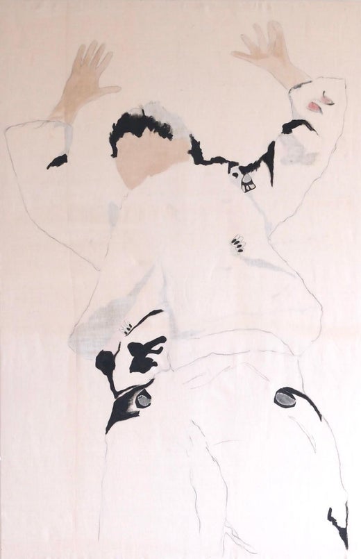 Peinture figurative sur tissu ancien, 2023 - 'Femme fantôme'