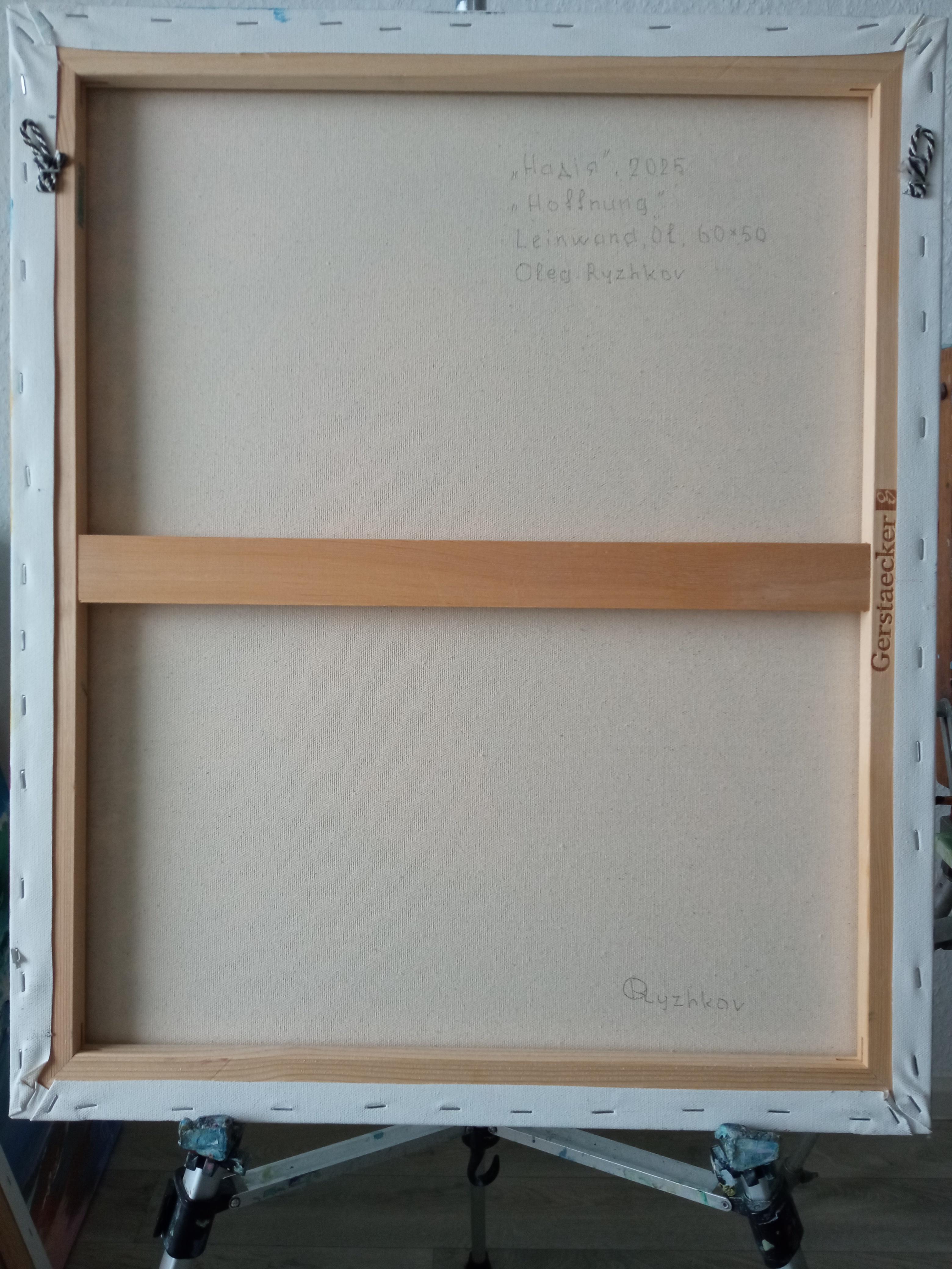 Les tons chauds et dorés se mêlent aux nuances pures de bleu, créant un sentiment d'harmonie et de joie tranquille. Plus qu'un portrait, c'est un message de foi, un hommage à la force de l'espoir qui fleurit même après le plus long des hivers.