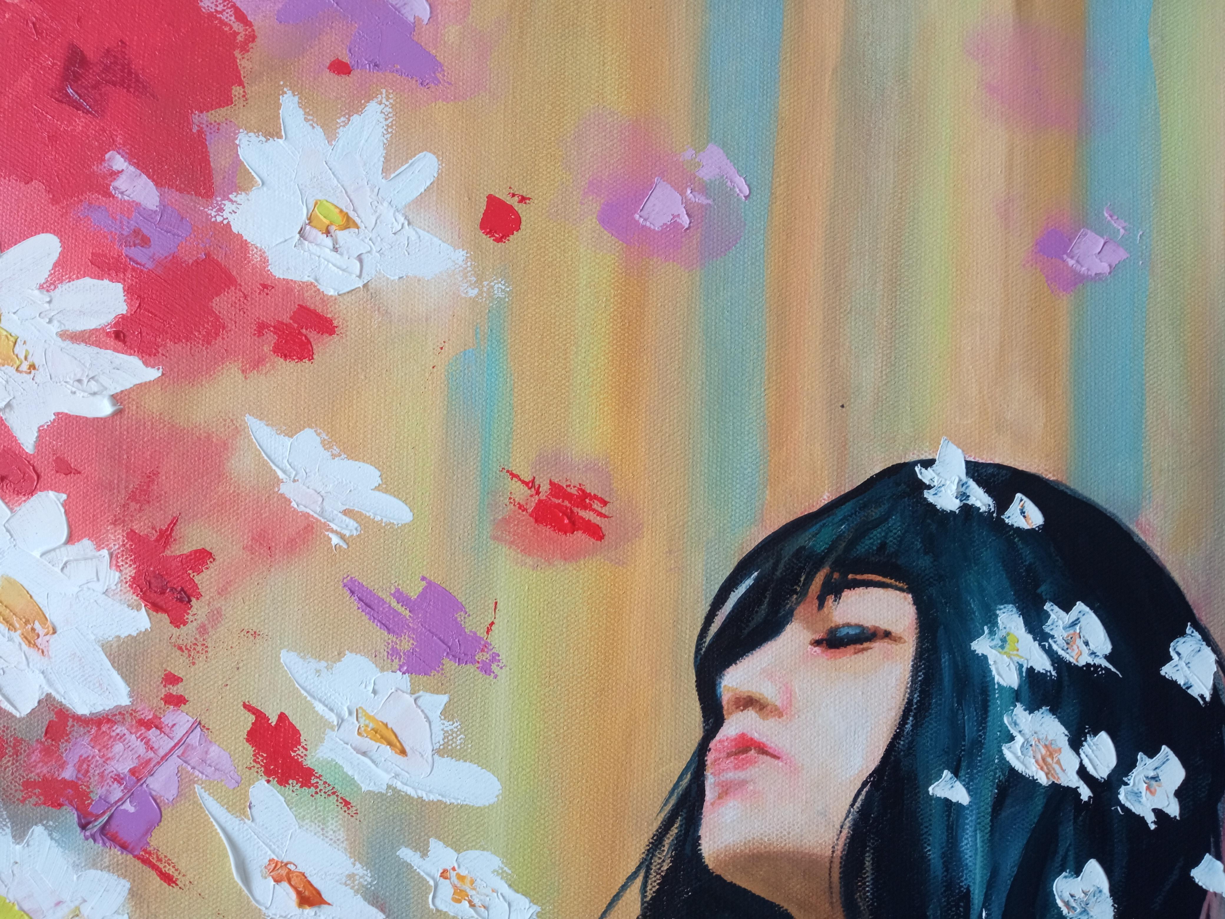 Cette peinture incarne la féminité, la lumière et la force intérieure. Le regard serein de la jeune femme reflète le calme et la f...