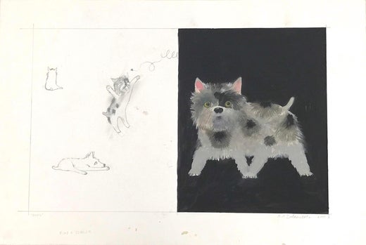 Gouache et technique mixte sur papier, signée en bas à droite.