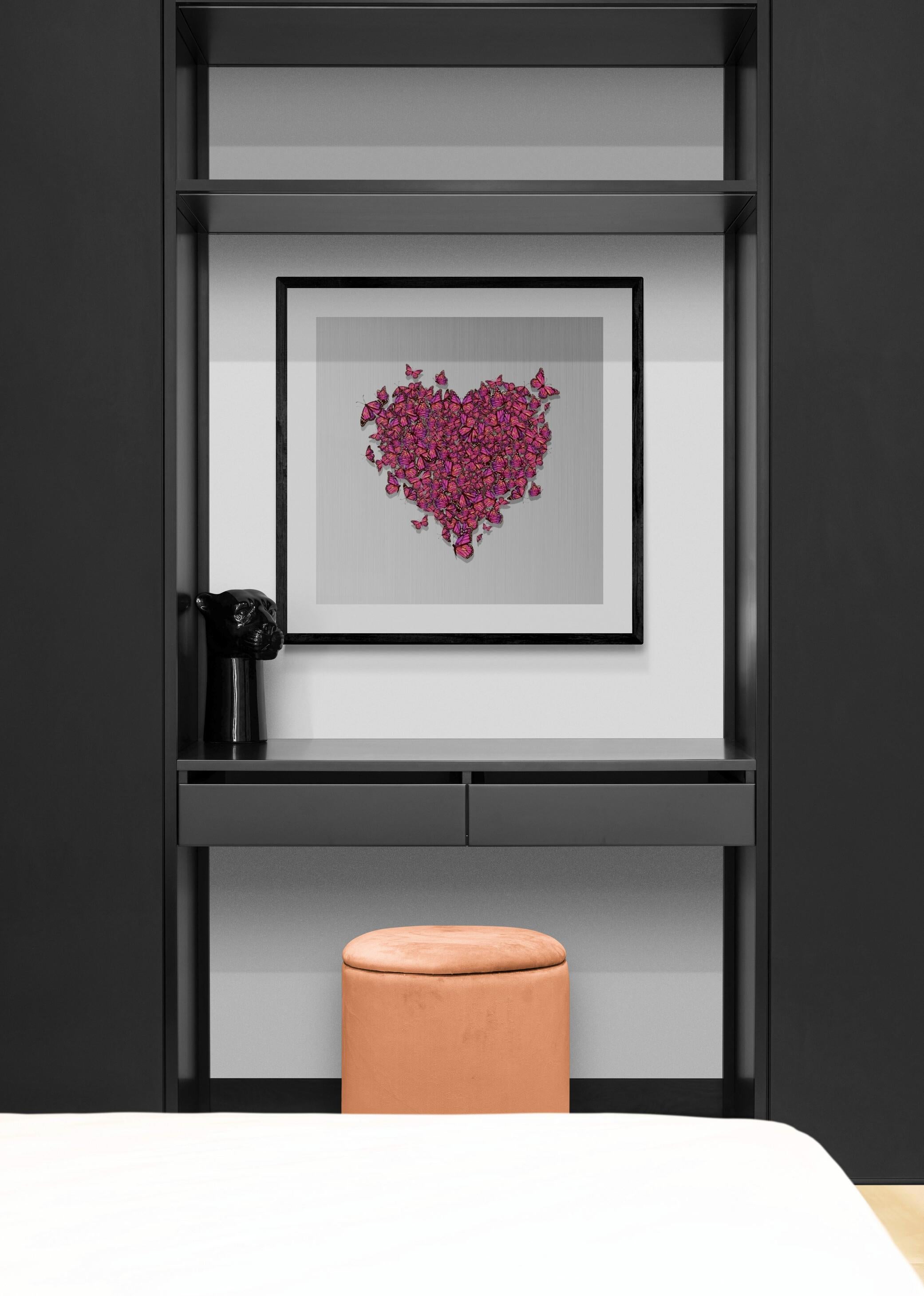 Impression pop art aux pigments d'archives de papillons créant une forme de cœur créée par DESTRO - signée et en édition limitée.
