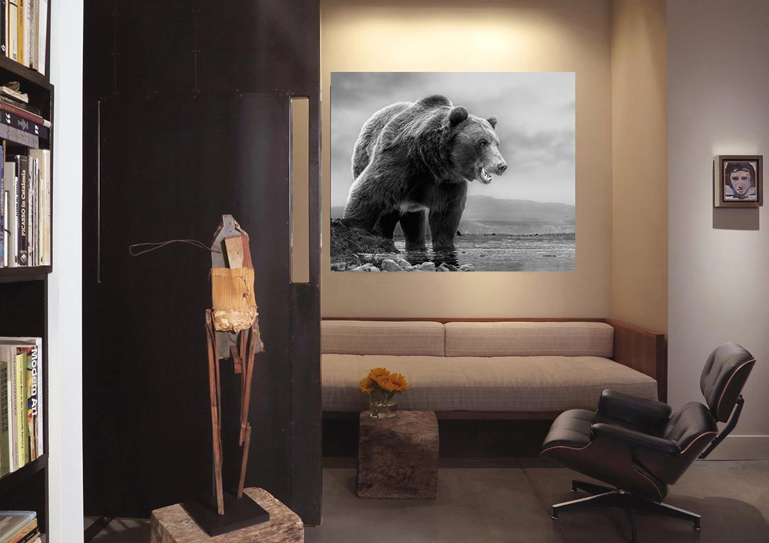 Shane Russeck"On The Waterfront" 36x48 Photographie en noir et blanc Ours Grizzly Kodiak Signée2019