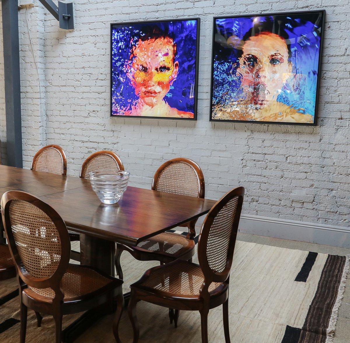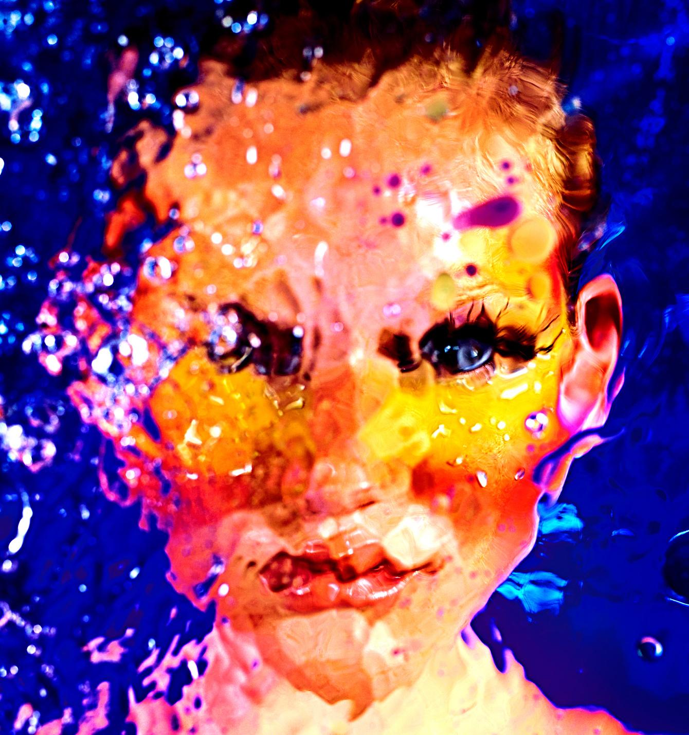 On pense que l'huile et l'eau ont une chimie impossible. Cette série explore l'effet kaléidoscopique de la couleur qui se transforme en formes, obscurcissant les visages des sujets et les rendant picturaux. Chaque œuvre représente un moment dans le temps, qui ne sera jamais reproduit.