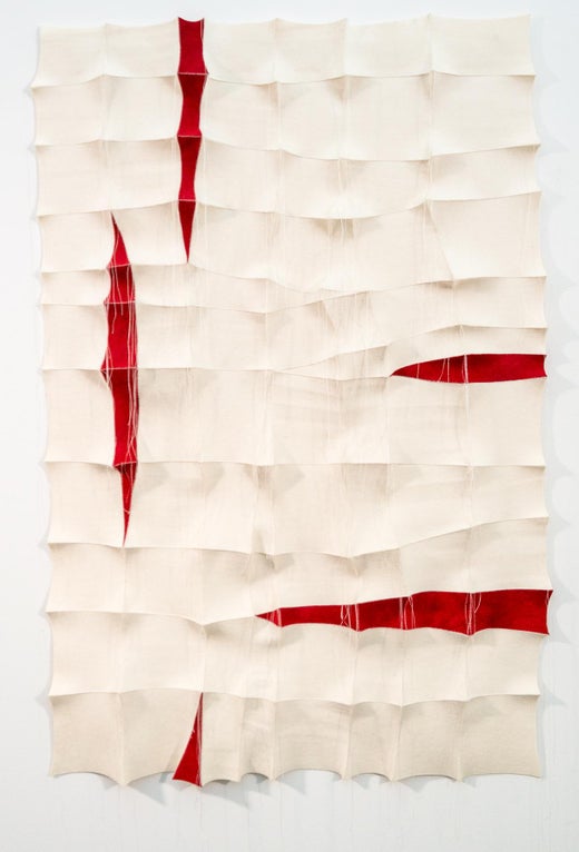 Chung-Im KimMutation 10 - blanc, géométrique, 3D, feutre, tissu, biomorphique, art mural2016
