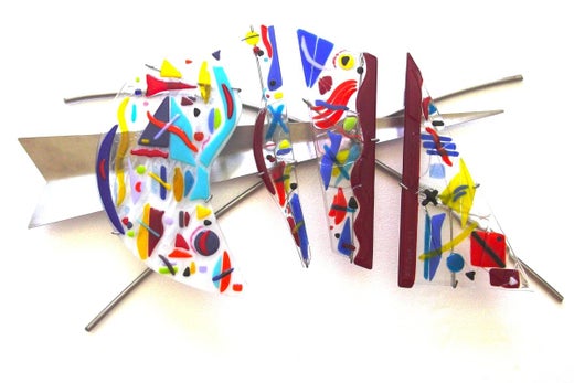 Impressions/ Expressions - L'art de Jill Casty Travaillant et présentant son art en Californie, en Italie et au Mexique, Jill Casty s'est concentrée ces dernières années sur des sculptures uniques - des assemblages de verre fusionné brillant et coloré et de divers métaux ou des œuvres de verre en solo. Aux États-Unis, une première étape de sa carrière a été consacrée à la création d'œuvres à grande échelle pour les lieux publics - des sculptures monumentales, pouvant atteindre 9,5 mètres de haut, et de vastes séries de "mobiles" et d'autres formes d'art aérien qui ont permis d'identifier et de célébrer des lieux centraux dans les villes et dans les bâtiments et centres publics et commerciaux. Son travail actuel est plus intime à l'échelle, personnel dans le style, le thème et l'émotion. Comme il sied à l'époque dans laquelle nous vivons et travaillons, son art est innovant, "à la pointe", voire provocateur à sa manière. Mais contrairement à tant d'autres arts contemporains, il s'agit d'un art aux rythmes et aux formes fluides, aux couleurs vives et éclatantes - un art exubérant, plein de fête et de grâce. De manière surprenante et unique, elle combine dans de nombreuses œuvres les images de verre créées par fusion - dramatiques, lyriques, élégantes, d'une transparence évocatrice - avec les arêtes et les surfaces nettes et précises - solides, autonomes - de divers motifs et types de métal, ou même de marbre de Carrare. Ces sculptures sont créées pour être accrochées au mur ou posées sur le sol ou sur une table. Il s'agit d'une utilisation "picturale" du verre, les œuvres ressemblant à des tableaux dramatiques en termes de formes et d'espace. La couleur, telle qu'elle est transformée dans le verre, est sa force directrice et sa passion, Henri Matisse son esprit directeur. Inspiré par sa quête de savoir "...comment faire chanter mes couleurs". Car tout le monde sait, écrit-il, que "la bonne couleur chante". Elle est mélodieuse, aromatique, jamais trop cuite..., peut inspirer des idées de joie, de richesse, de gloire et d'amour." Ses couleurs, superposées et texturées, pleines de lumière et d'énergie, capturent cet esprit. Elles sont riches, sereines ou audacieuses, vivantes. Elle capitalise sur l'ouverture unique des fusions et re-fusions de verre clair et coloré, alors que les couleurs changent et modifient leurs tons, leurs impressions, leurs subtilités au fur et à mesure qu'elles interagissent avec le jeu de la lumière changeante. Réfléchir la lumière, la modifier lors de son passage à travers le verre. Il y a un esprit intérieur, une narration intérieure dans les structures formelles et les abstractions de son travail. Dans chacun d'eux, et de différentes manières, elle cherche à capturer le drame permanent de l'esprit - la beauté, l'espoir, la connexion, la compassion, l'amour - dans la forme matérielle, le monde matériel. Ce drame, ce récit, reflète son sens des possibilités. Elle y voit une sorte de réouverture, une lumière affirmative dans la présence innée du verre. Elle suit avec enthousiasme la bannière du credo artistique de Pierre August Renoir sur la place, voire la nécessité de la beauté dans le monde : " Pour moi, un tableau doit être quelque chose d'agréable, de gai et de joli, oui joli ! ". Il y a déjà beaucoup de choses désagréables dans la vie telle qu'elle est, sans en créer encore plus."