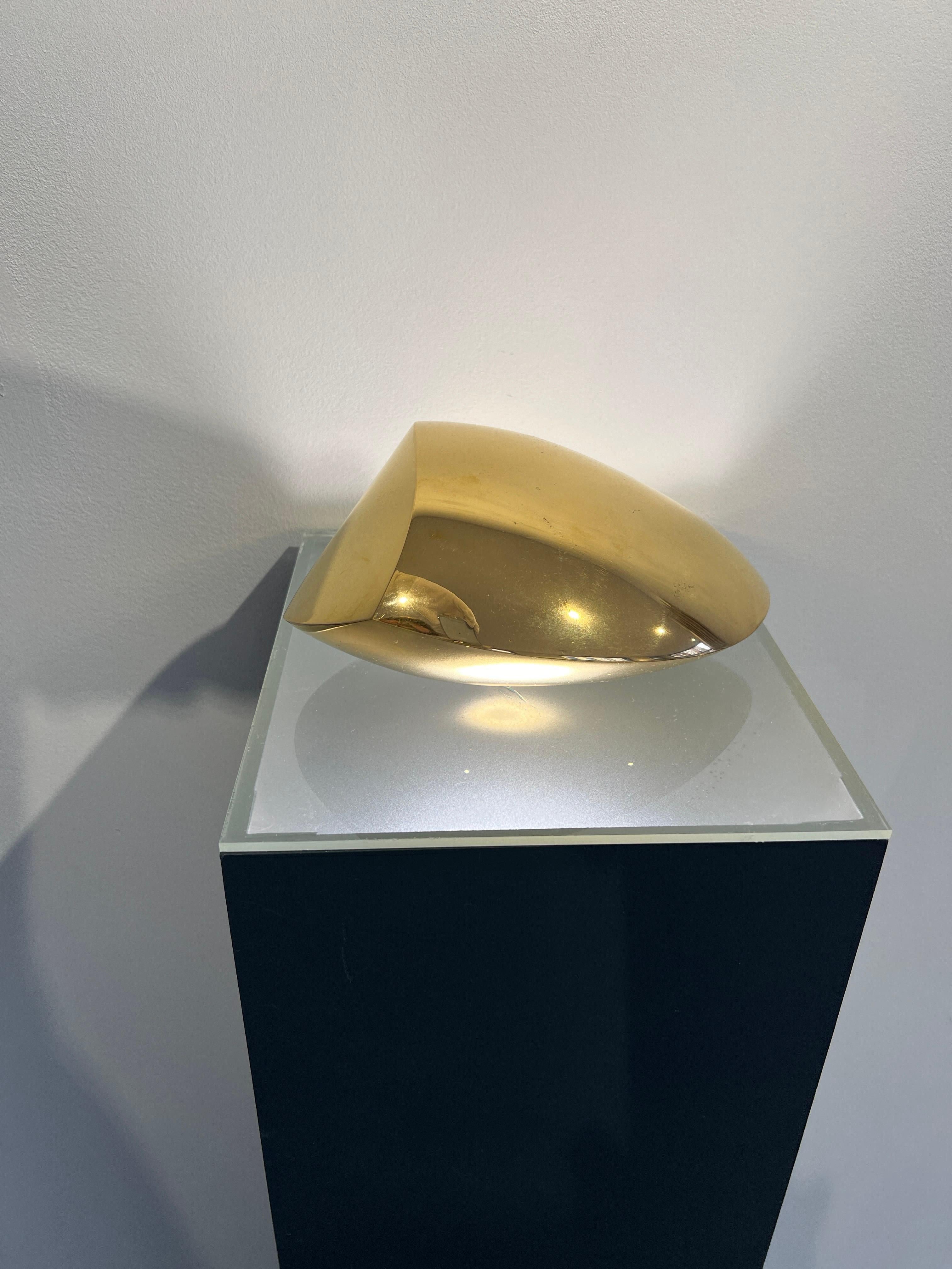 Cette sculpture en bronze patiné de couleur or est réalisée par Lino Tinè, un sculpteur abstrait contemporain qui vit et travaille à Milan, en Italie.